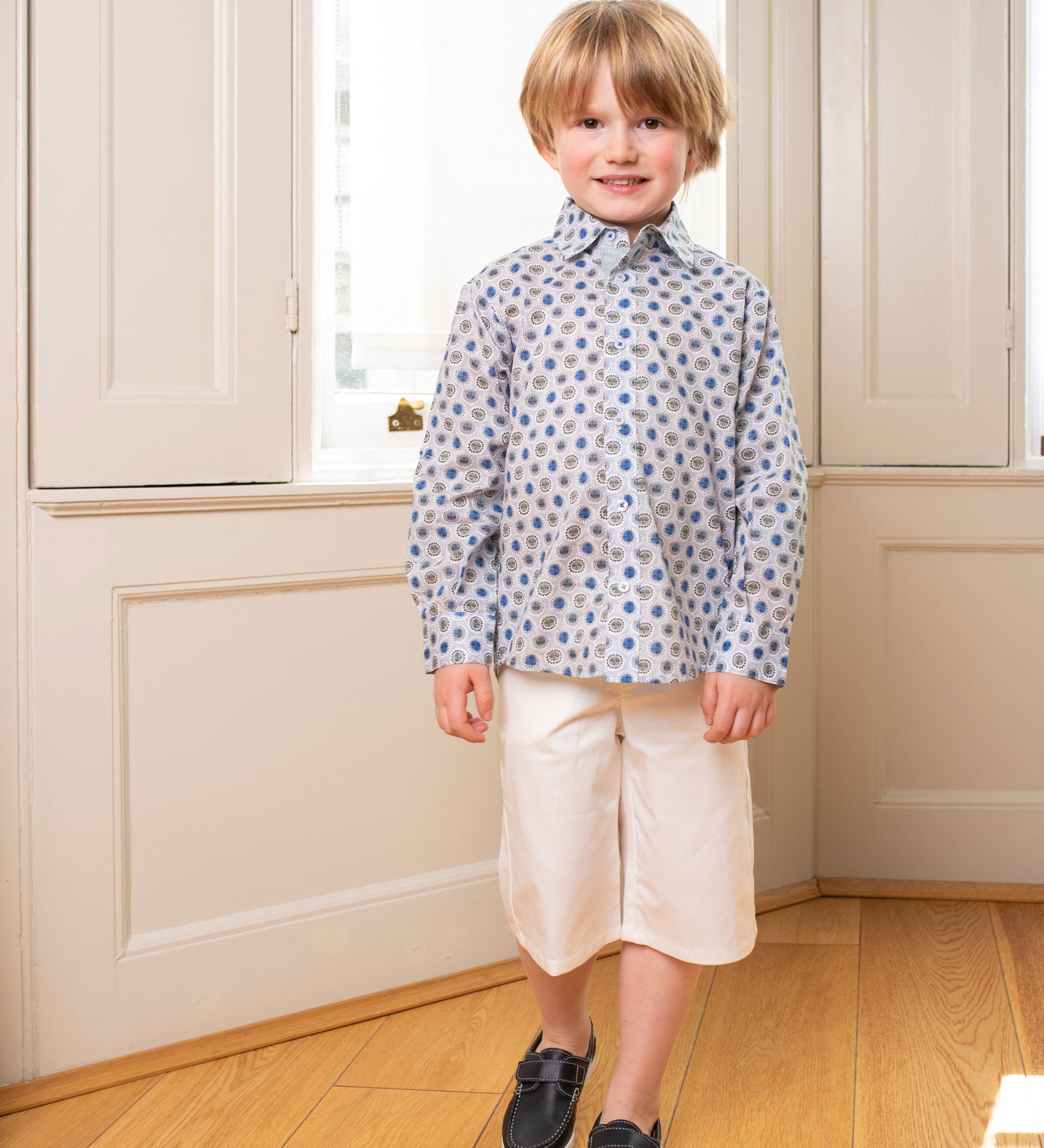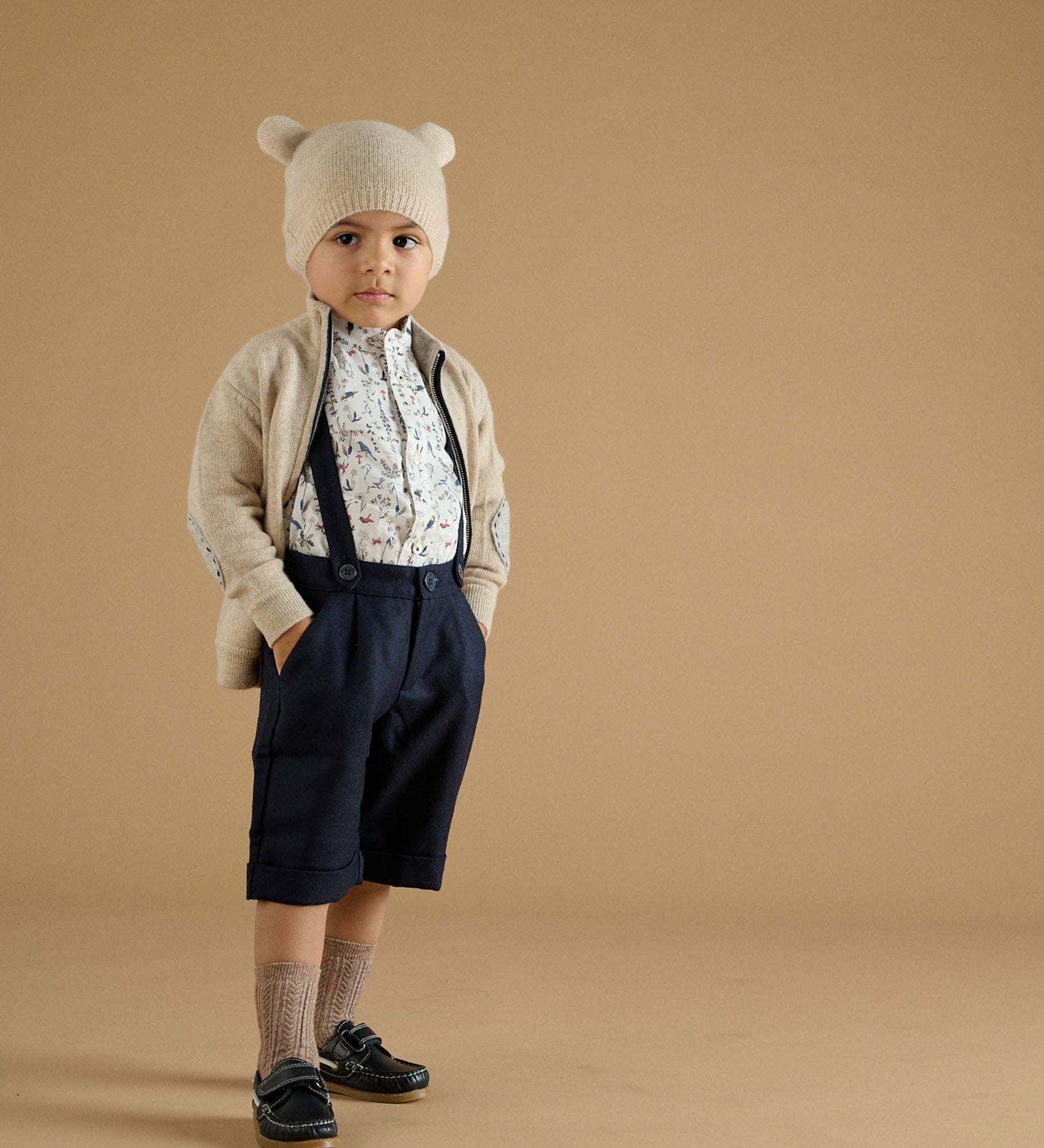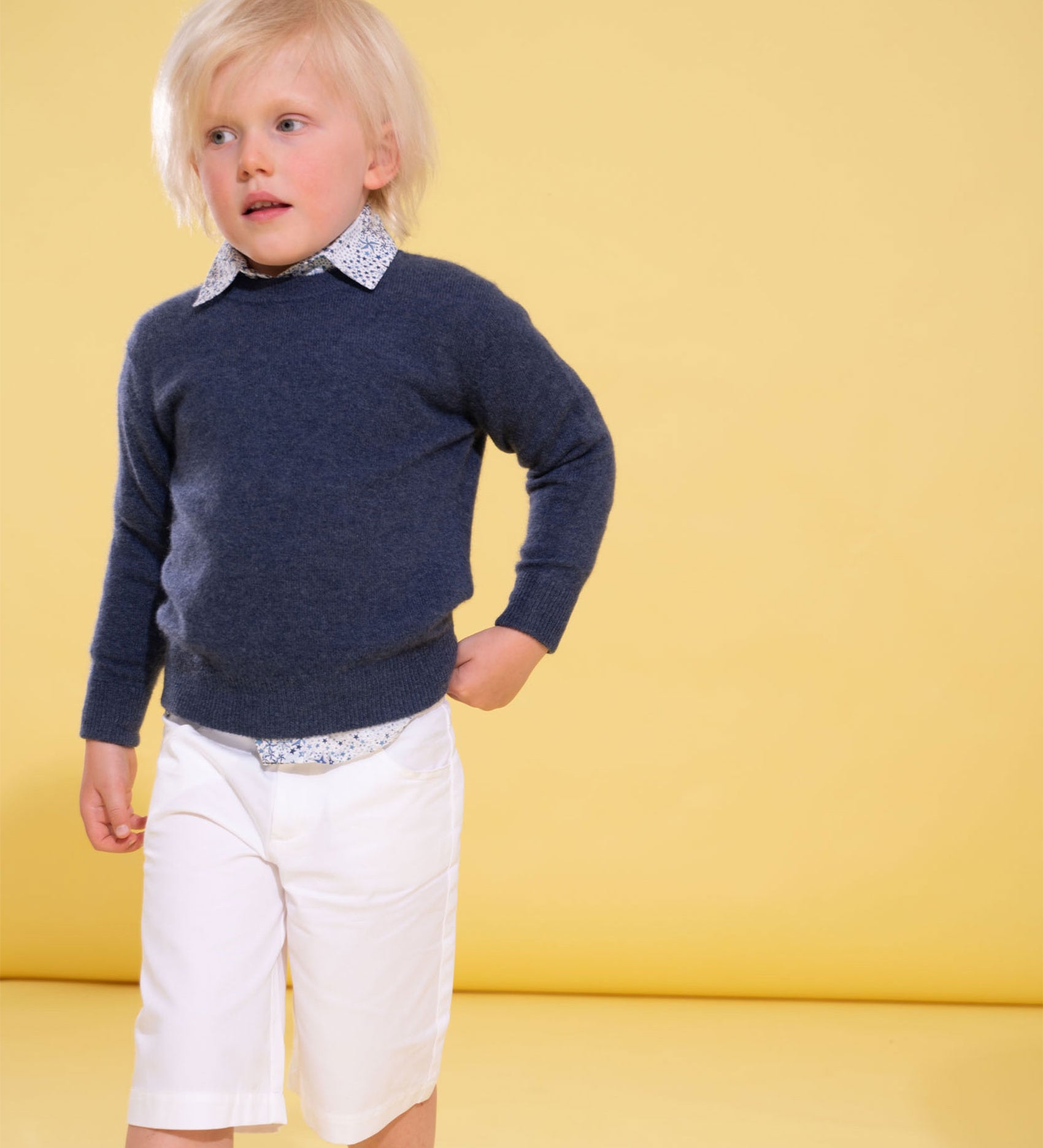 Sophisticated and adorable in a wide range of colours in Bermuda or with braces, our shorts for boys are wardrobe must-haves with a luxury twist. Available in wool, linen or cotton our baby boys’ shorts in natural textiles are super-soft, breathable and the ultimate in Cashmirino style.