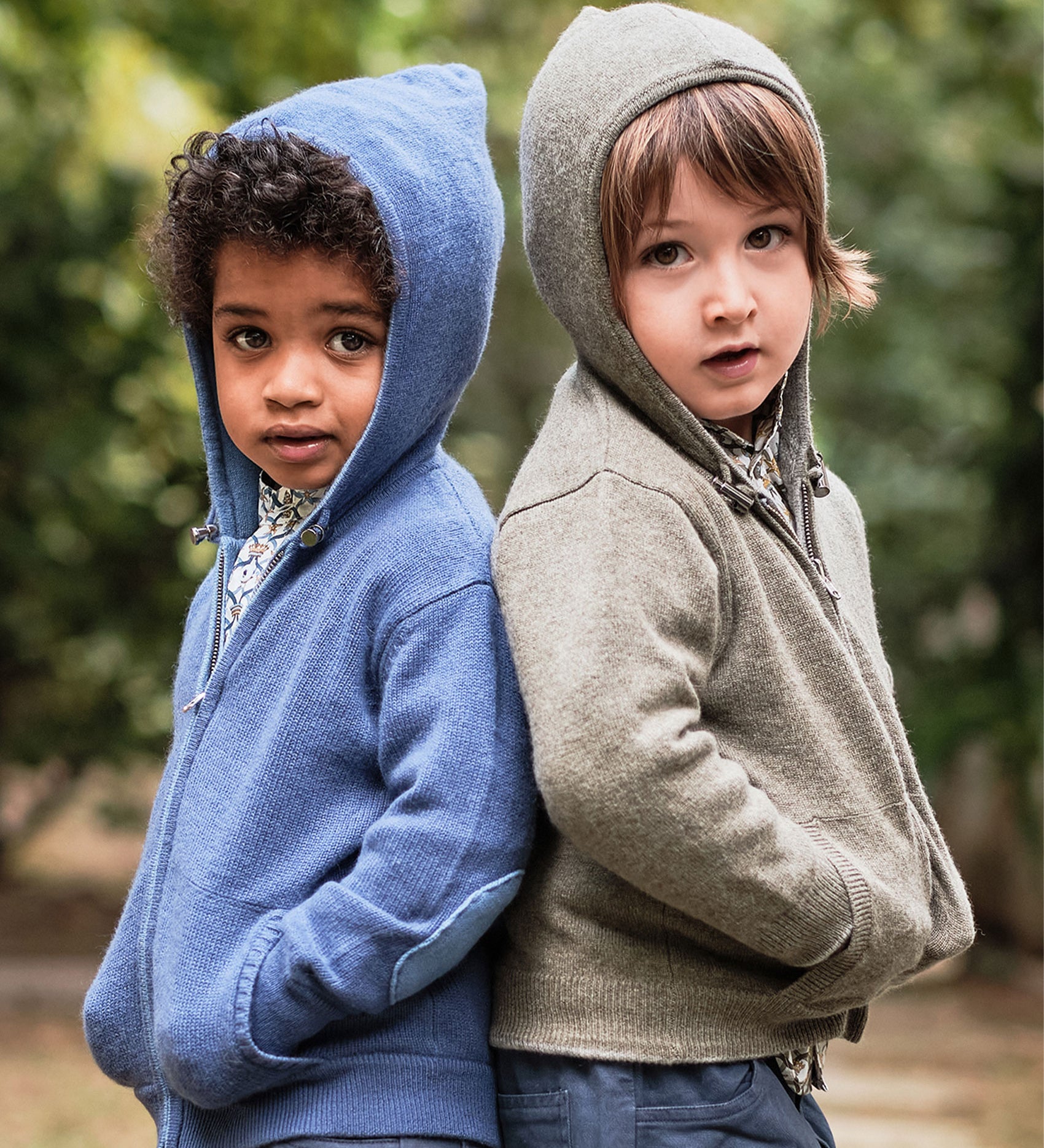 Discover our beautifully crafted cashmere cardigans for children, available in a joyful array of colours.