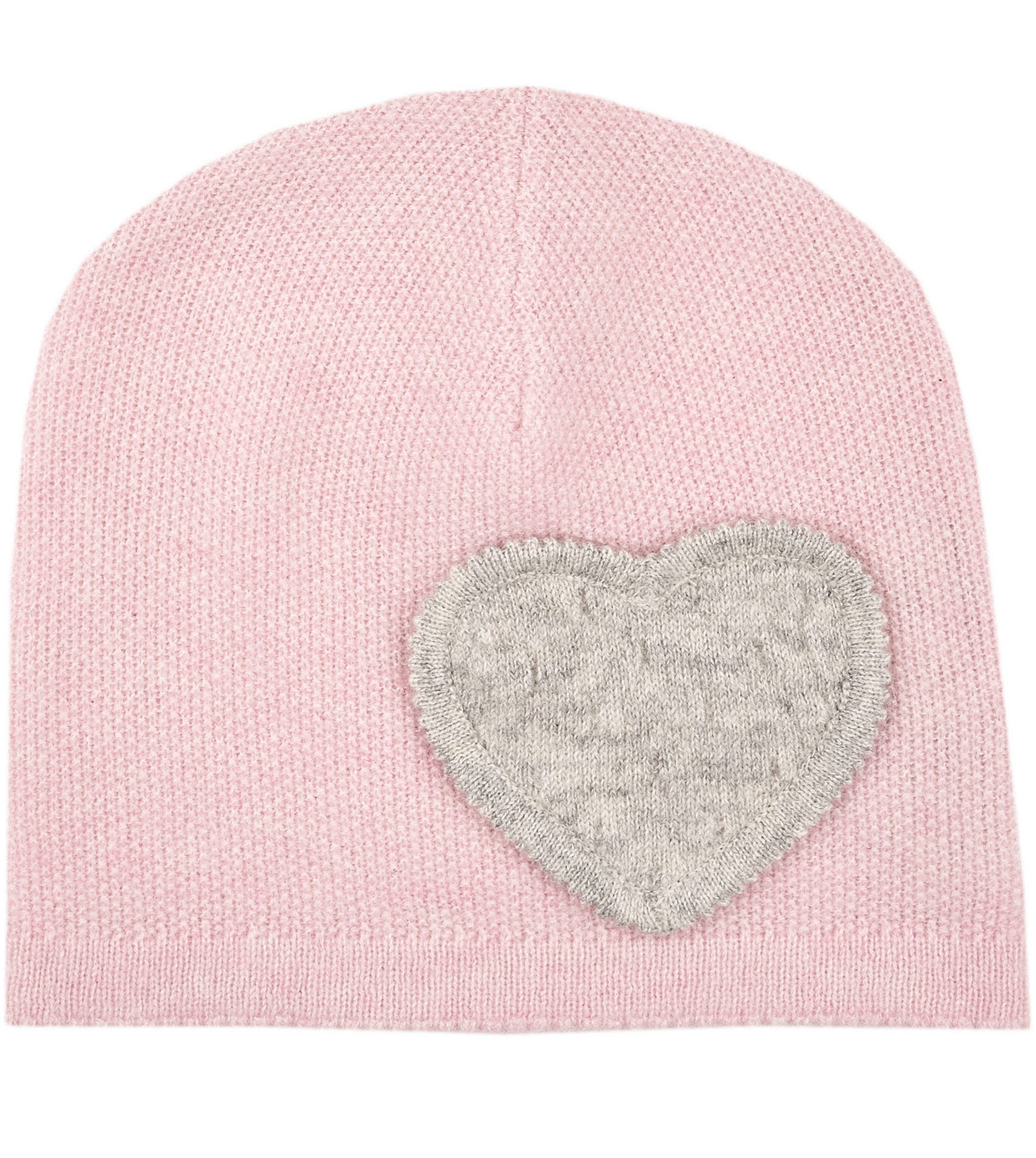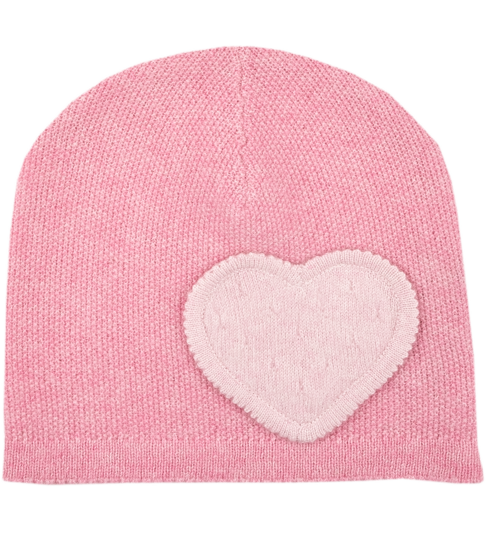 Girl - Maya Linen Stitch Cashmere Hat with Heart Patch