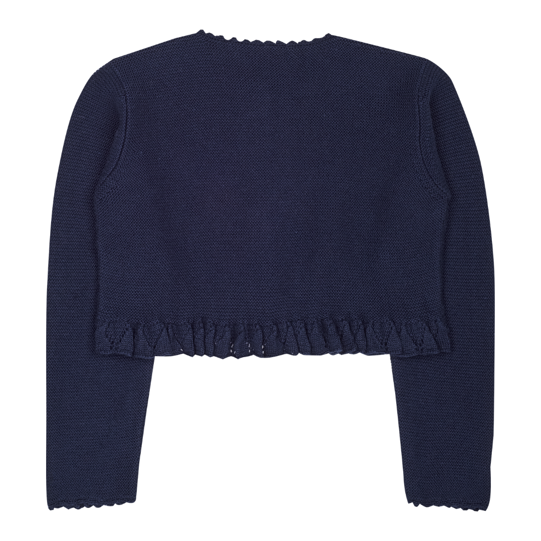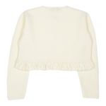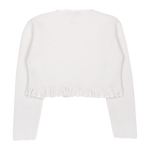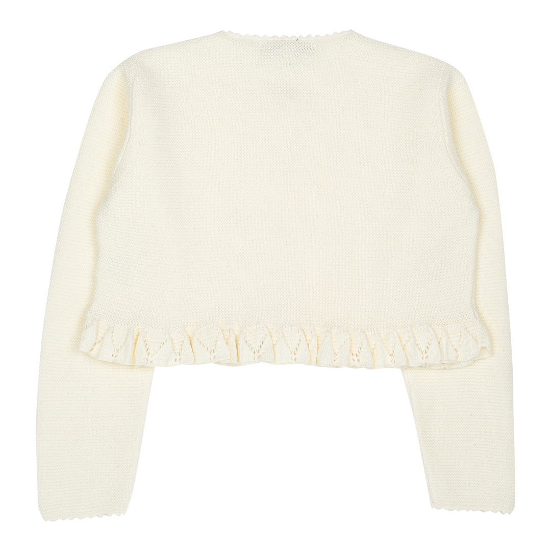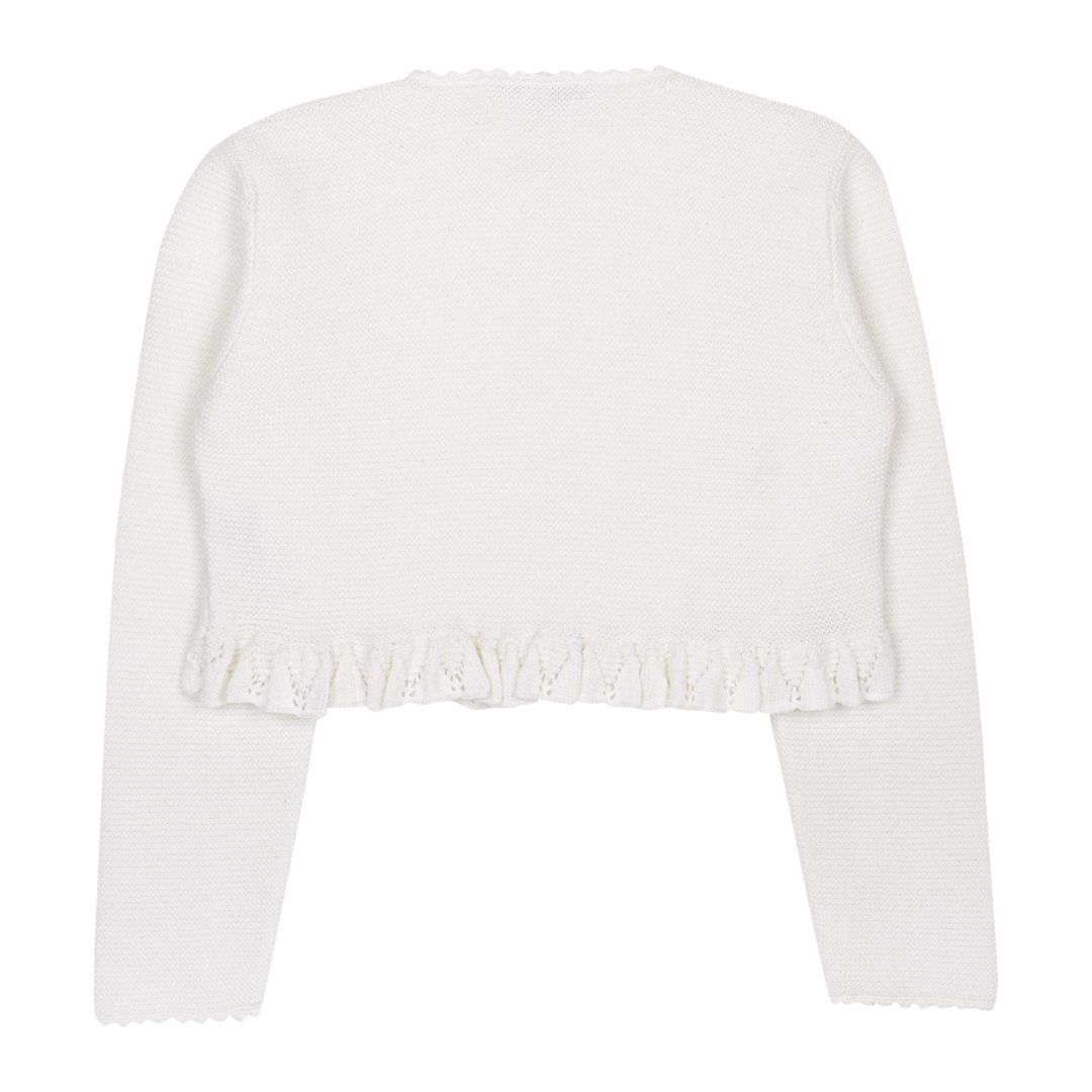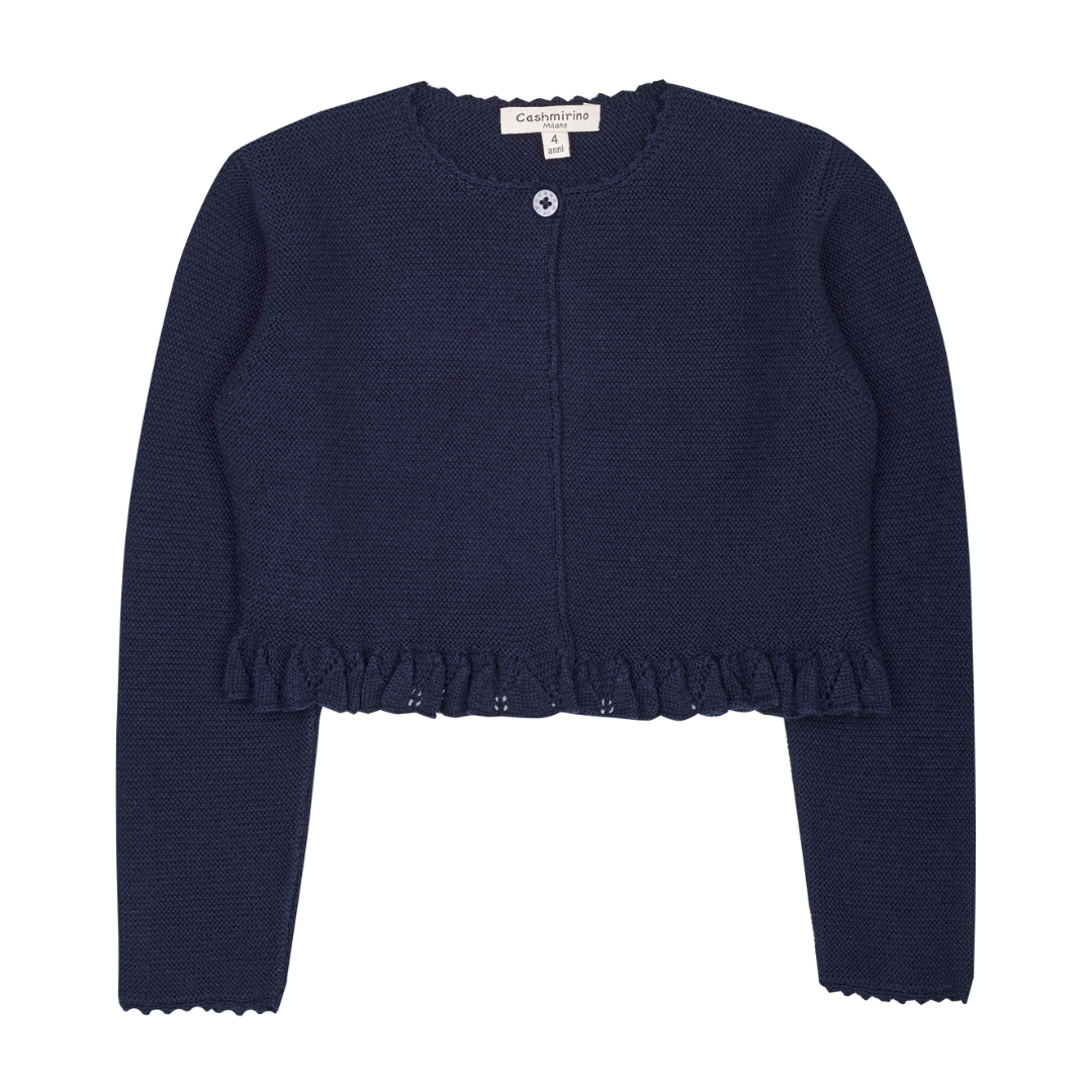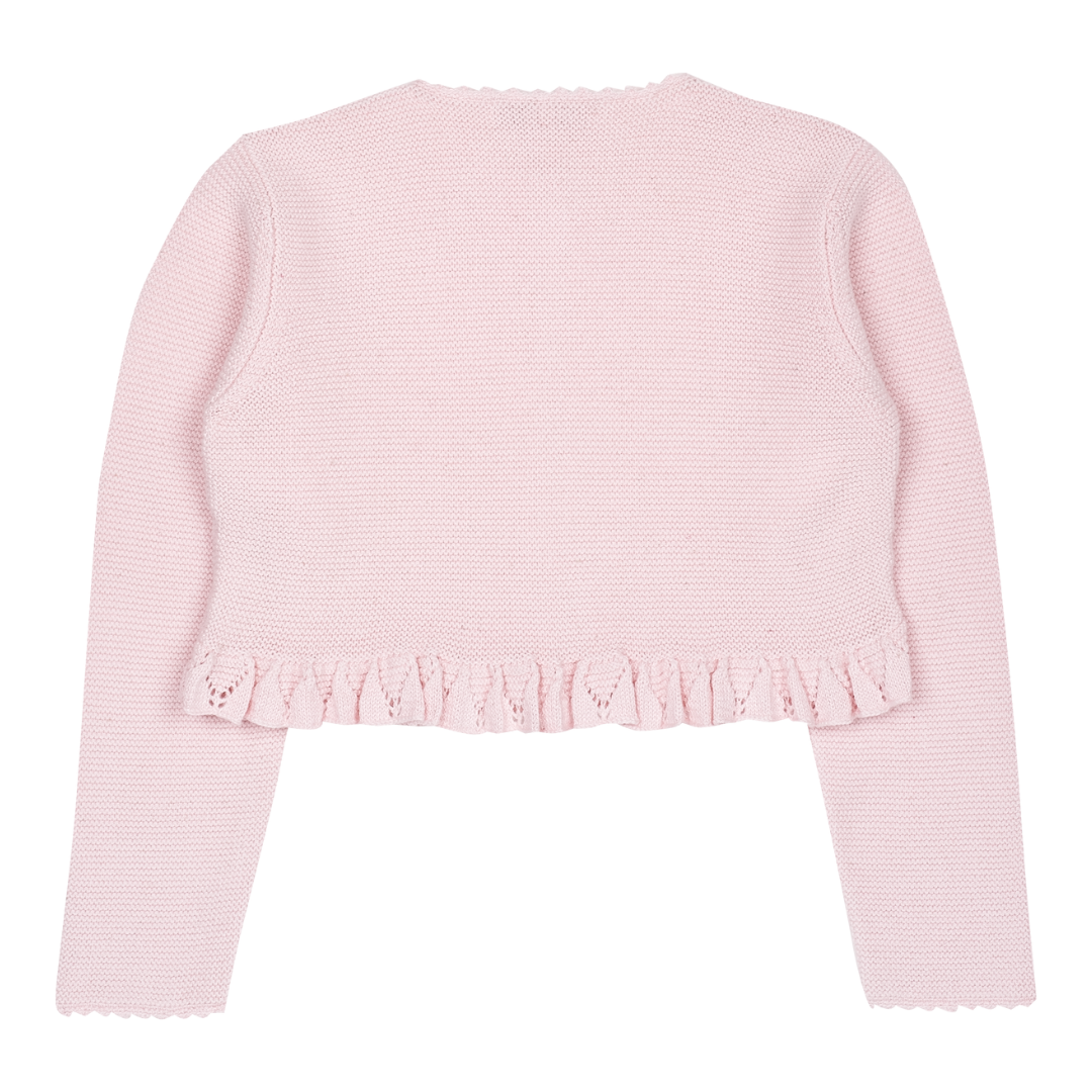 This knitted cropped lightweight girl cardigan is the perfect piece to put together any outfit; with beautiful crochet detailing around the waist and cuffs. This lightweight cardigan can be used in autumn or spring or as a layer in winter.