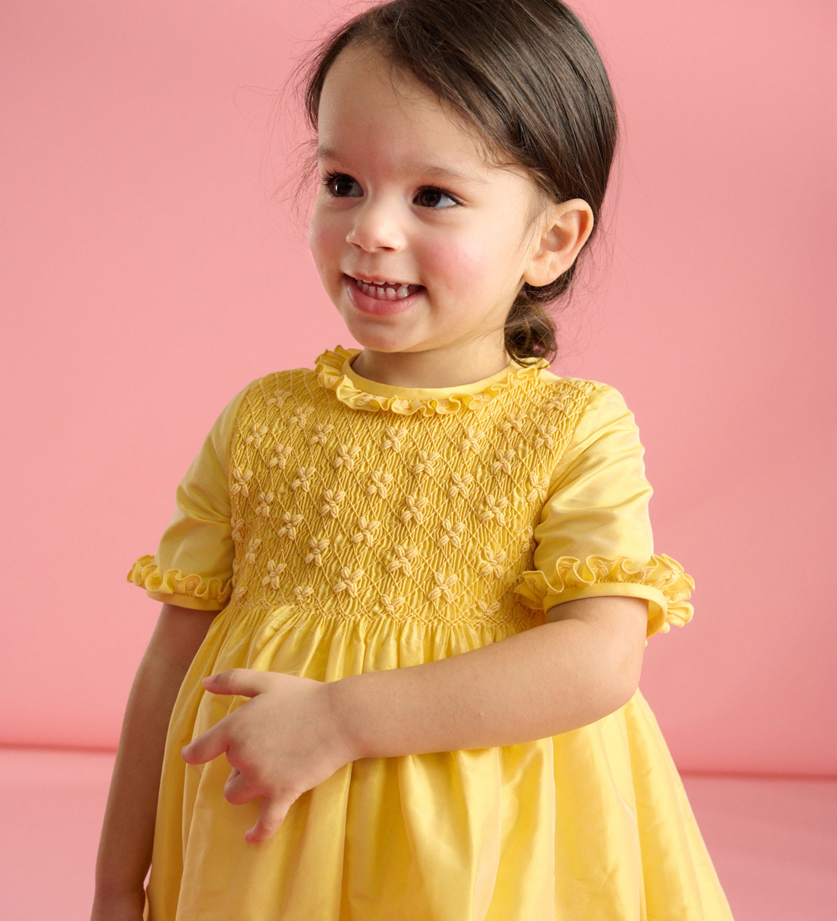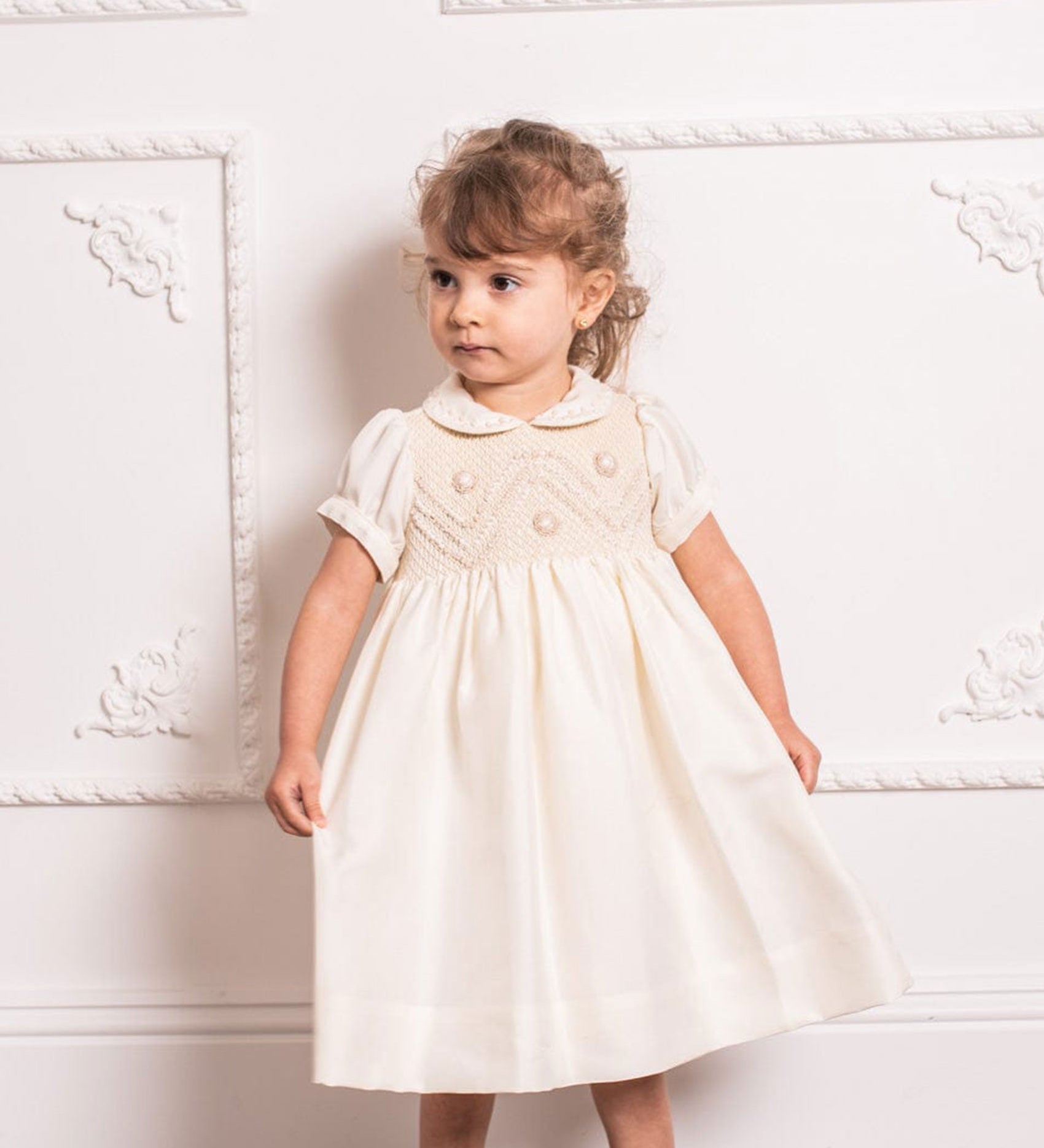 Girl - Gwenda Silk Smocked Hand Embroidered Knee Length Dress