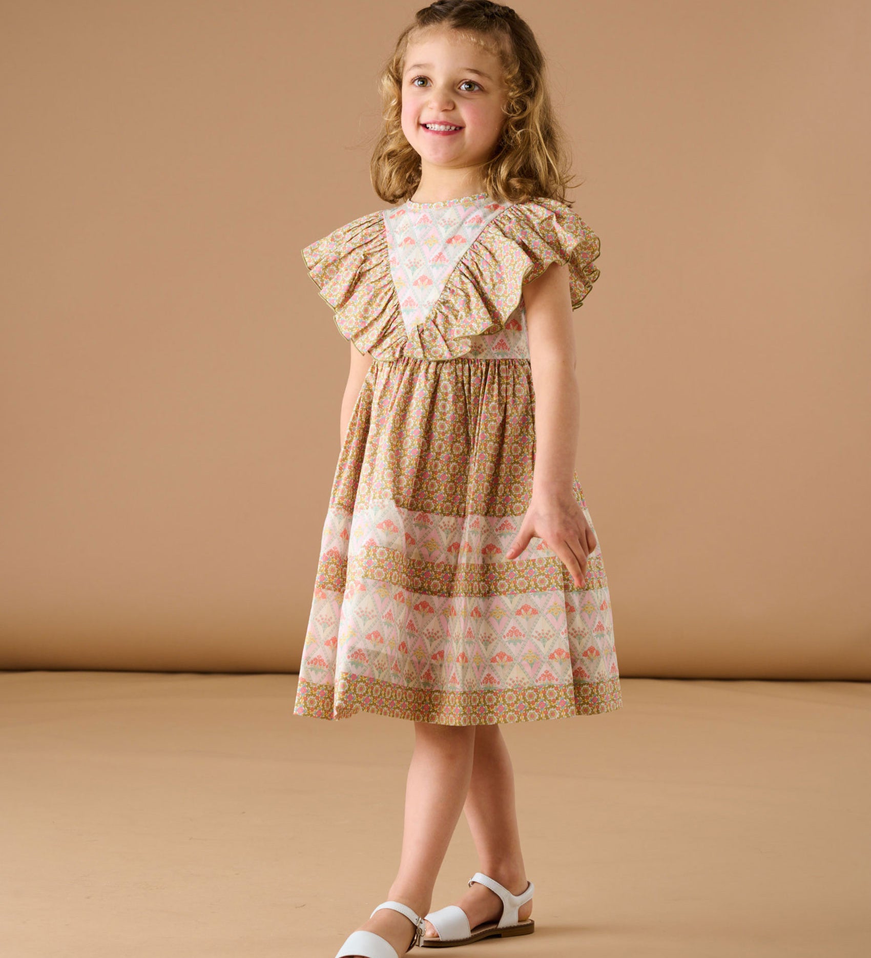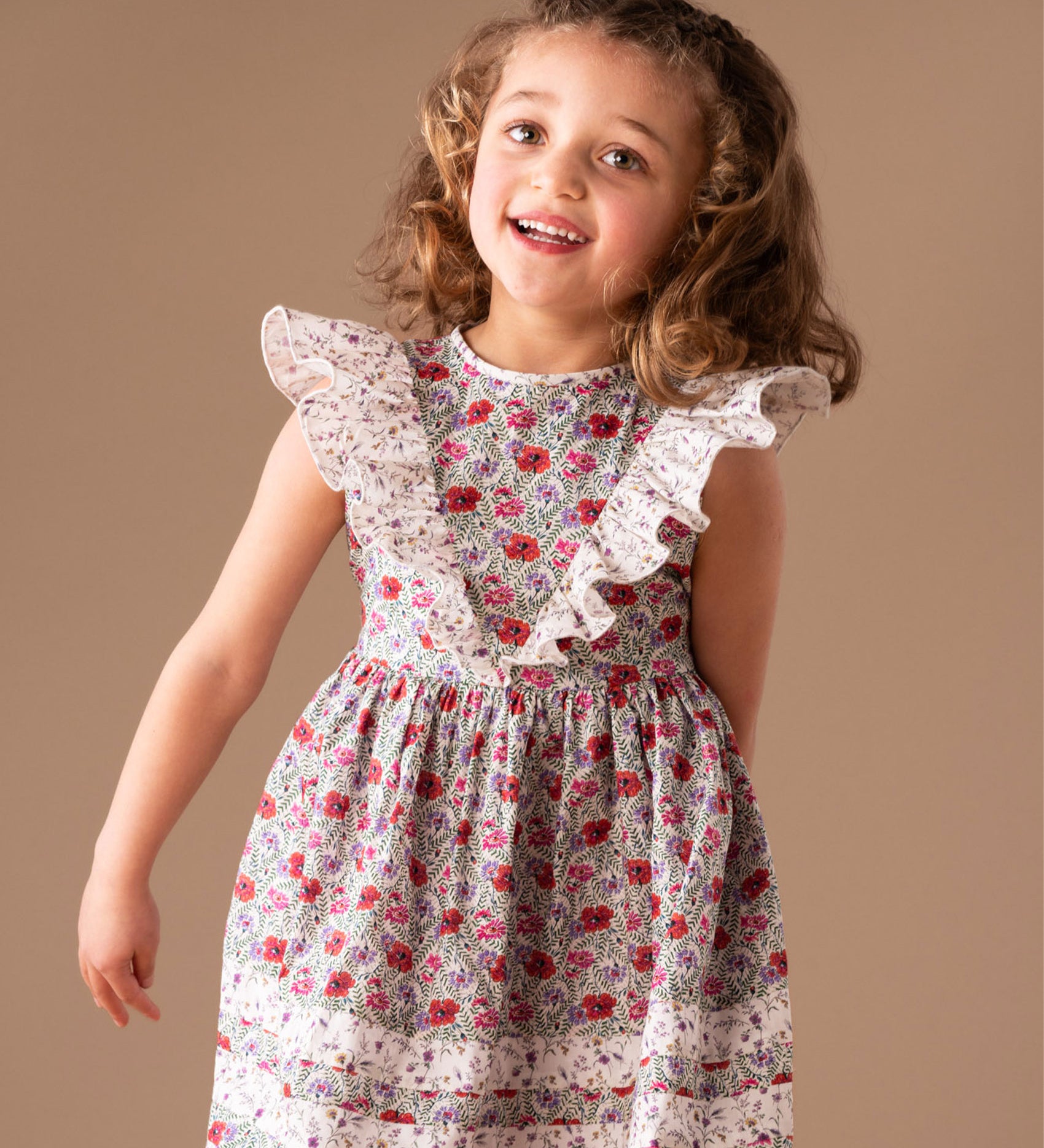 Girl - Marina Liberty Print Cotton Dress with Frill Sleeves