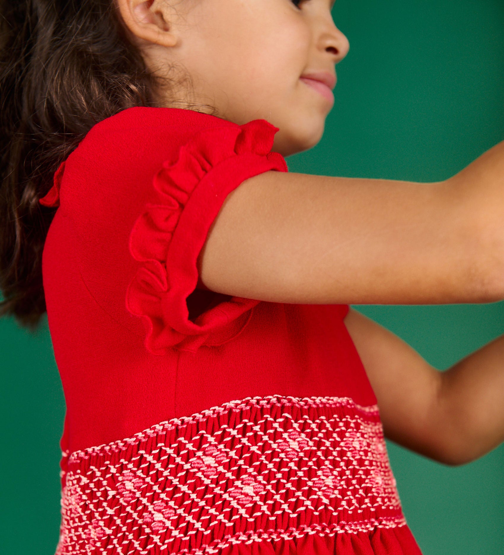 Girl - Ruby Wool Smocked Hand Embroidered Knee Length Dress