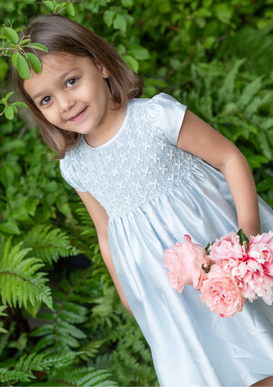 Every silk piece in our collection is created to celebrate a moment in a child’s life—whether it’s a party dress, an heirloom blouse, or a sweet accessory. Each garment is designed in-house and often finished by hand, combining traditional craftsmanship with thoughtful detail. We believe clothing for children should be more than beautiful—it should be meaningful, comfortable, and built to last. That’s why our silk garments are made to be worn, loved, and passed down, from one sibling to the next.