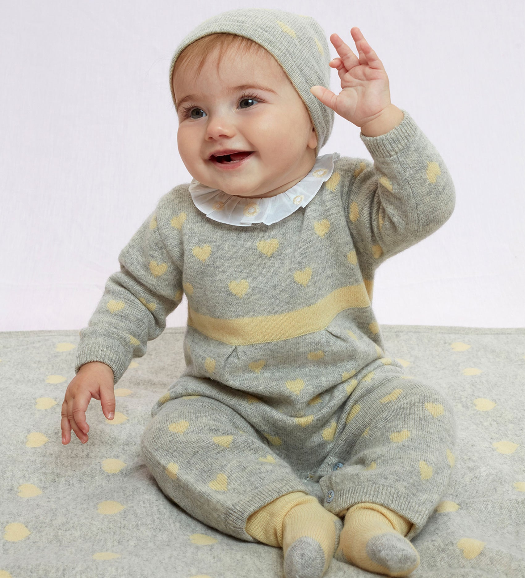 This charming collection of baby girl rompers truly ticks all the boxes. Crafted in our signature 100% cashmere, as well as soft cottons and linens with delightful prints, each romper is designed with care and attention to detail.
