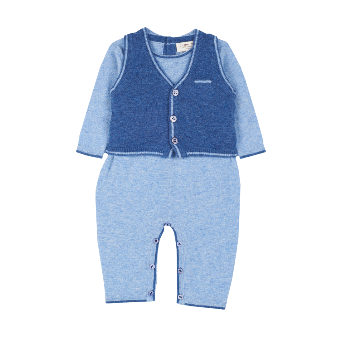 Baby Boy - Cashmere Sleeveless Cardigan and Romper with Contrasting Trim Set