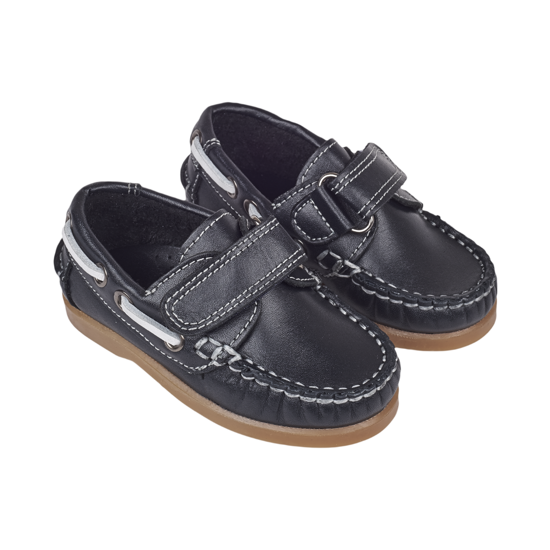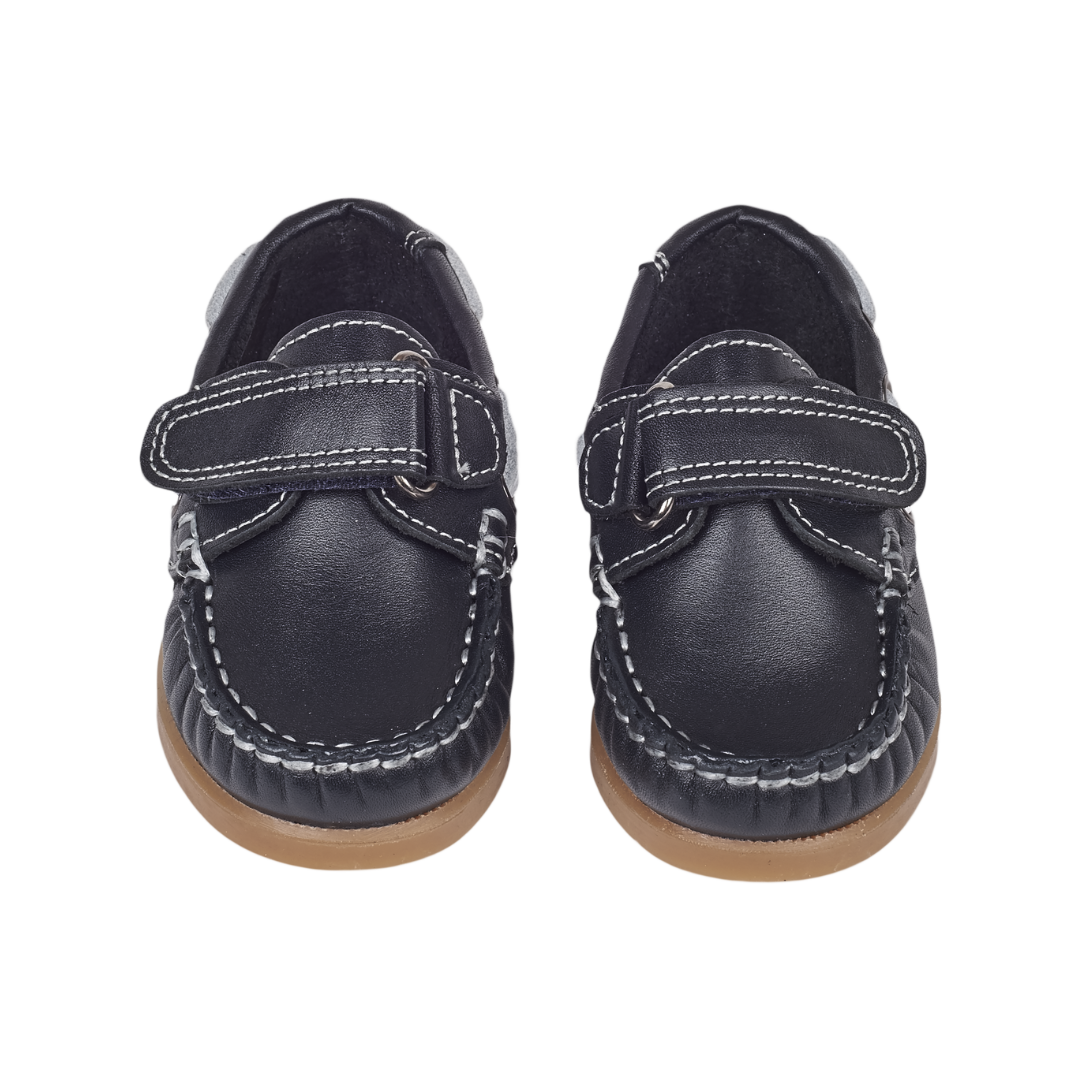 Baby Boy – Monty Leather Boat Shoes with Contrast Detail & Velcro Strap