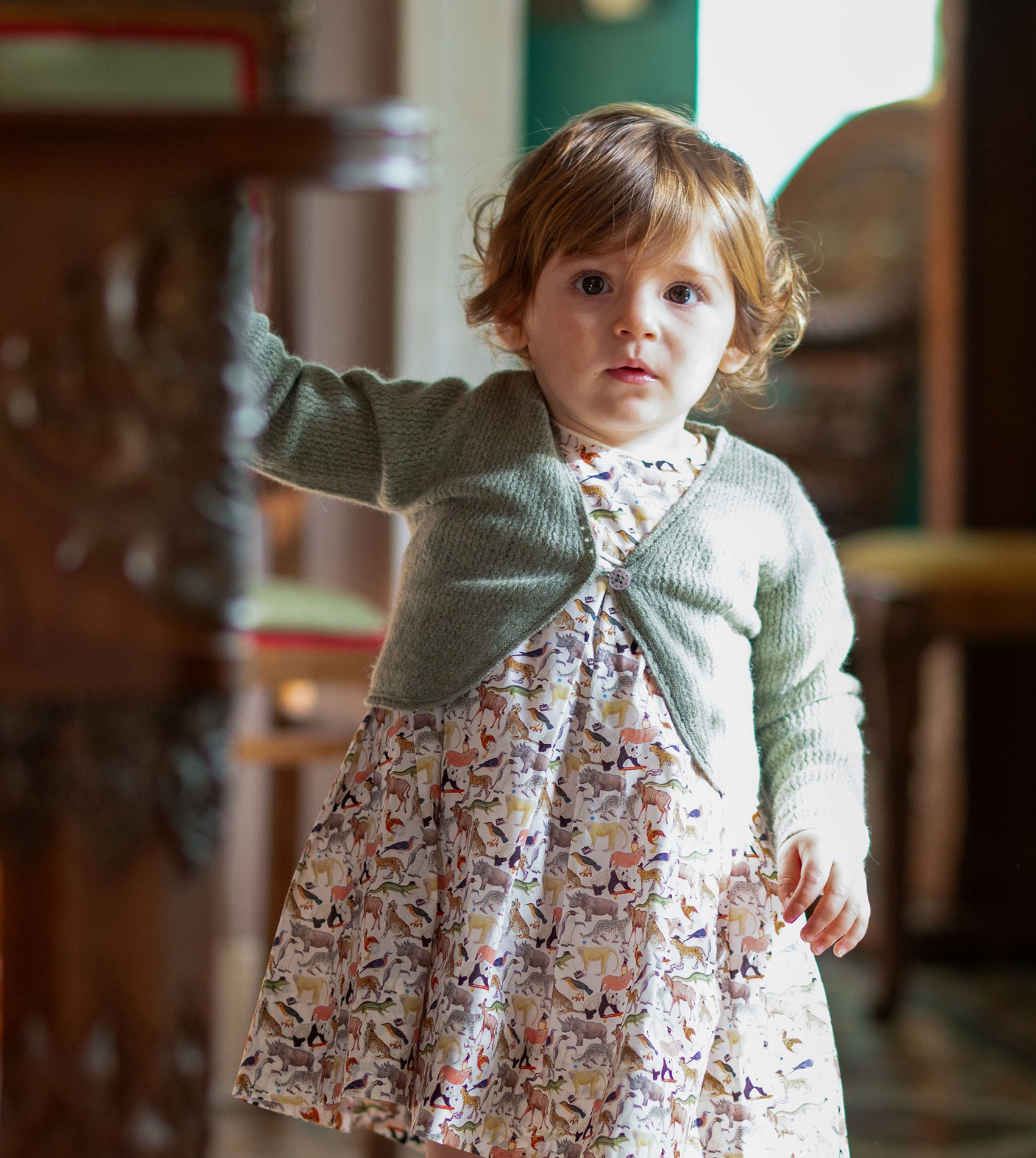 The Brielle Cashmere Shrug is a stunning and versatile addition to your baby girl’s wardrobe. Crafted from 100% luxuriously soft cashmere, this elegant piece is designed with a chic V-neckline and cropped silhouette, making it the perfect light layer for cooler summer days, and equally lovely in spring, autumn, or under a coat in winter.