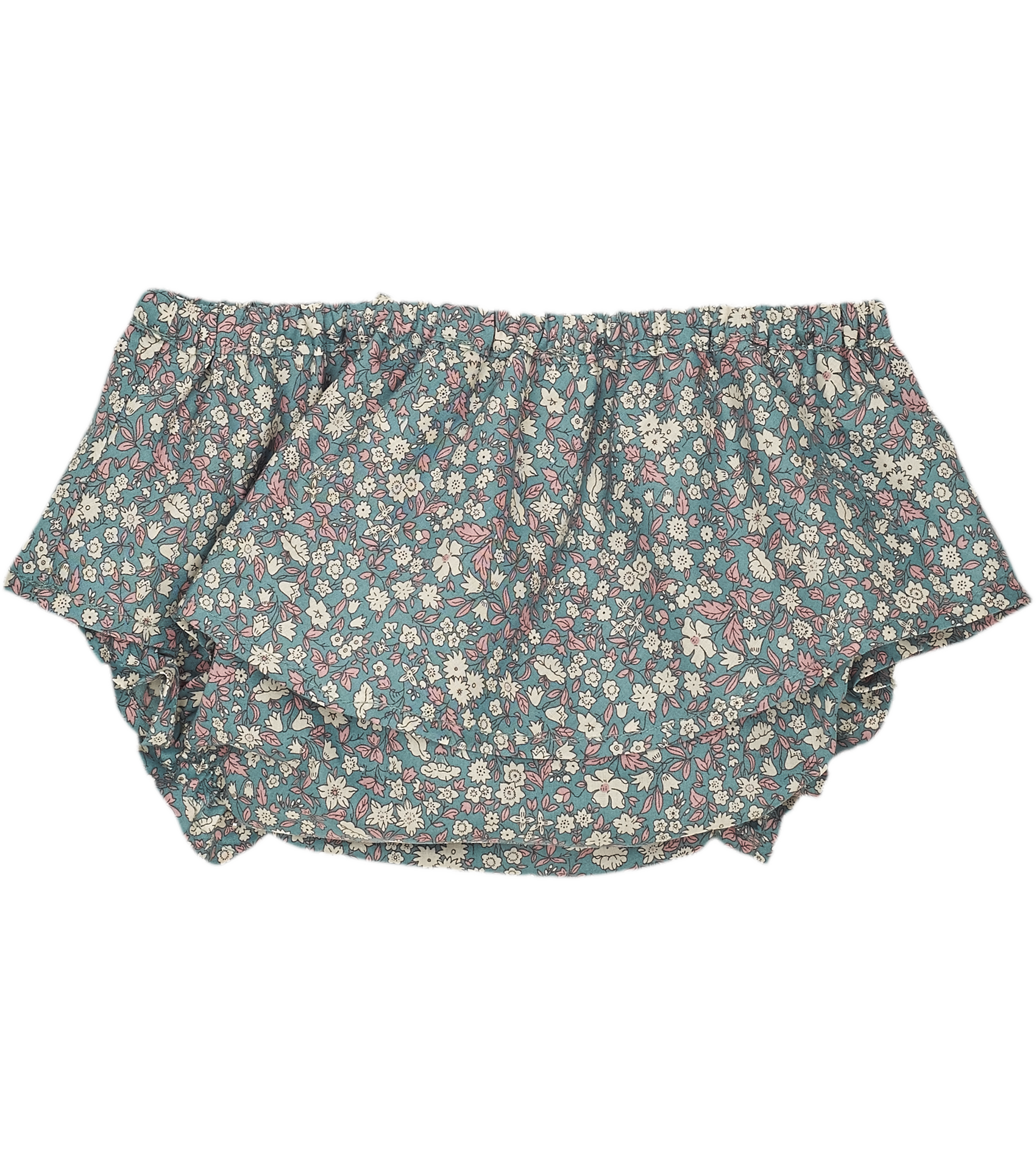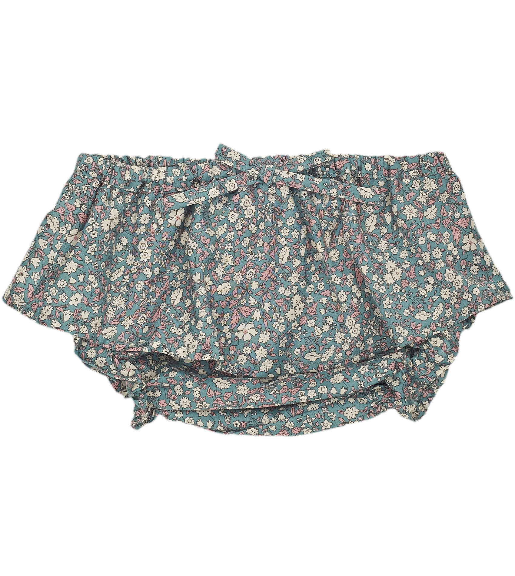 Pretty 100% cotton ruffled Liberty printed baby girl bloomers, finished off with bow detail at the front.