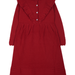 Wrap your little one in the soft elegance of the Clarabelle stunning red cashmere dress. This dress combines timeless style with ultimate comfort, featuring a delicate ruffled design on the bodice, long sleeves for warmth, and intricate detailing along the hem. Perfect for special occasions or cosy winter days, it's a sophisticated wardrobe staple crafted for beauty and wearability.