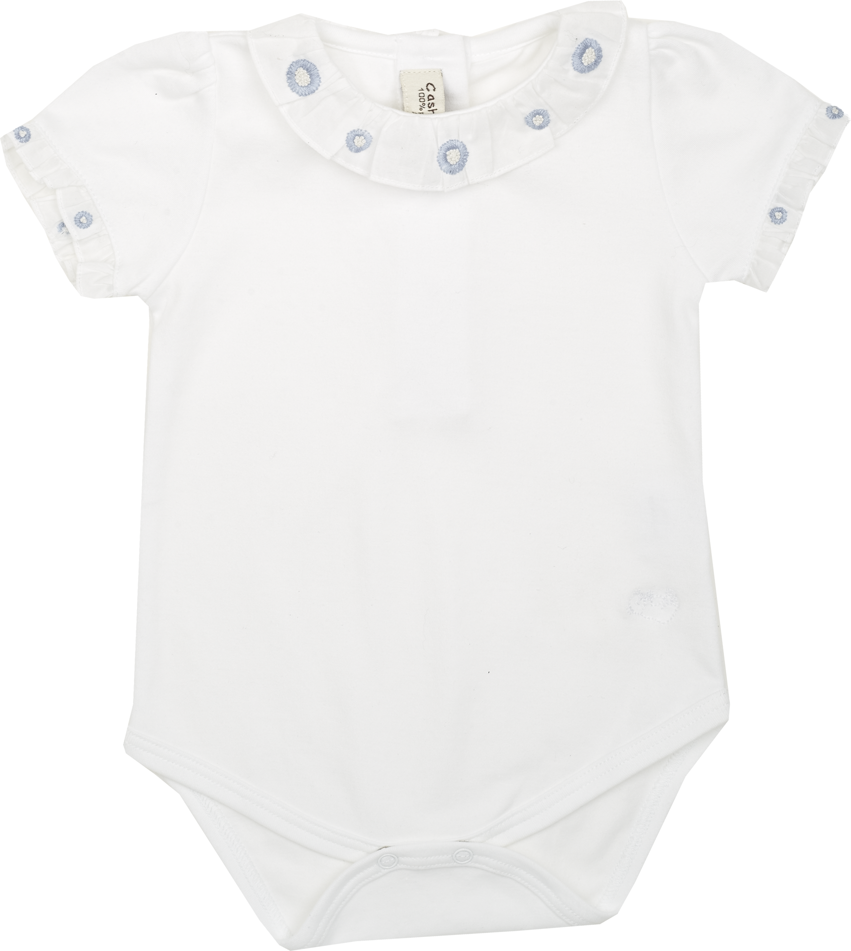 Baby Girl - Meggy Cotton Bodysuit with Ruffle Details and Hand Embroidery
