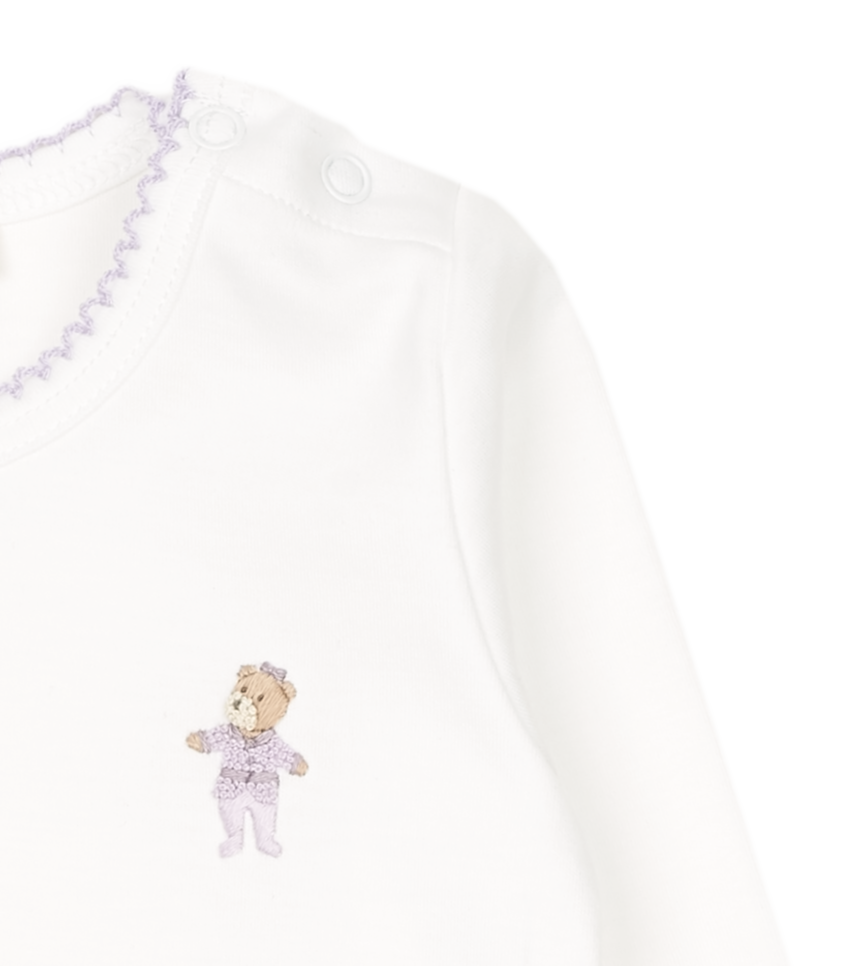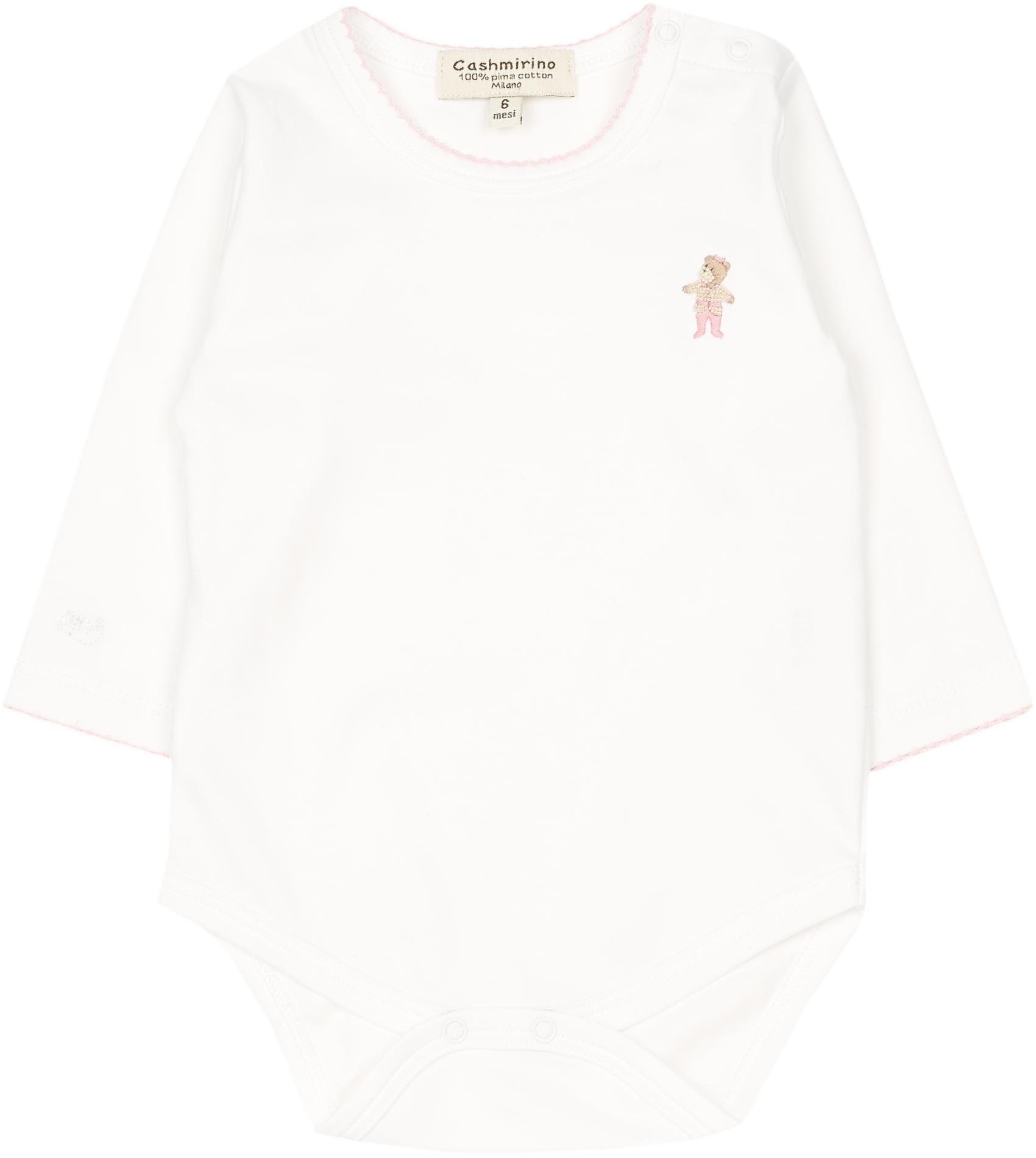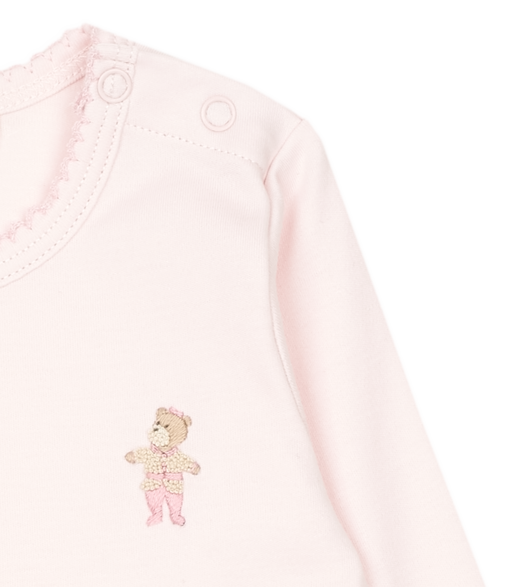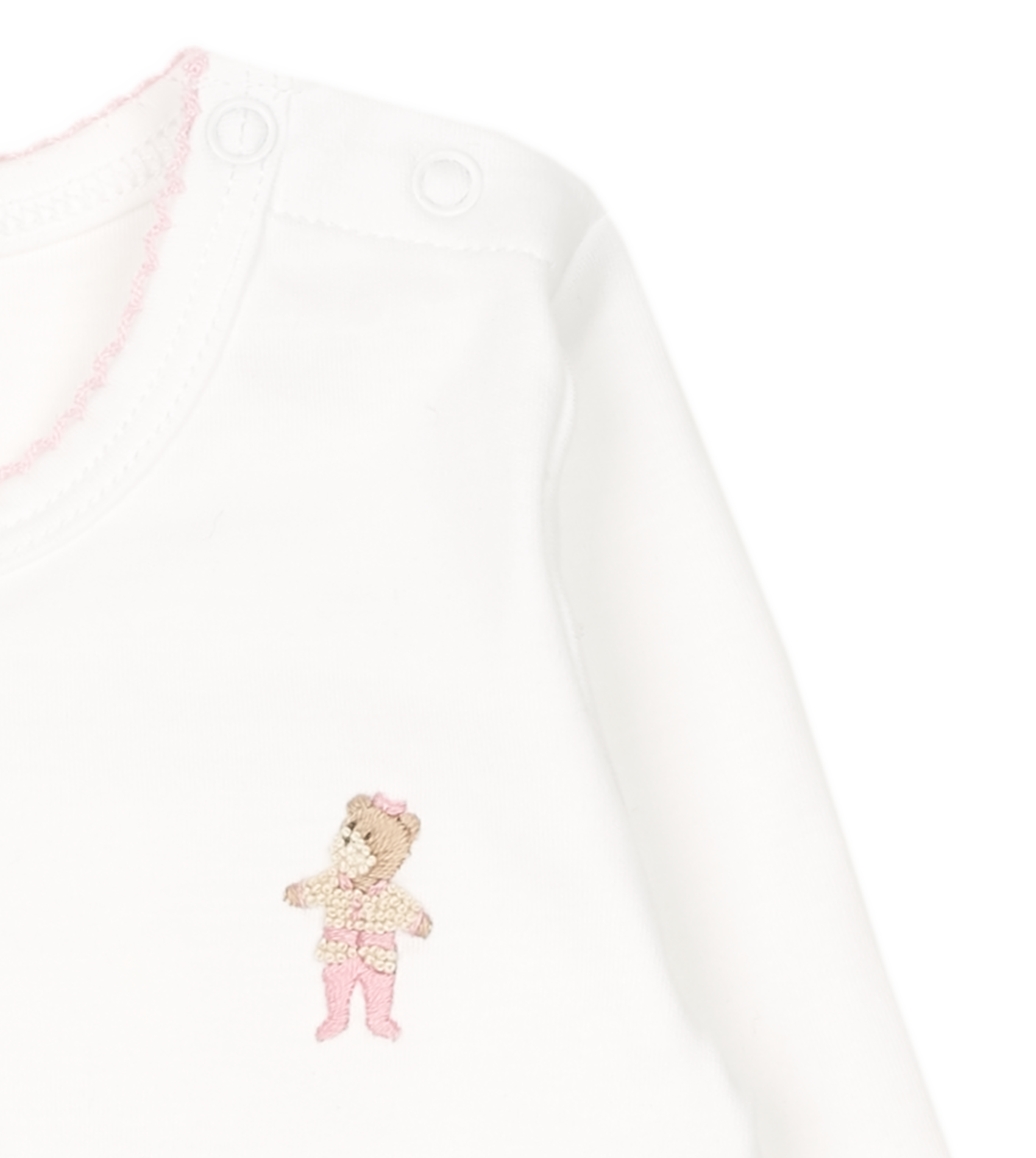 Baby Girl - Ica Bodysuit in 100% Pima Cotton with Hand-Embroidered Bear