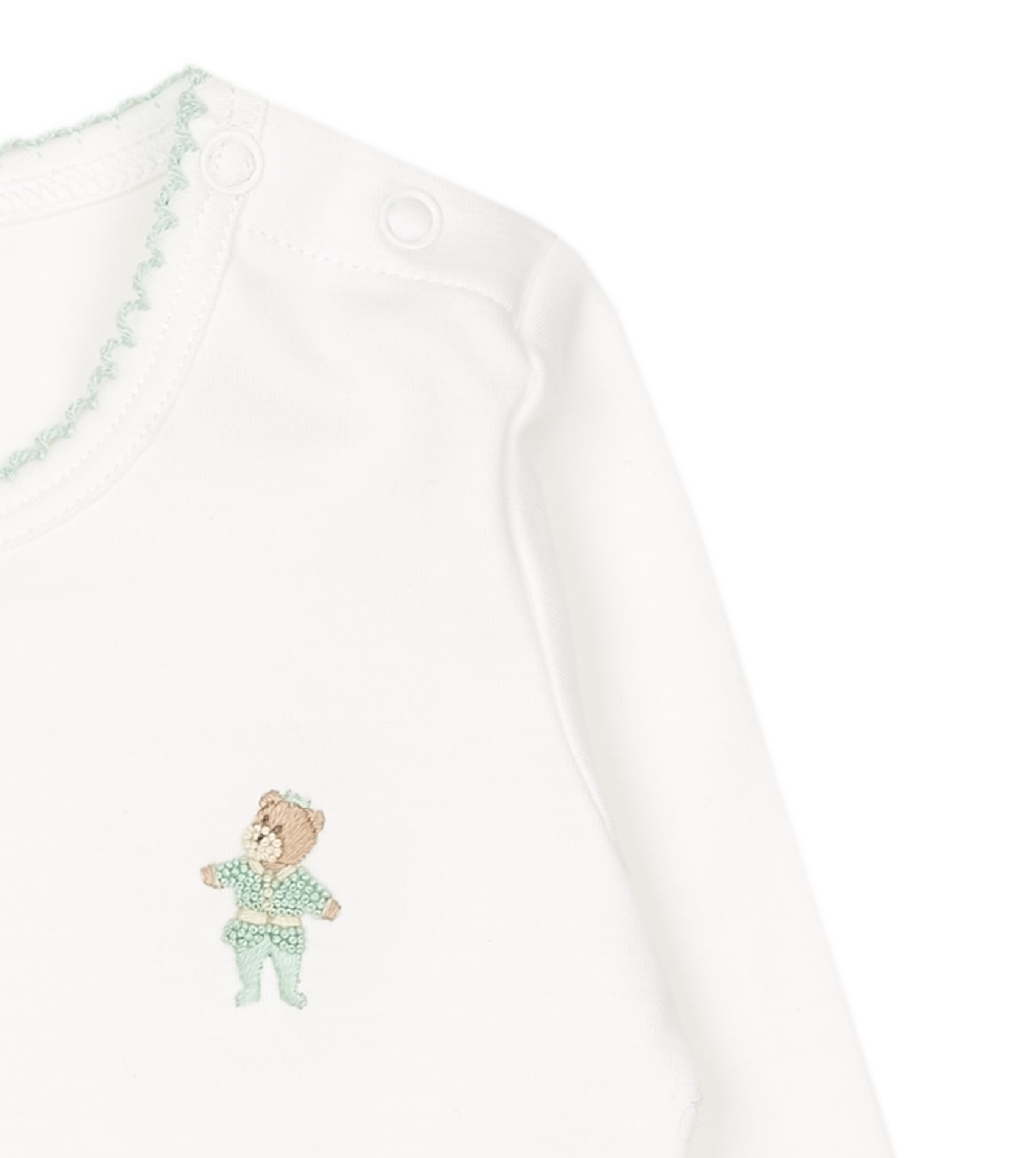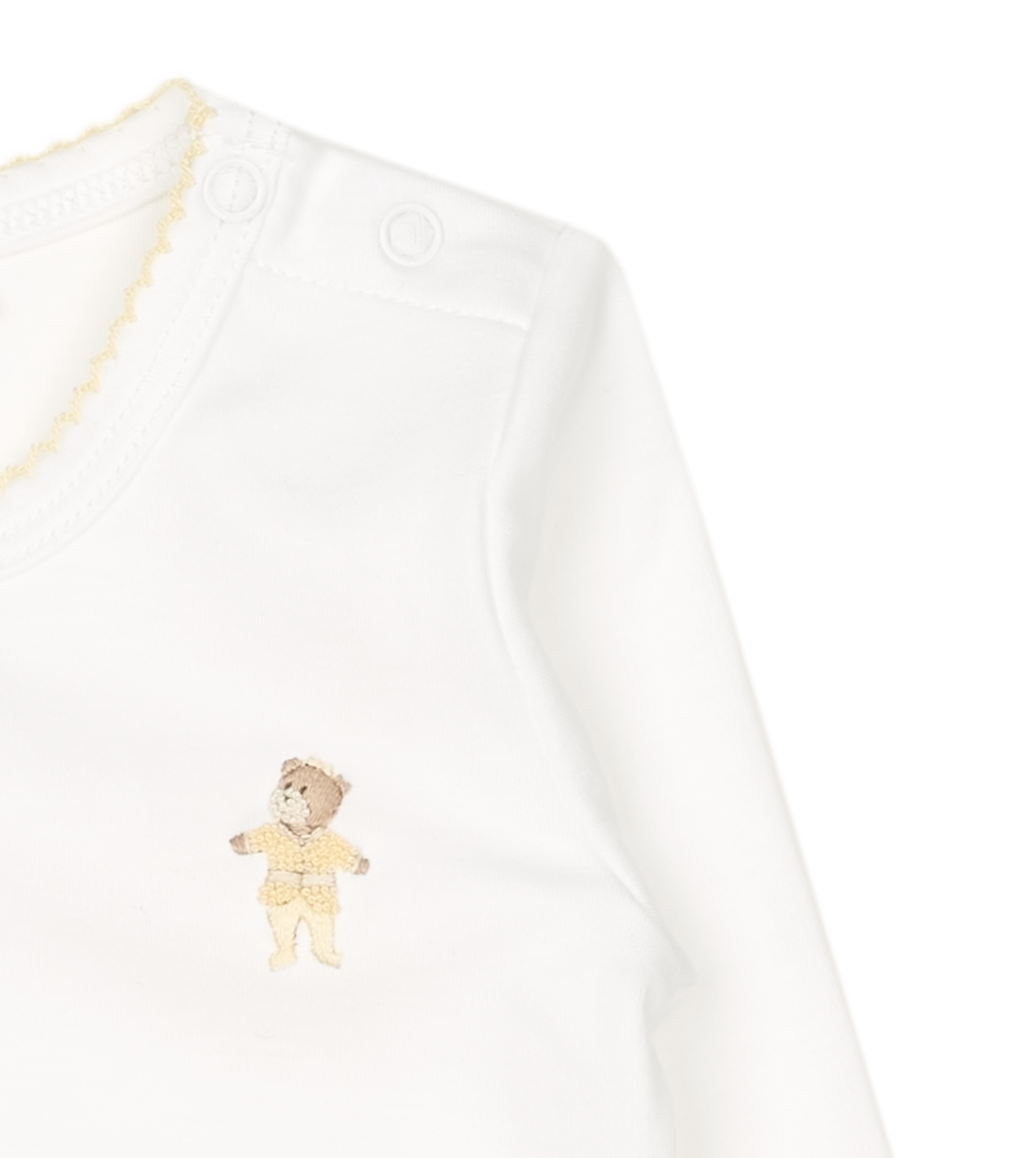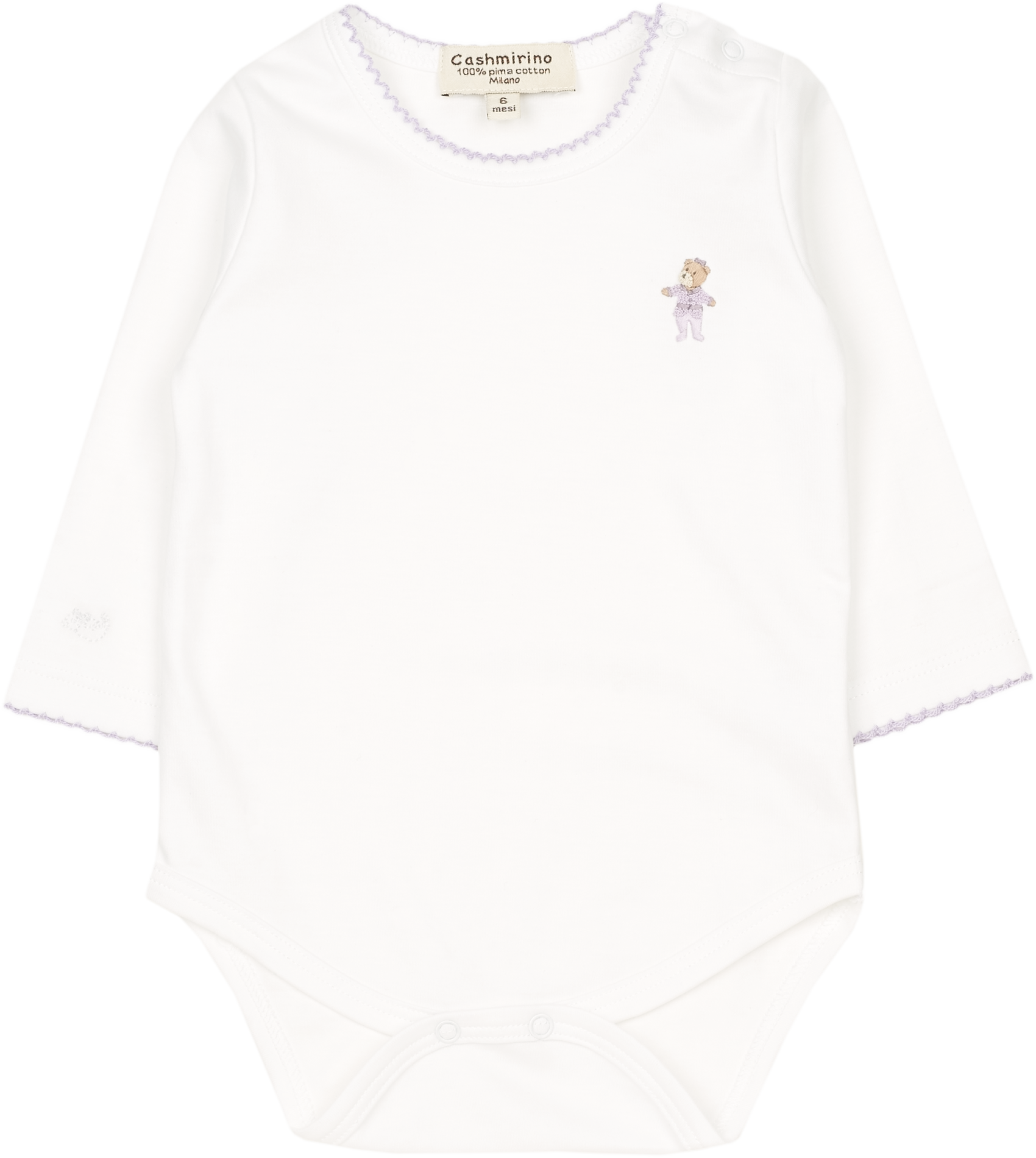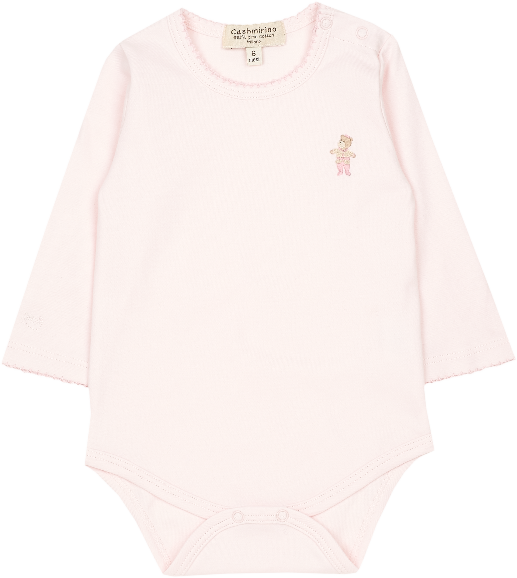 Baby Girl - Ica Bodysuit in 100% Pima Cotton with Hand-Embroidered Bear