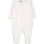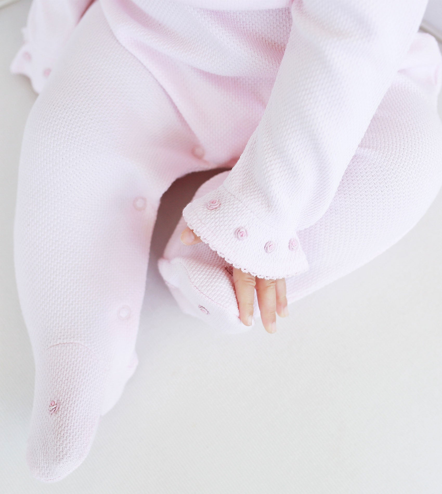 A very elegant and super soft babygro that will impress with its lovely rose embroidery detailing. Bring their cuddly little selves with you to dinner parties or relax with them at home.