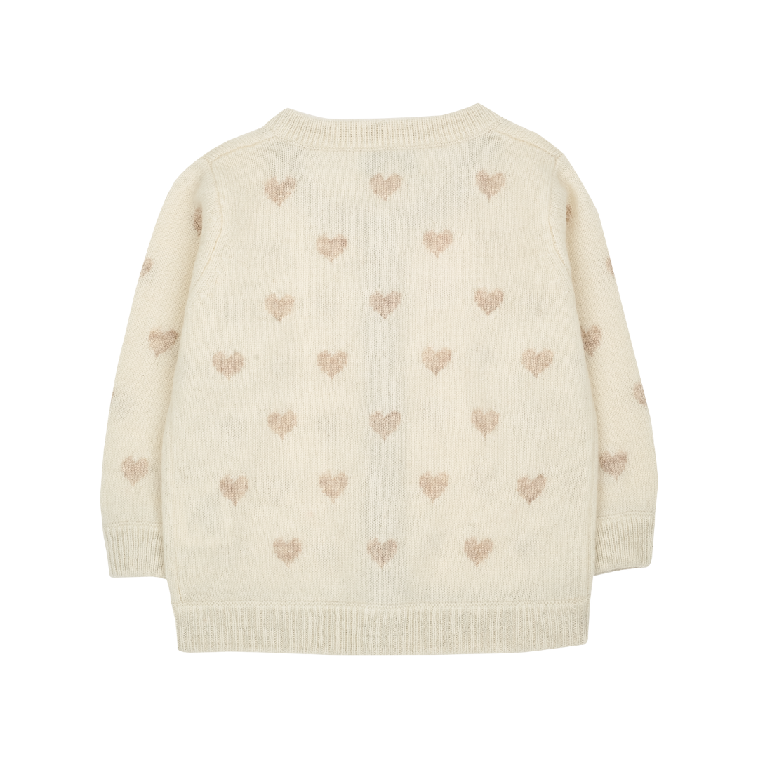 Baby Girl - Mila 100% Cashmere Heart Intarsia Cardigan with Internal Contrast