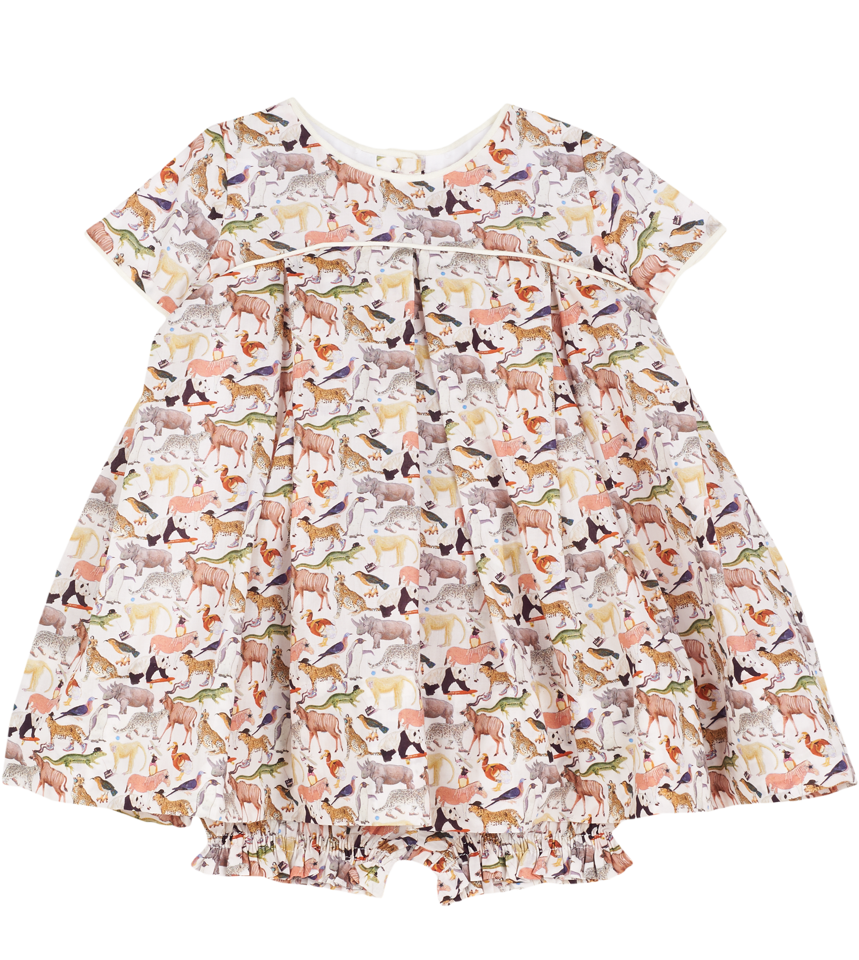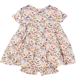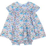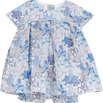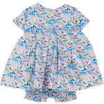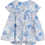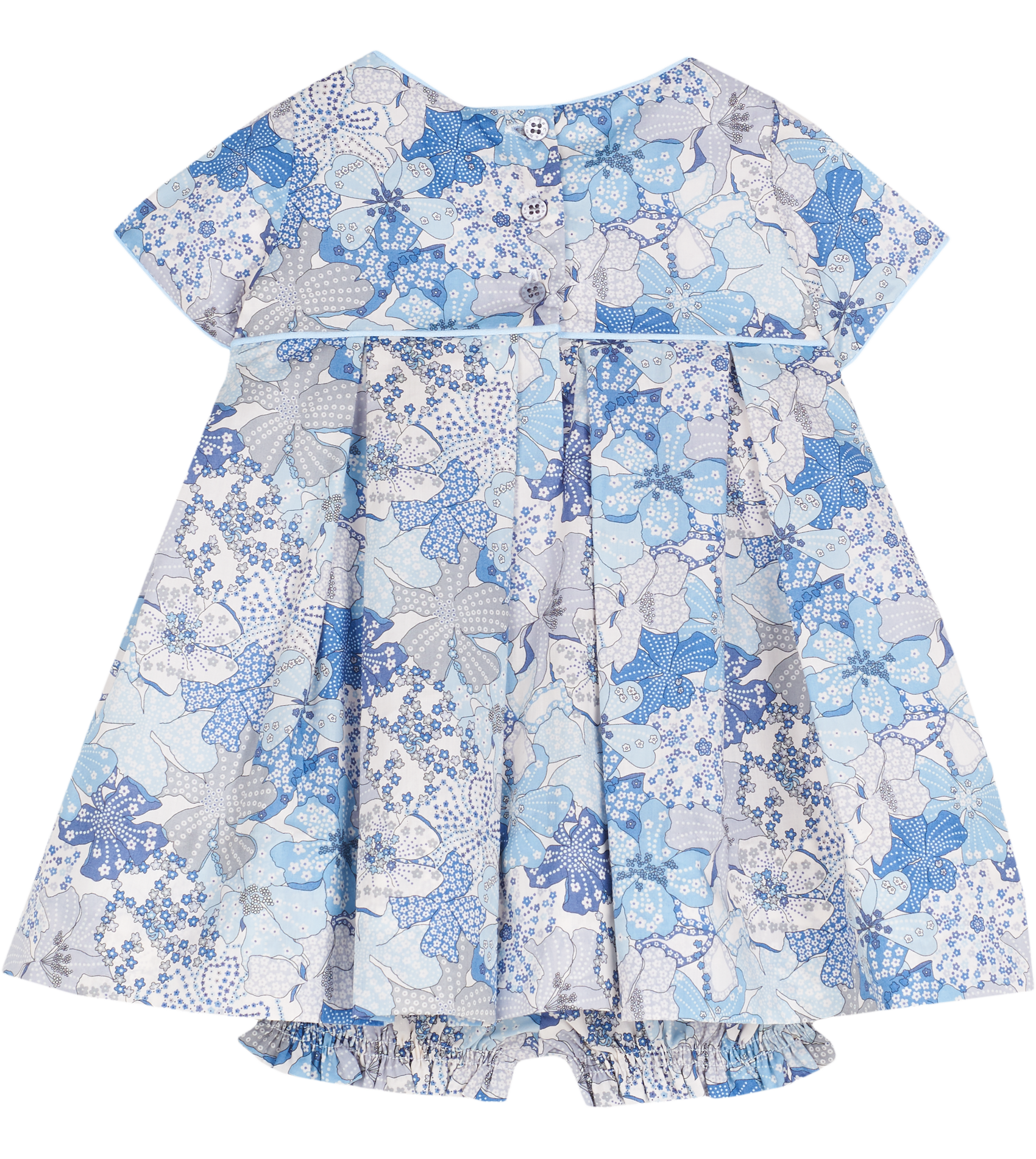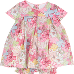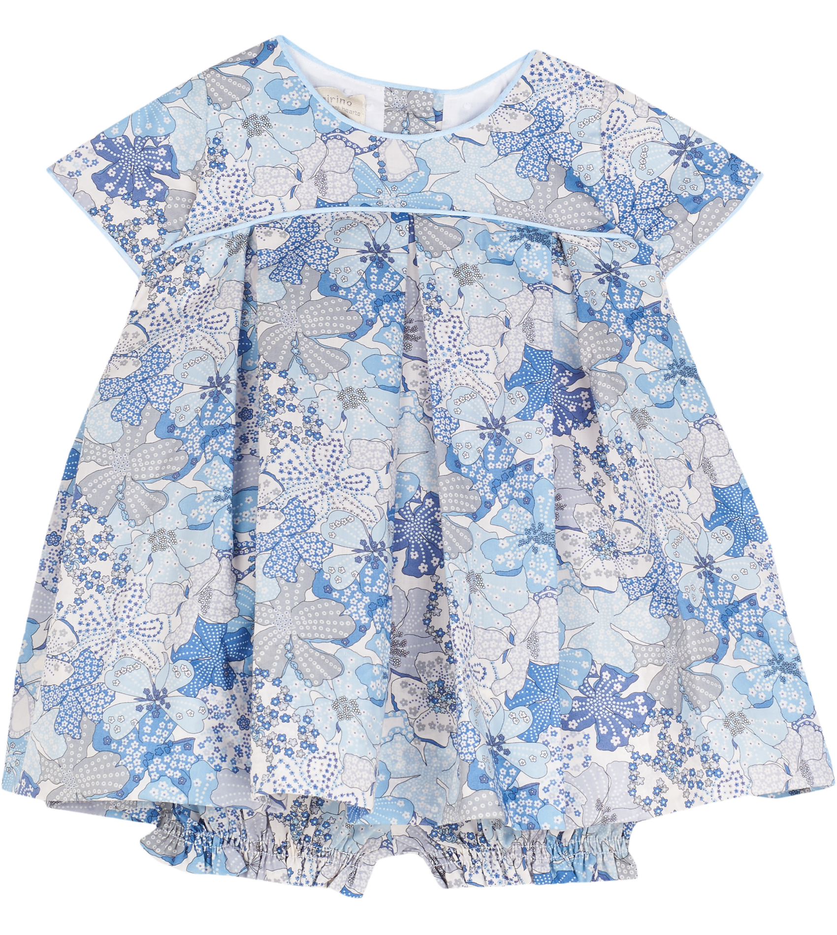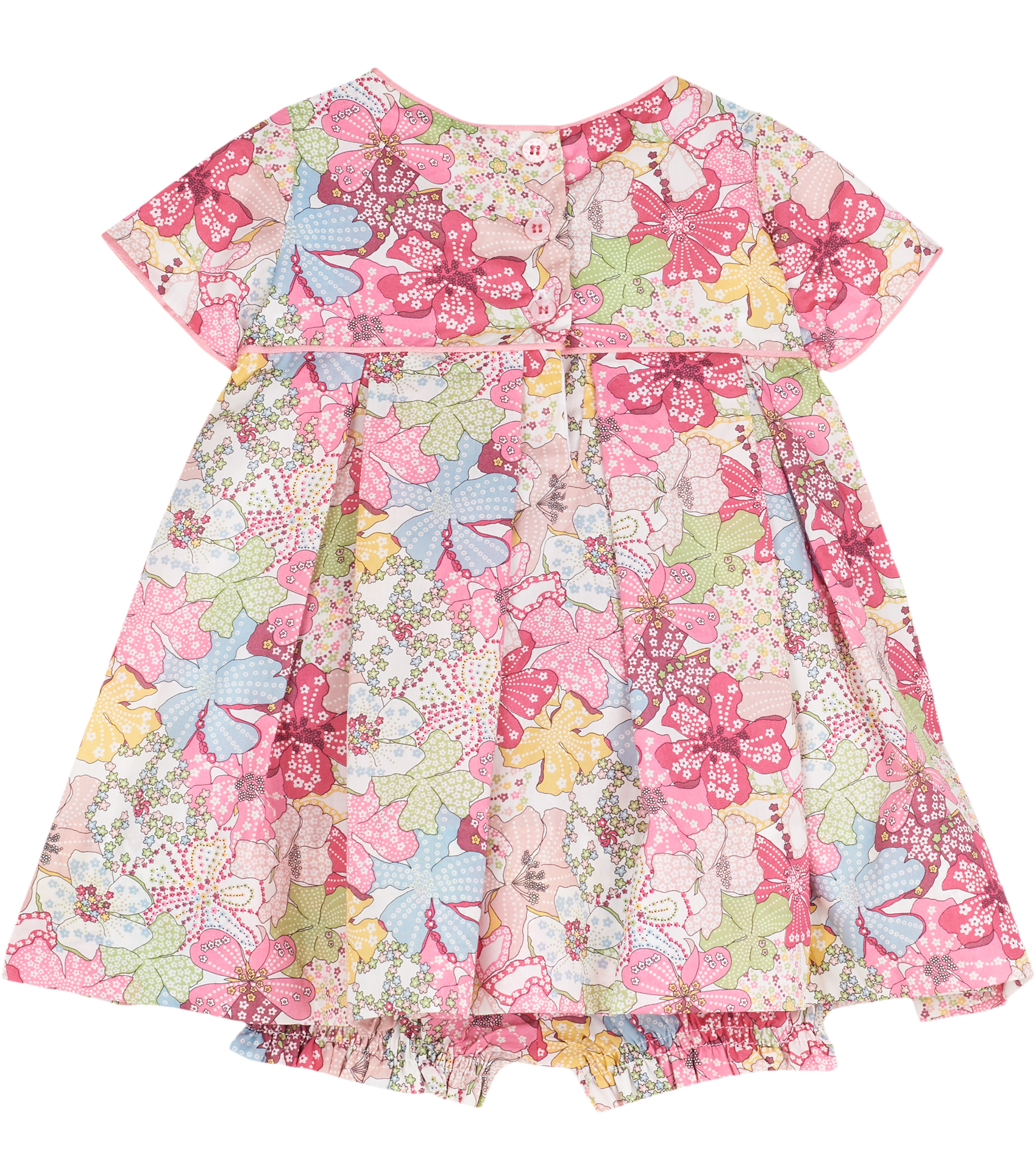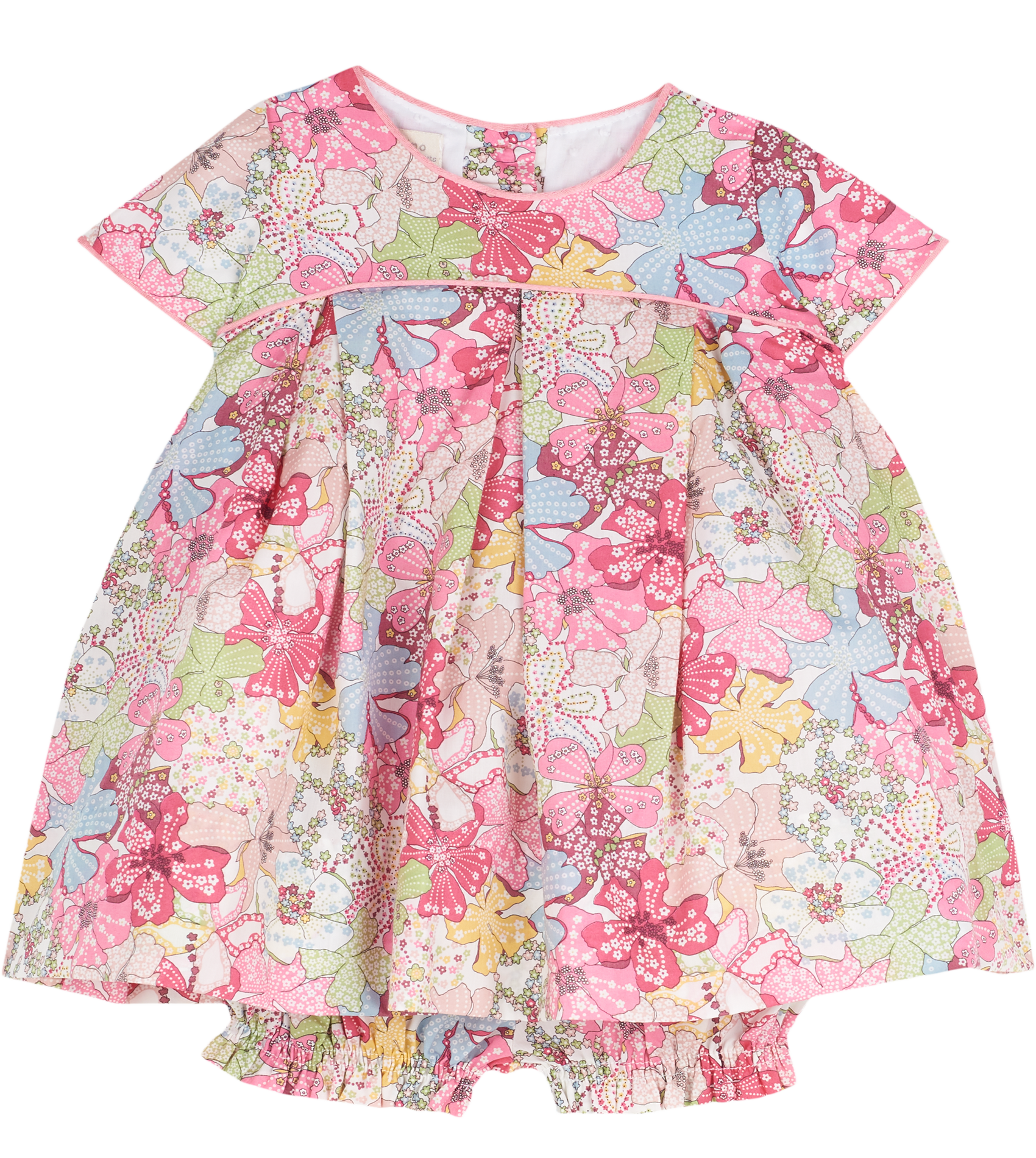 Exquisite baby girl cotton mini-length dress with matching bloomers, perfect for mini summer adventures.