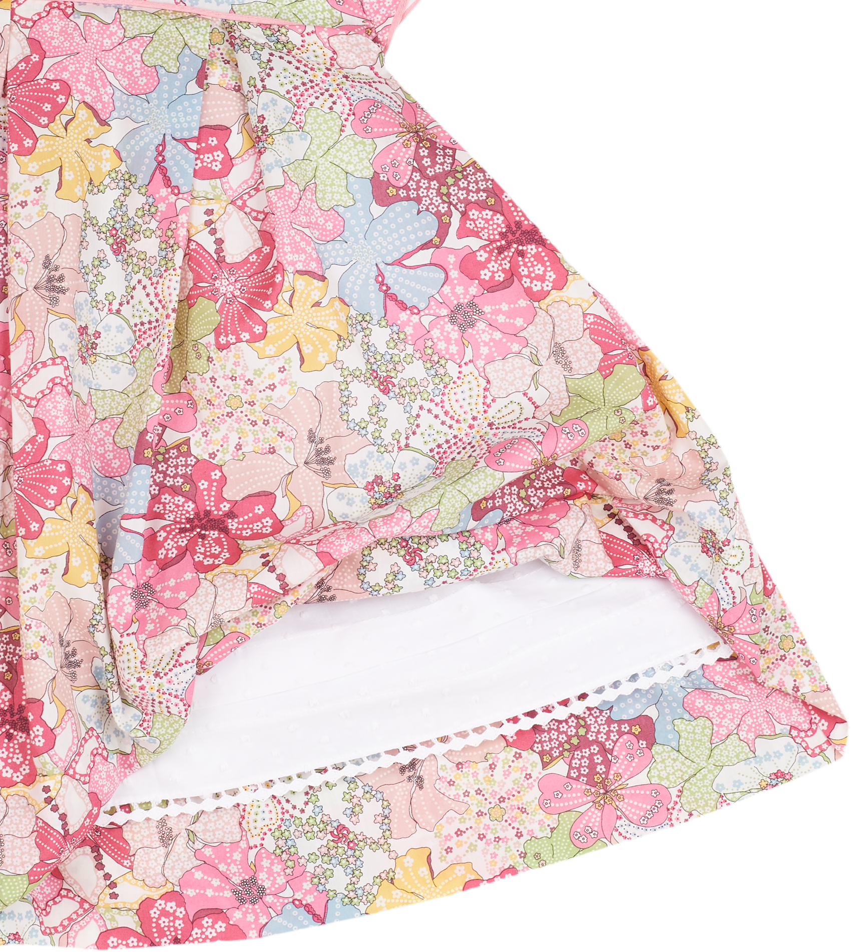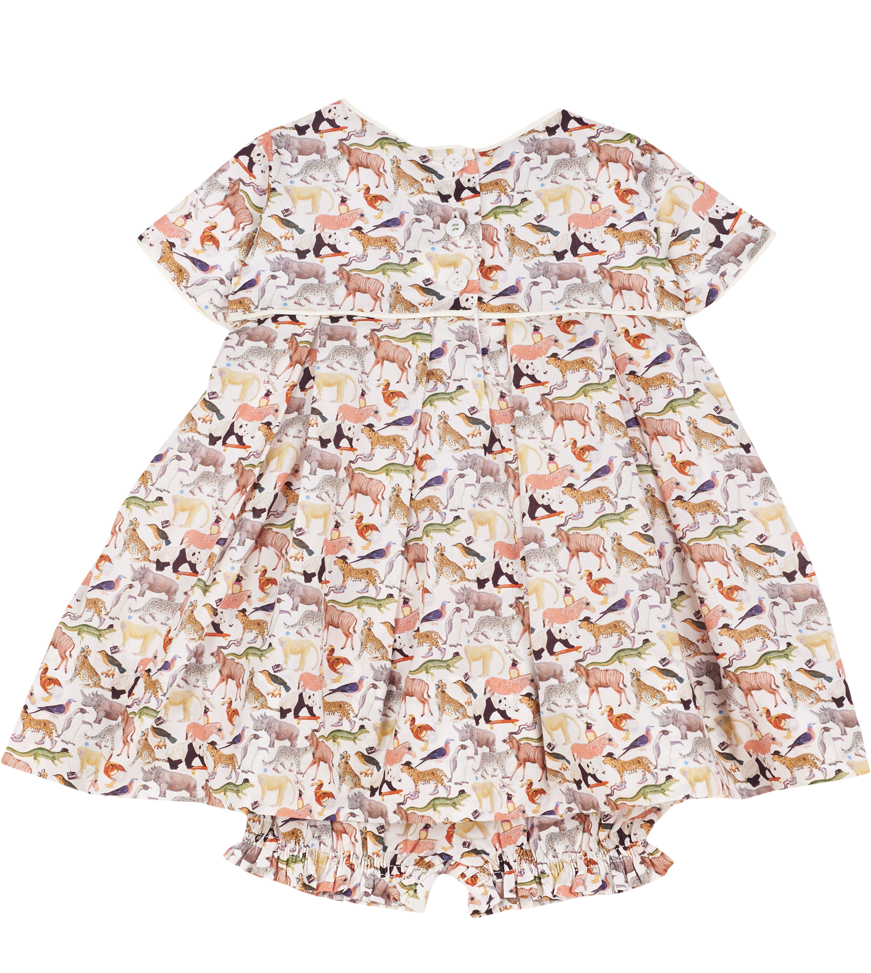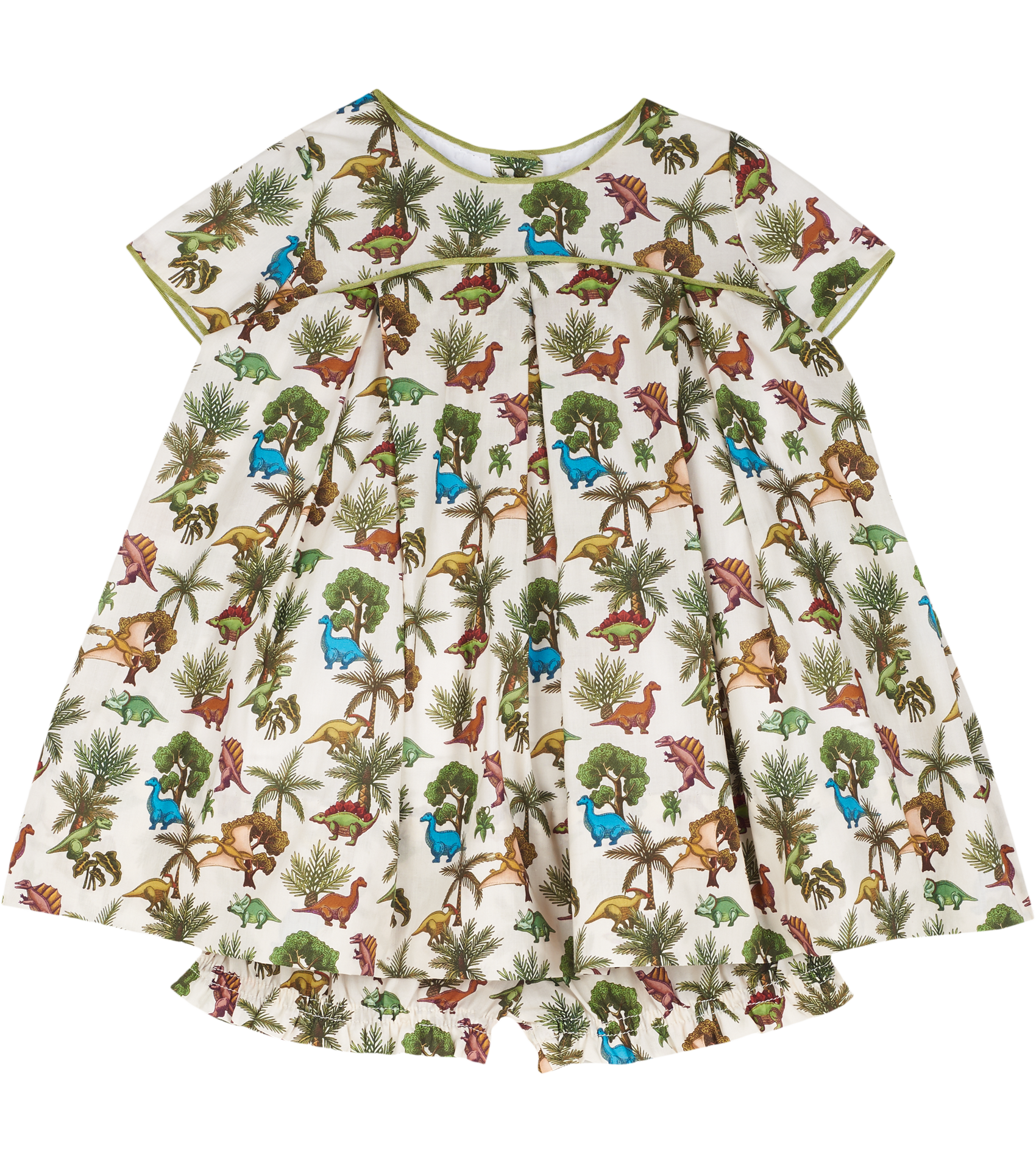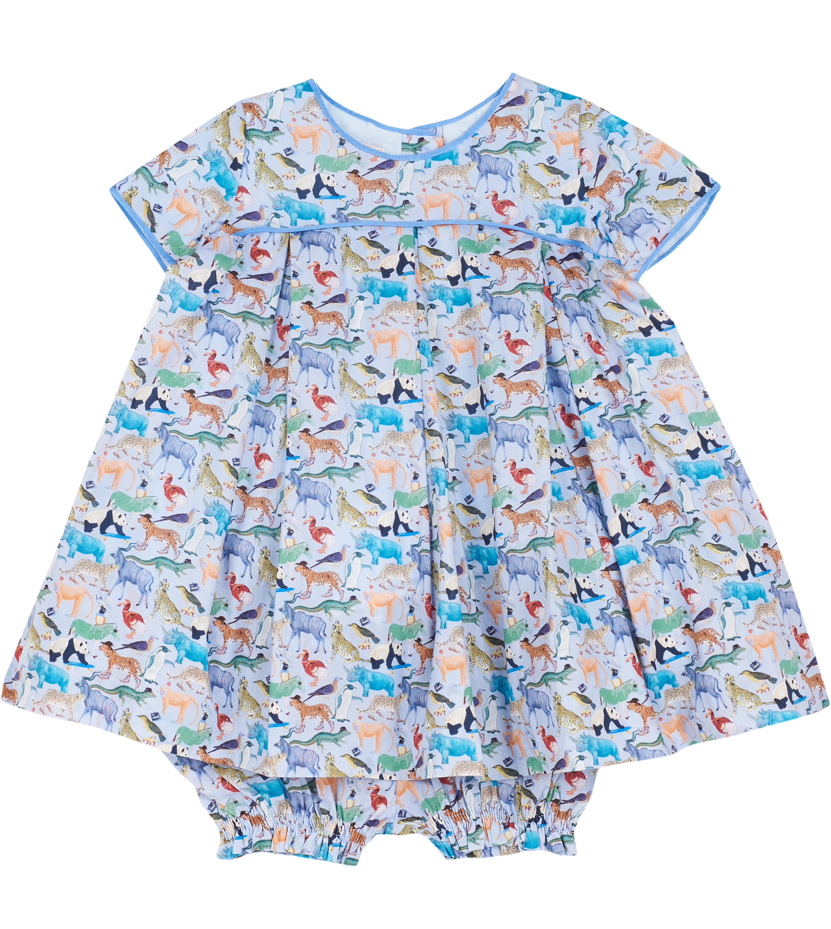 Exquisite baby girl cotton mini-length dress with matching bloomers, perfect for mini summer adventures.
