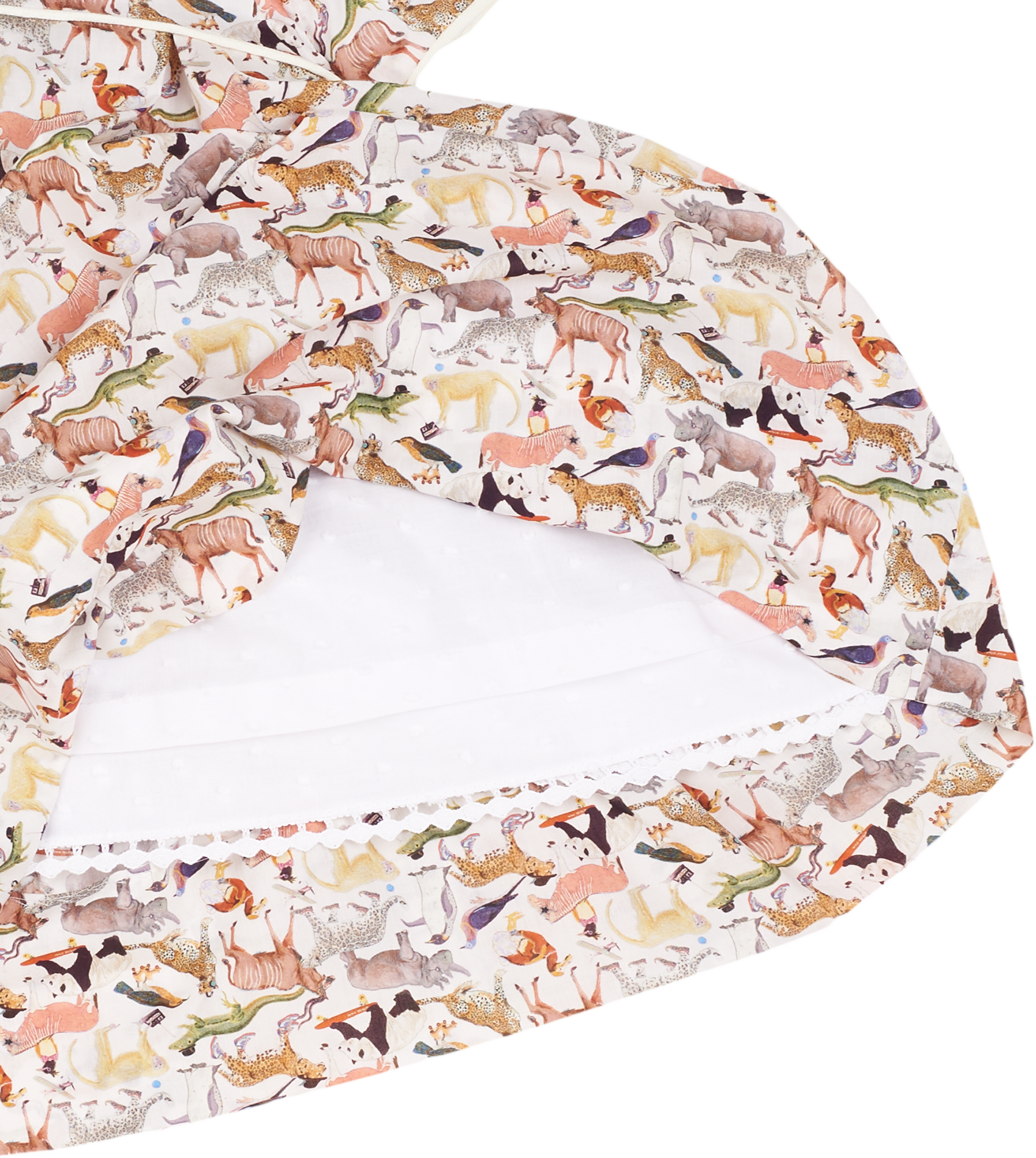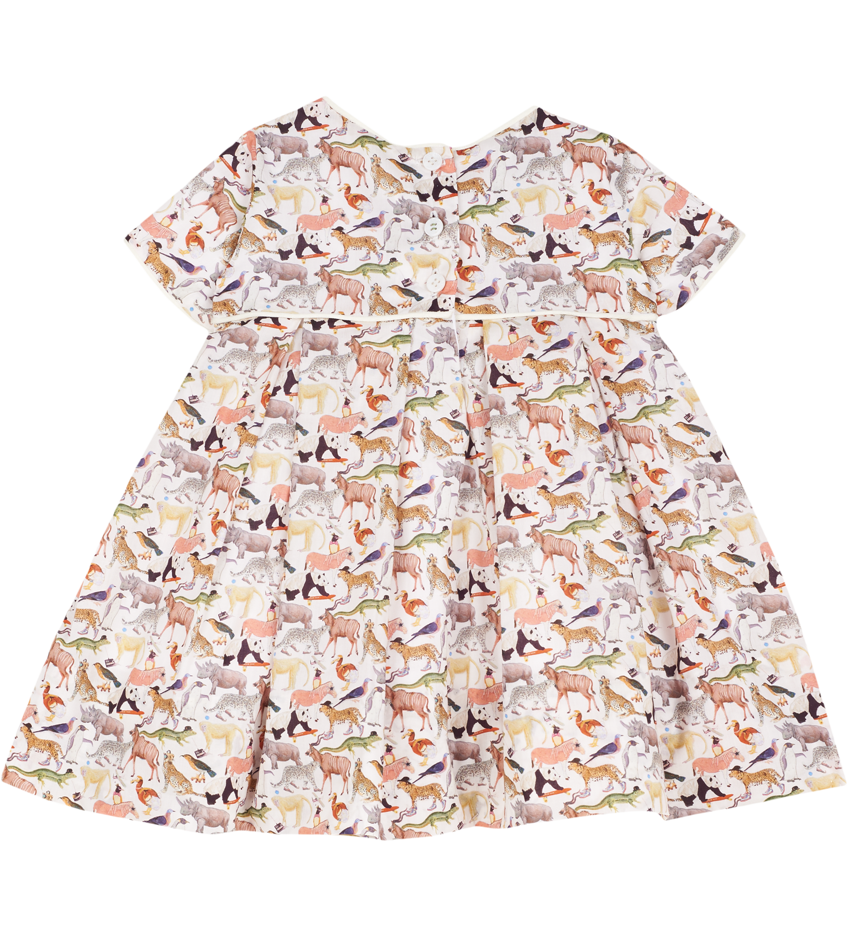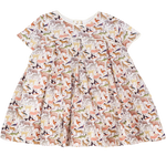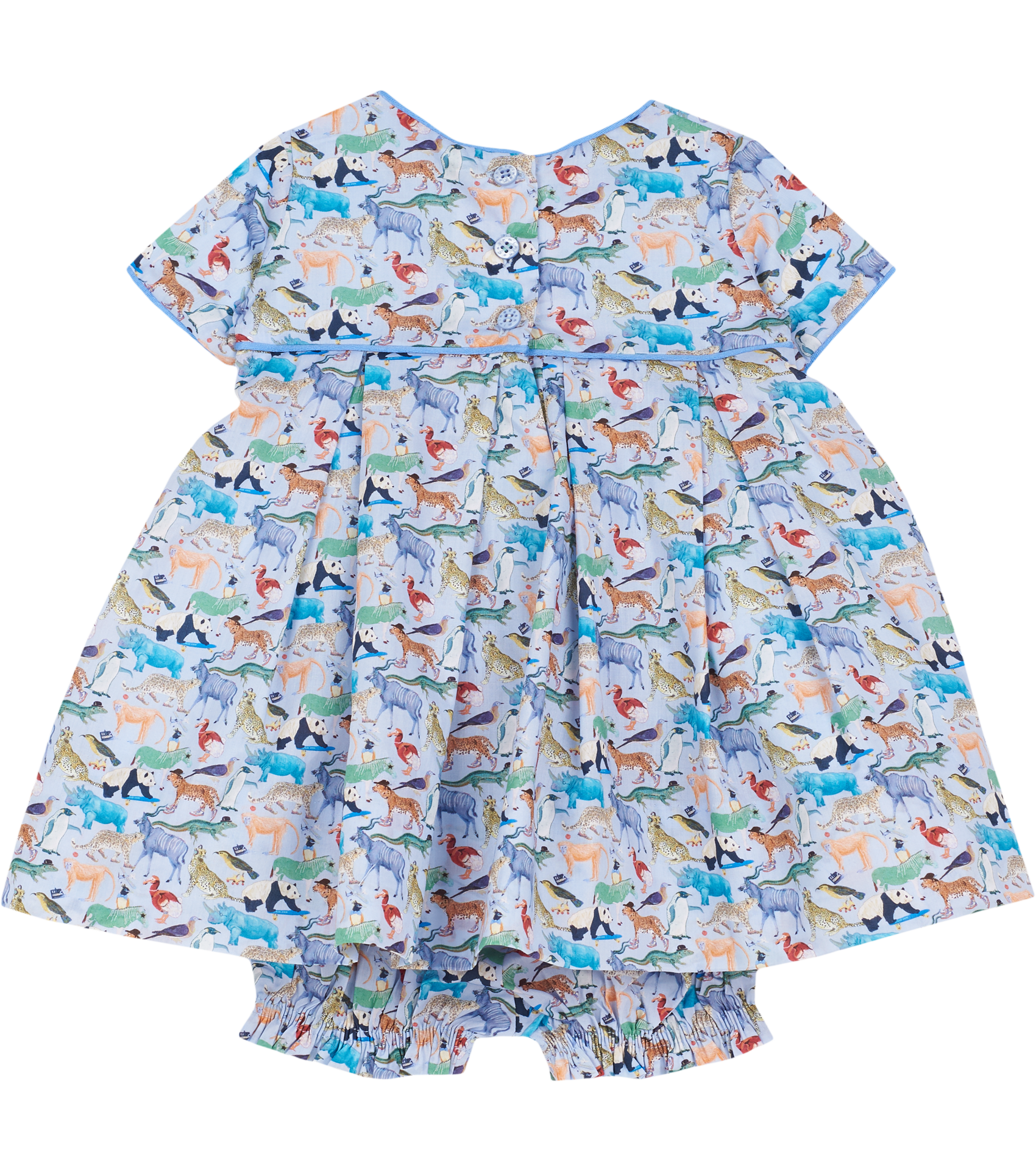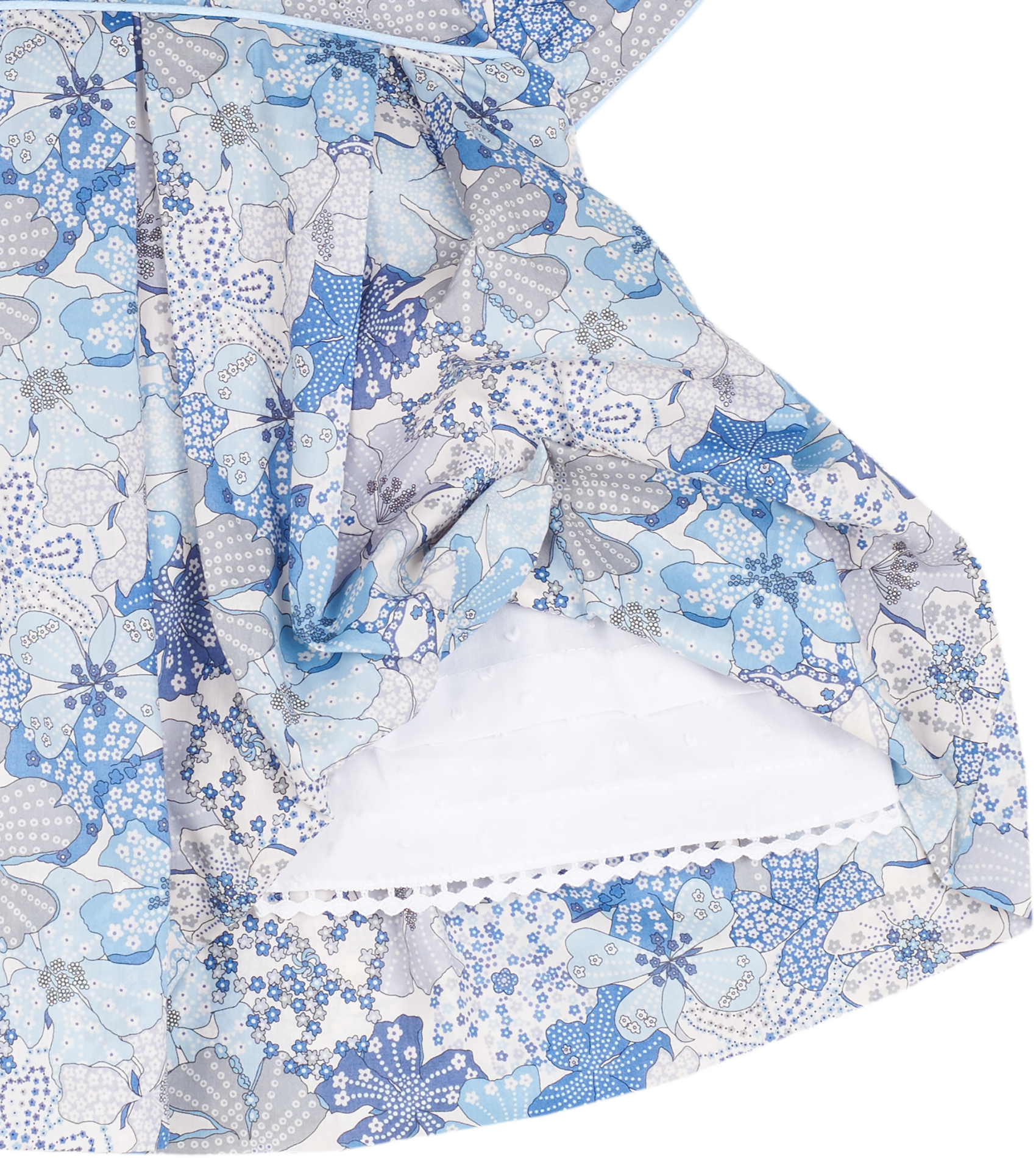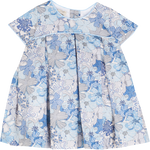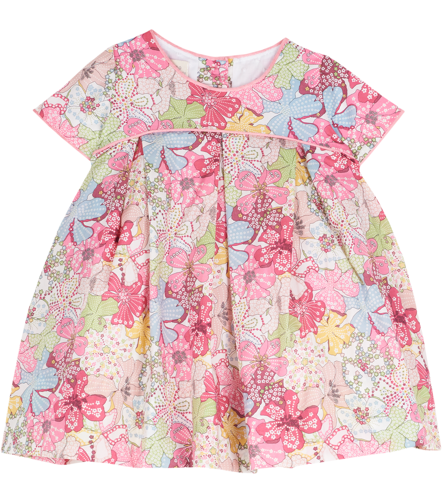 Exquisite baby girl cotton mini-length dress with matching bloomers, perfect for mini summer adventures.