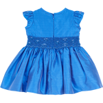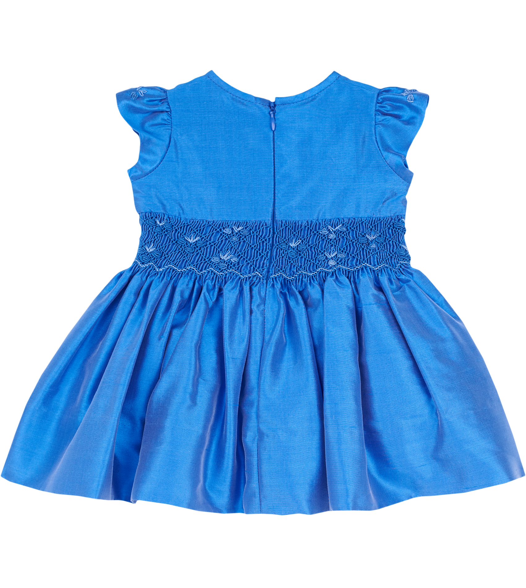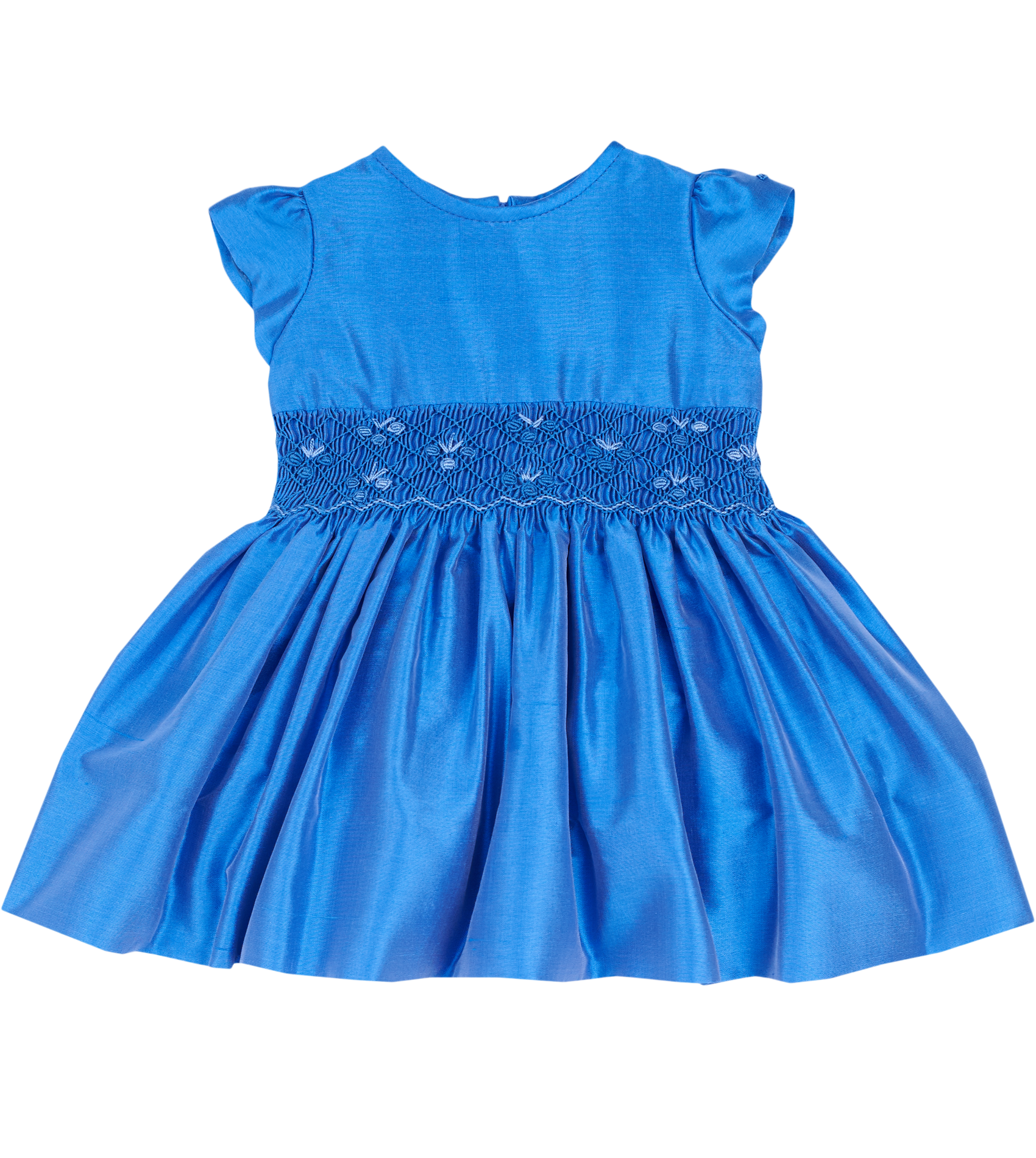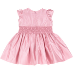 Celebrate her first precious moments in the Lily Rose Baby Dress, a beautifully handcrafted piece made from soft pink silk taffeta. This elegant baby girl dress features front and back smocked and hand-embroidered waist panels, creating a timeless, heirloom-quality look.