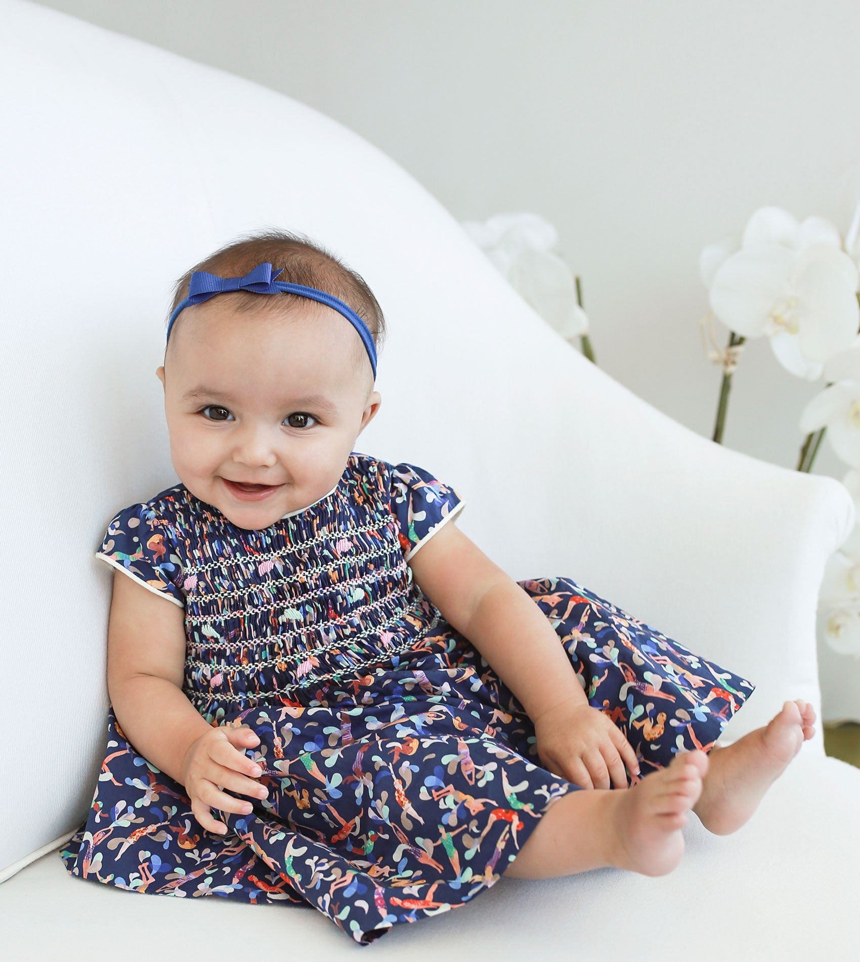 Baby Girl - Rachel Dress – Hand Embroidered Smocked 100% Cotton in Swimmer Print