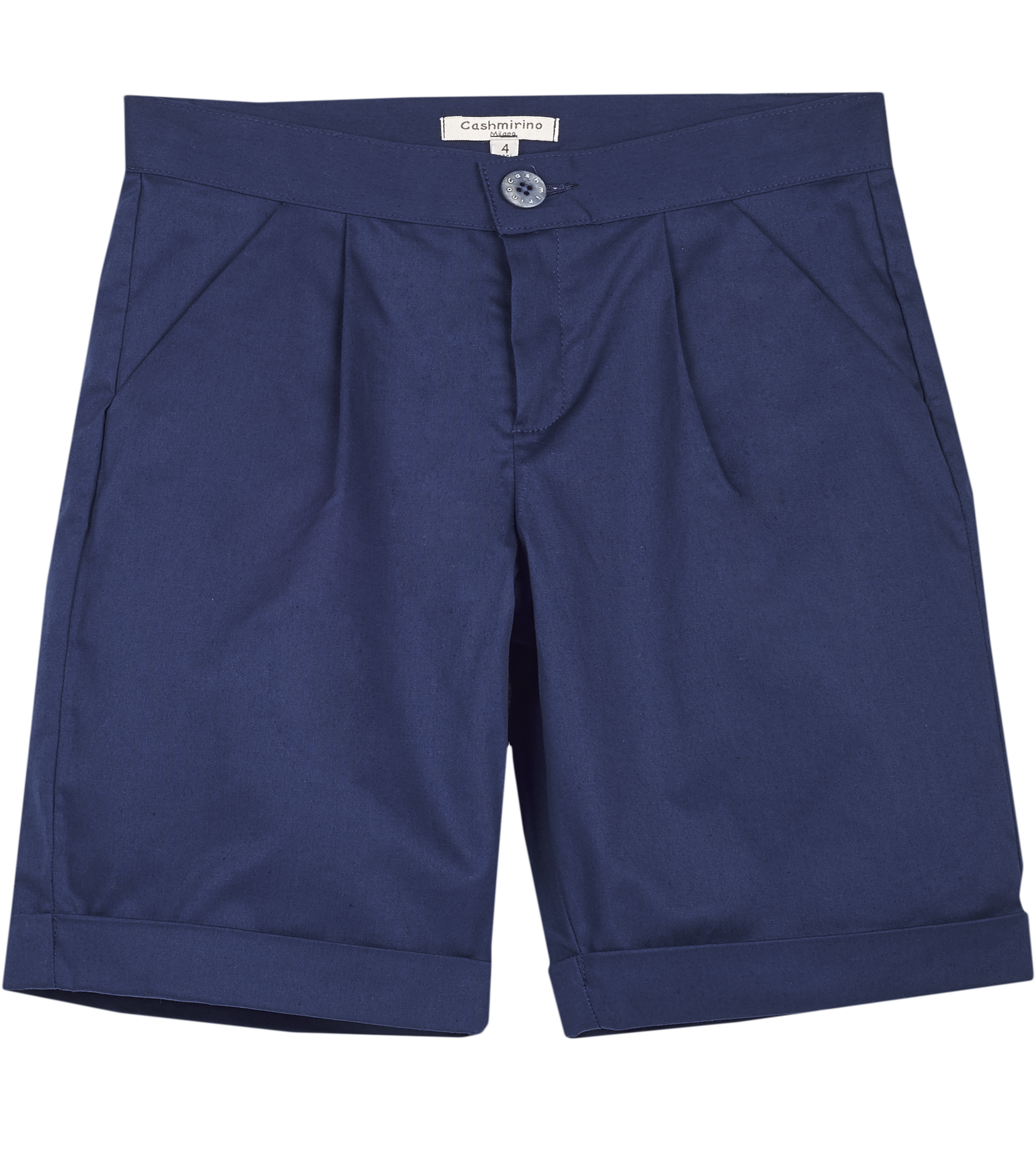 Boy Bermuda shorts made from 100% cotton featuring pleat detail to create a smart look. Featuring two front and back pockets and belt loops, these are ideal for formal occasions during the summer. Button waist and front fly zip fastening.