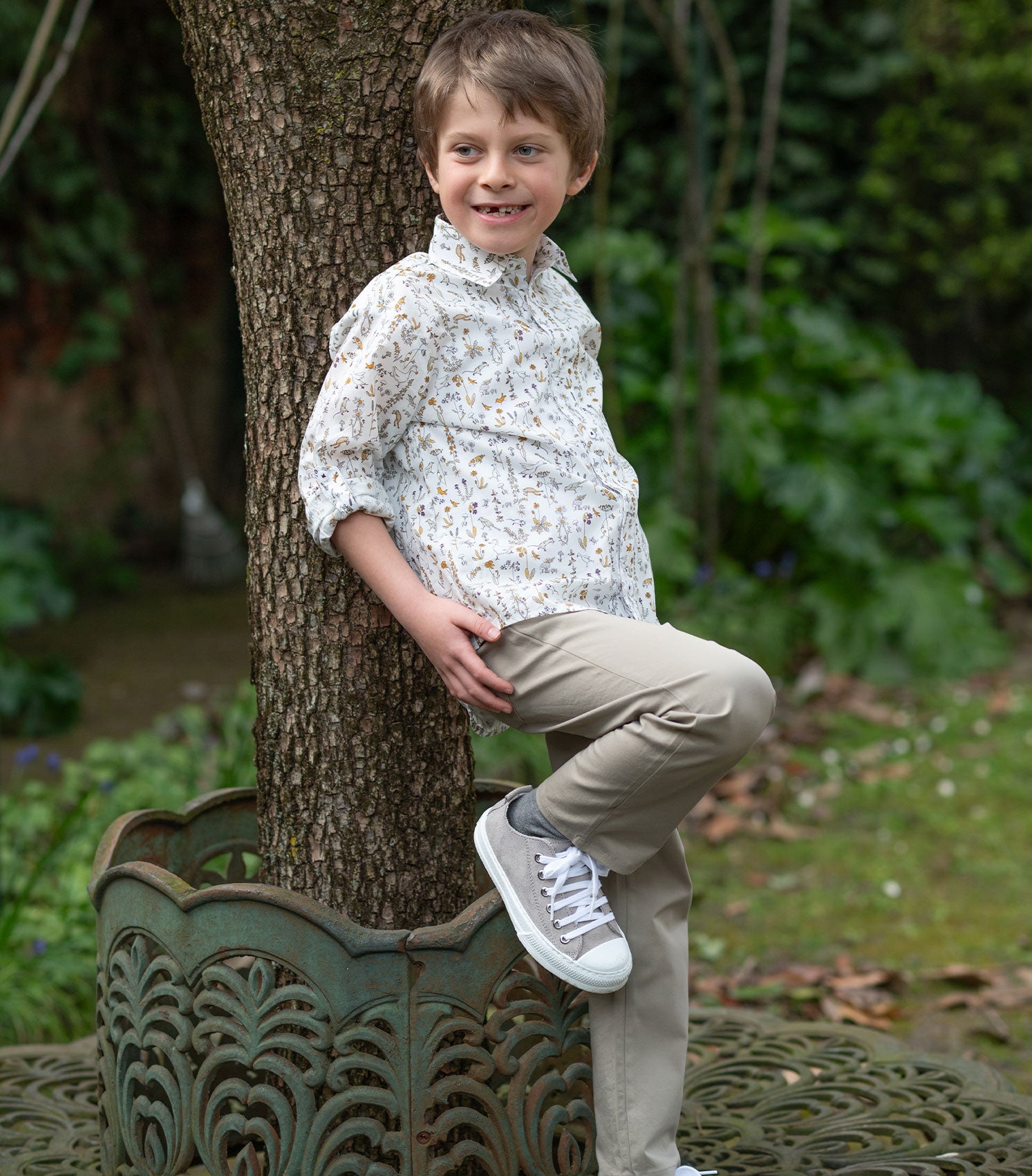Boy - Davide 100% Cotton Classic Shirt in Nature Prints