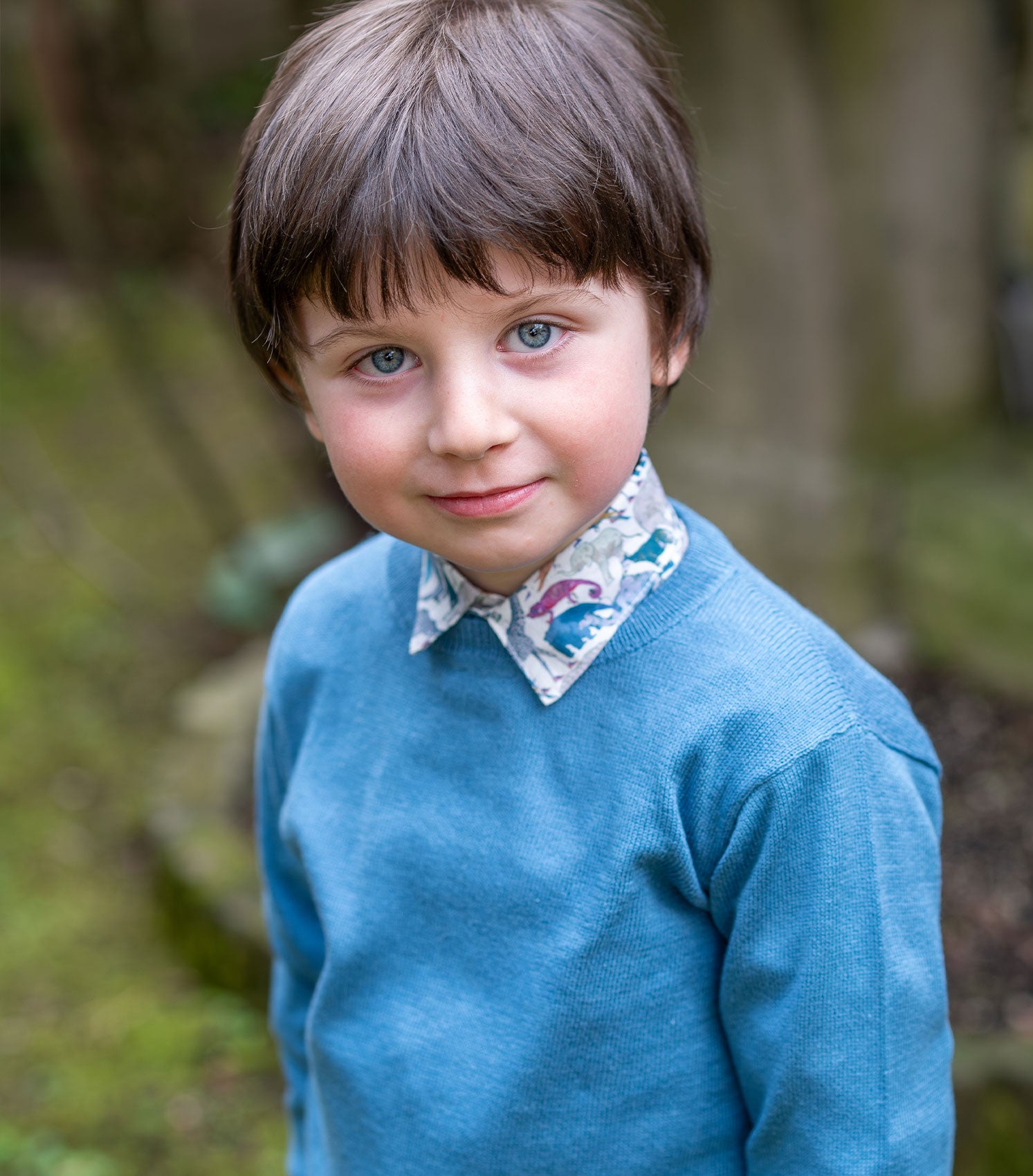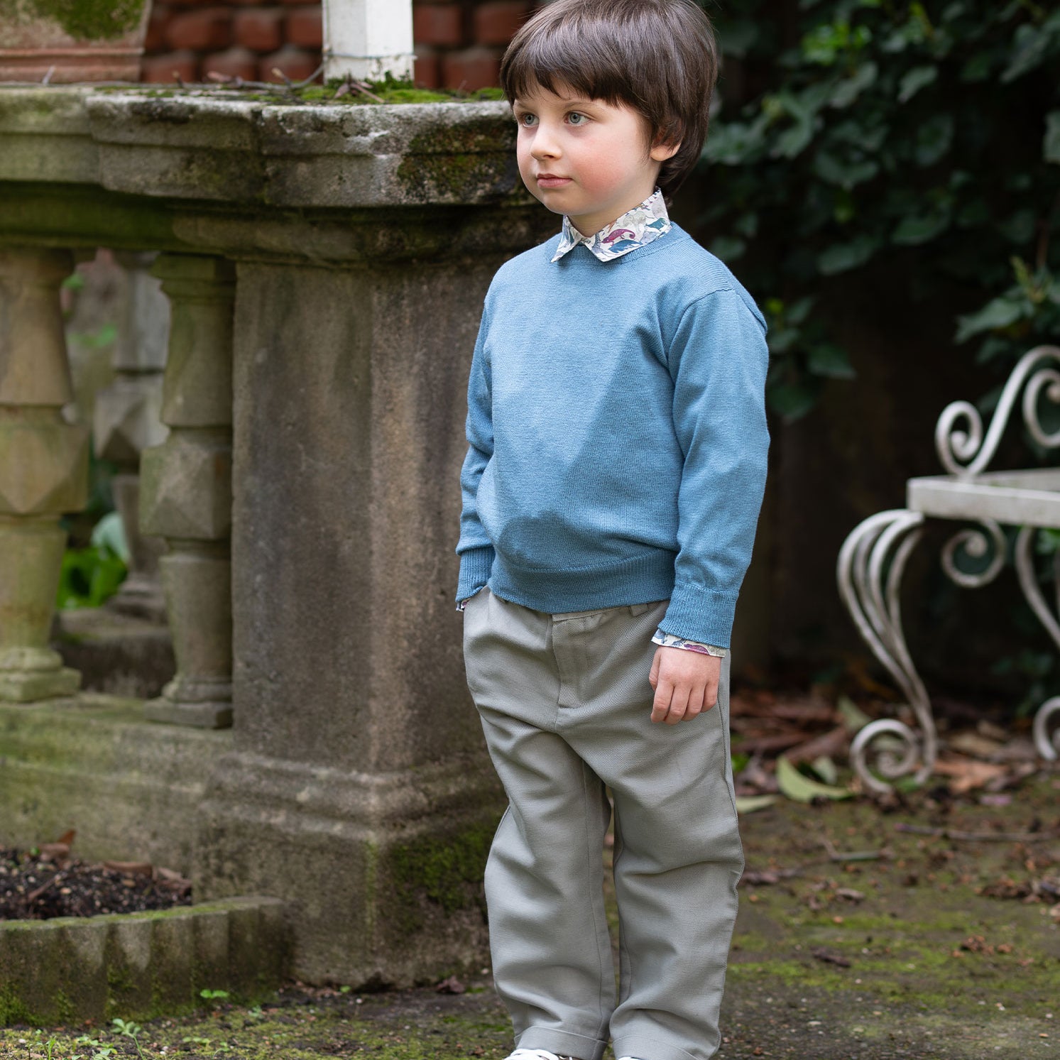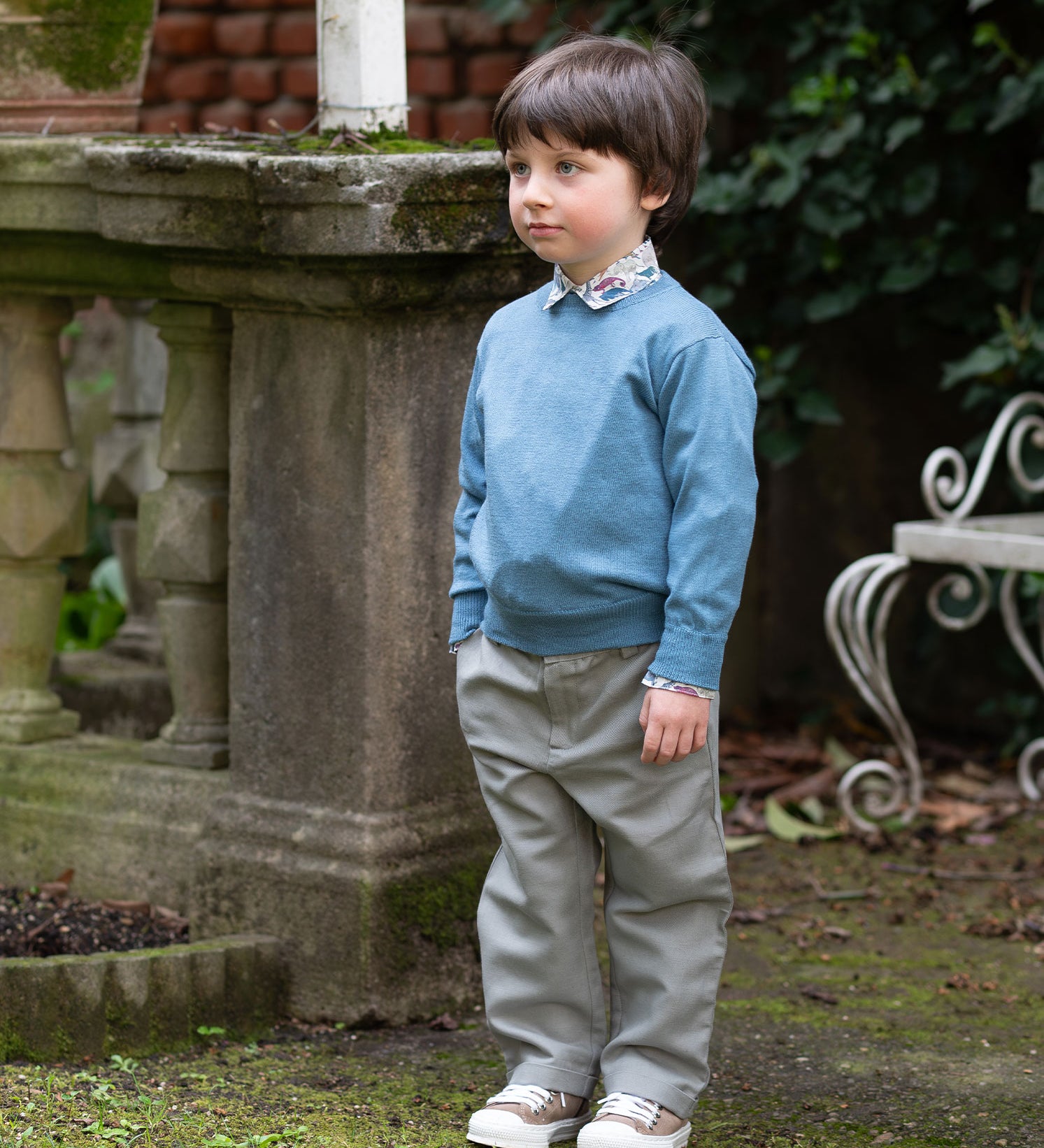 Crafted from super-soft cotton, by our trusted artisans, with love and passion. This lightweight boy jumper can be used in autumn or spring or as a layer in Winter. 70% Pima Cotton and 30% Modal. Contrast internal colour trim on collar, cuffs, and waist.