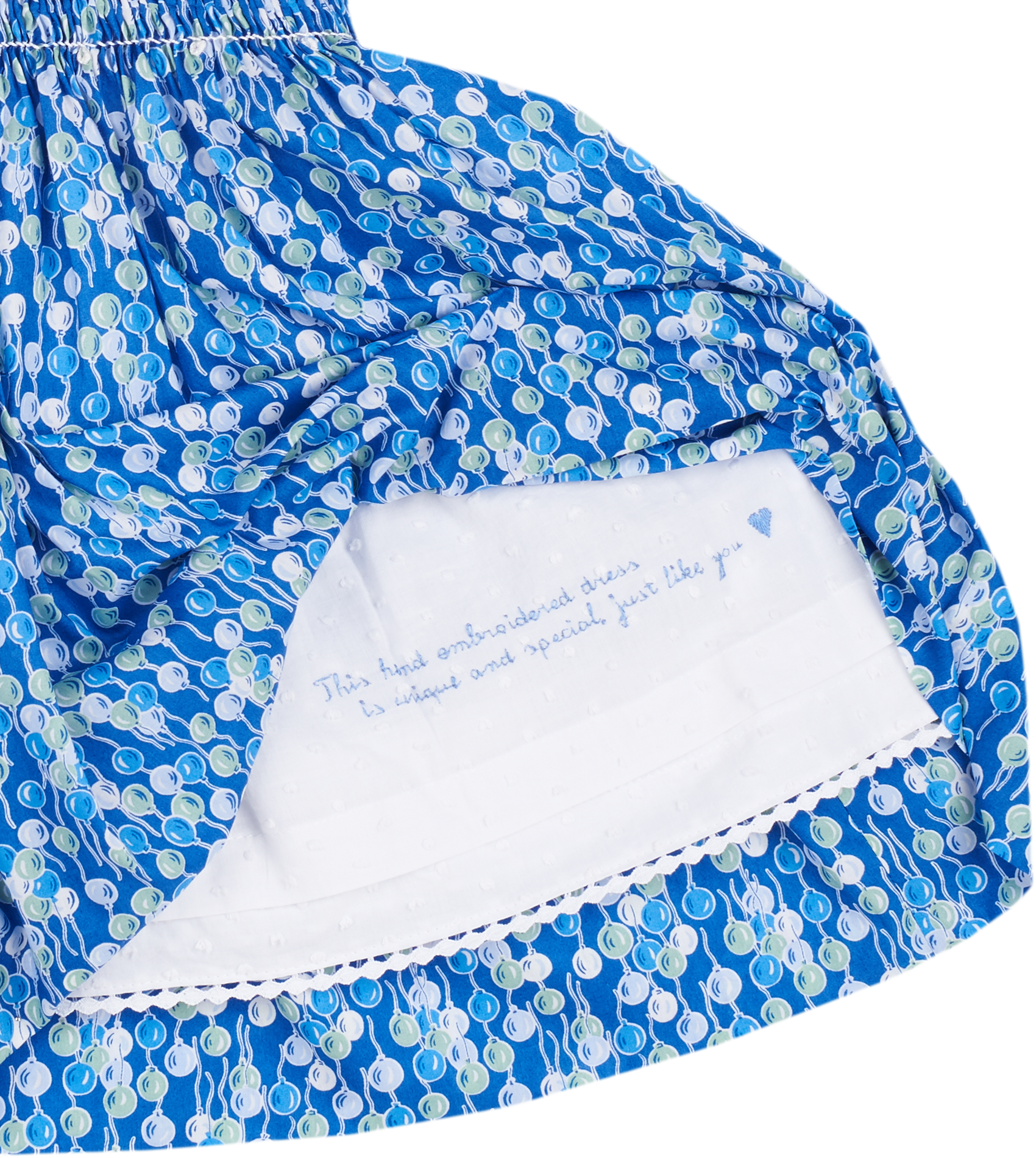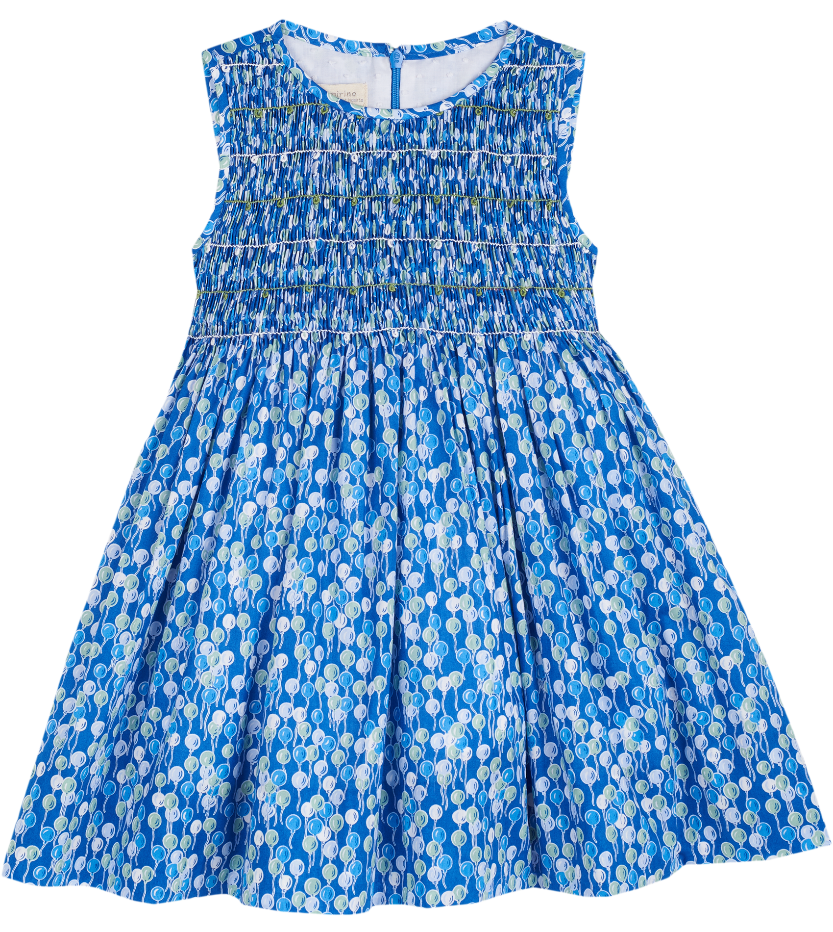 The Alexandra Dress is a beautifully crafted piece designed to celebrate timeless elegance and thoughtful details. Made from 100% cotton for a soft and breathable feel, this dress features exquisite hand-smocking and a delicate all-over print in vibrant blue tones. The sleeveless design ensures comfort, while the full skirt allows graceful movement.