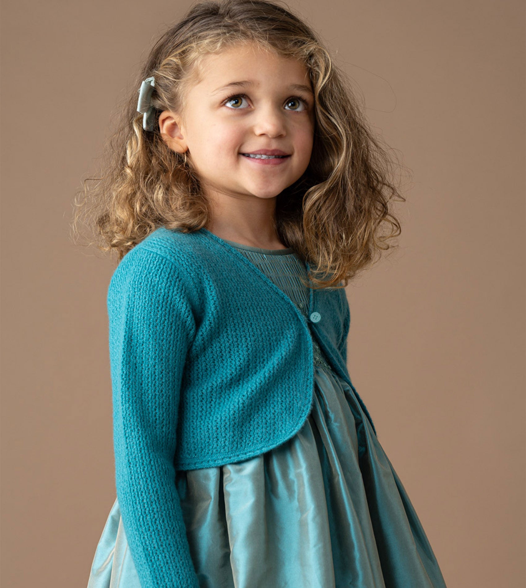 The Brielle Shrug, crafted from 100% cashmere, is a beautiful and versatile addition to any little girl’s wardrobe.