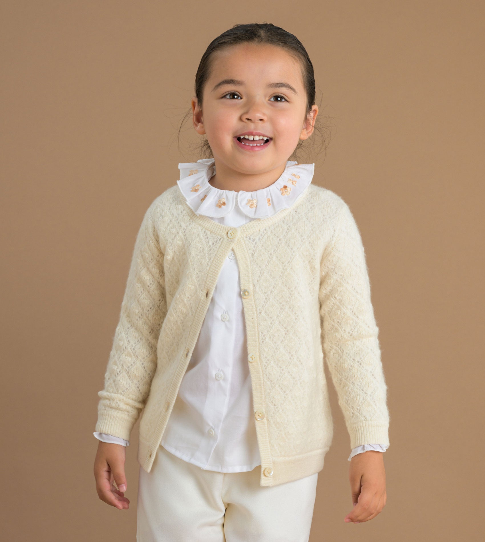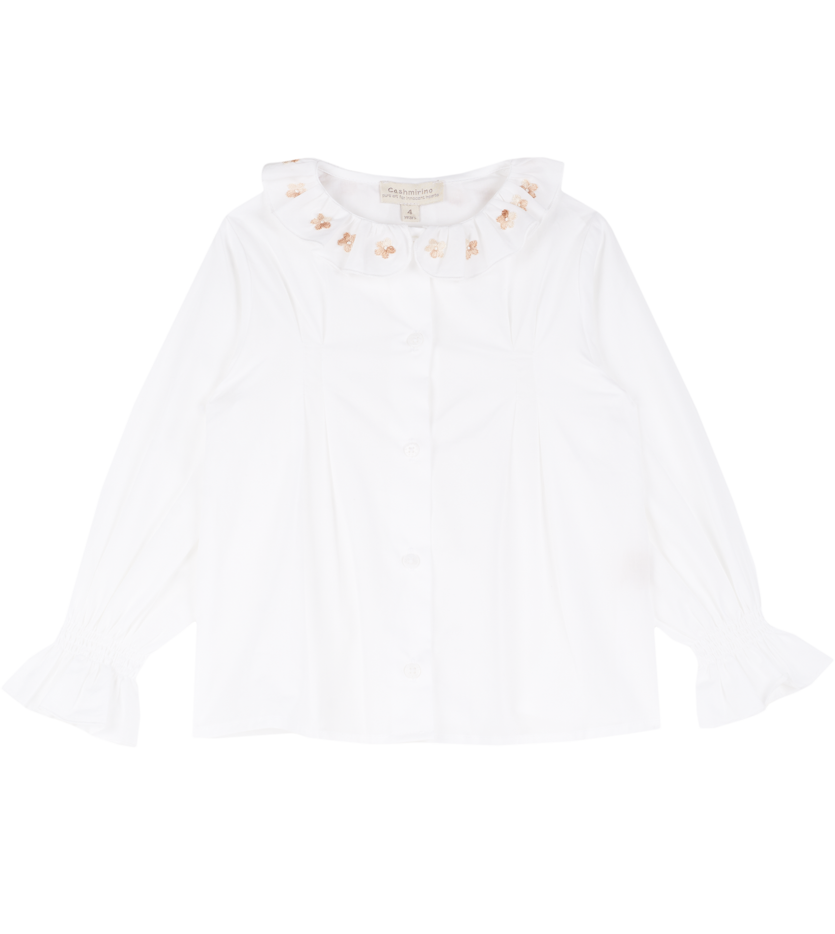 • Delicate, hand-embroidered flowers adorn the collar, adding a unique, artisanal touch