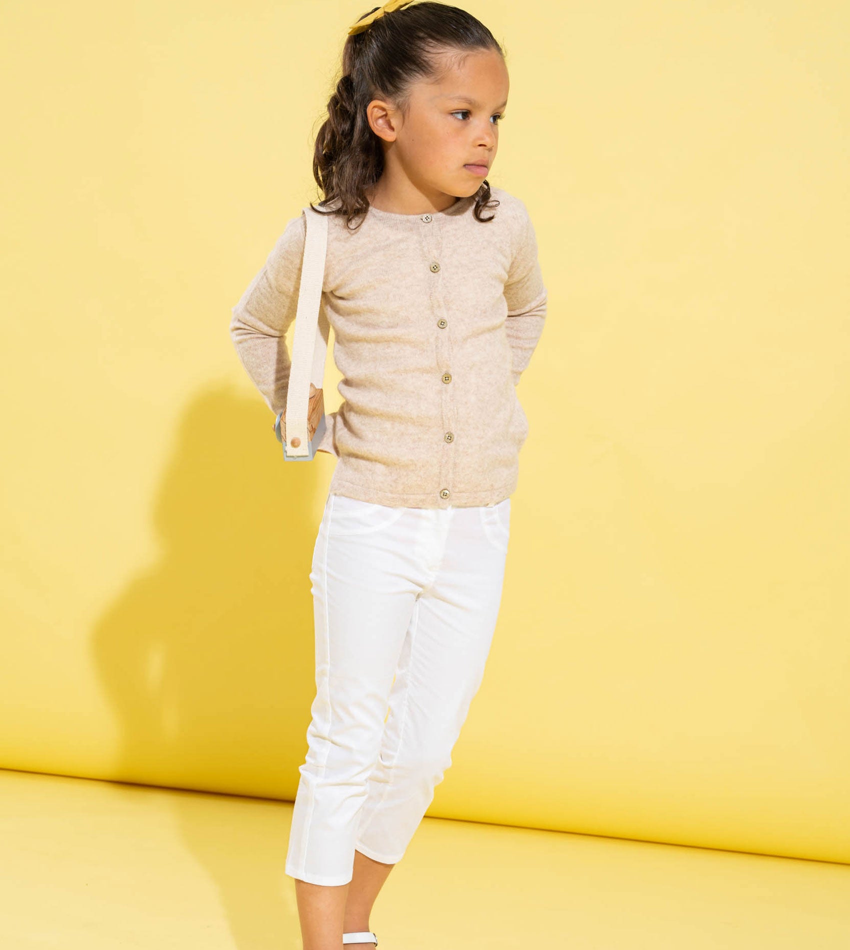 The Girls’ Cashmere Cardigan is a beautifully refined piece, designed to keep your little one cosy in every season. Knitted from 100% lightweight cashmere, it offers the perfect balance of warmth and breathability, making it ideal for layering in winter or wearing on its own in autumn and spring.