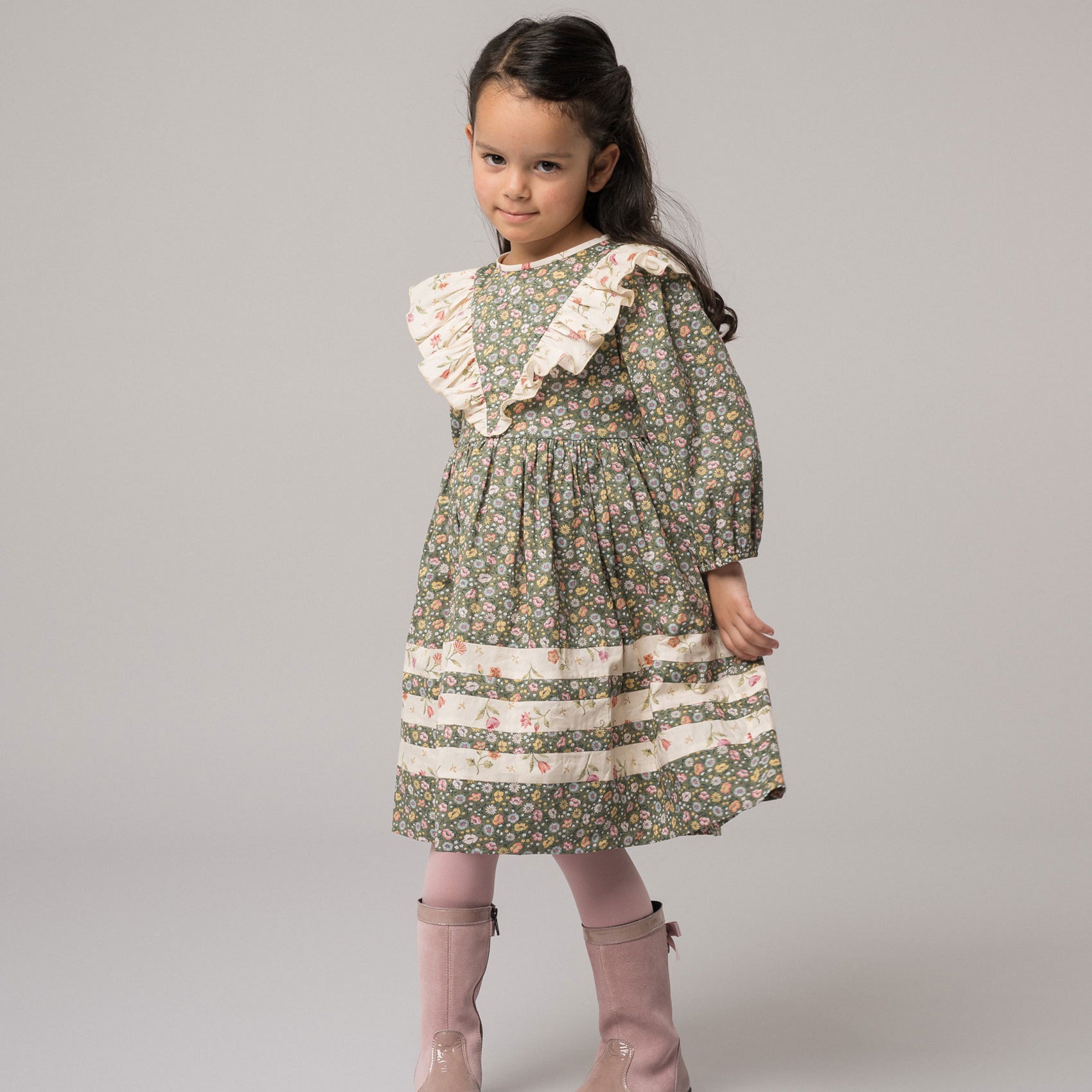 The Maila dress seamlessly blends the luxurious feel of Liberty fabric with exquisite details, making it an effortlessly chic choice for any occasion—from daytime outings to elegant evening gatherings. Designed with a tailored silhouette and graceful long sleeves, it exudes both timeless sophistication and modern charm. The contrast binding at the neckline adds a refined touch, while delicate gathered ruffles bring a soft, feminine allure.