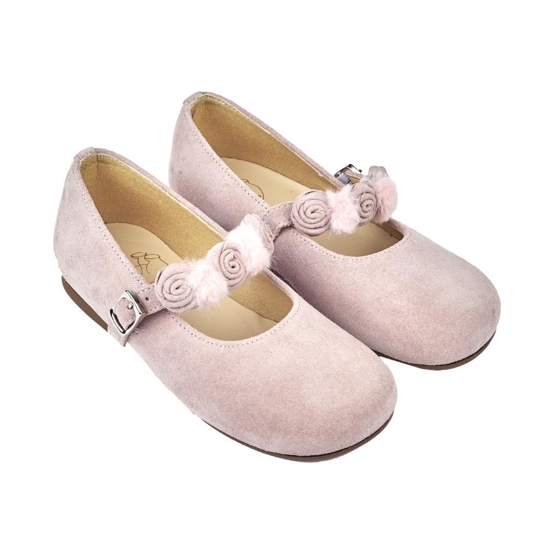 Lana Girl – Suede Ballerinas with Floral Pom-Pom Straps – Cashmirino
