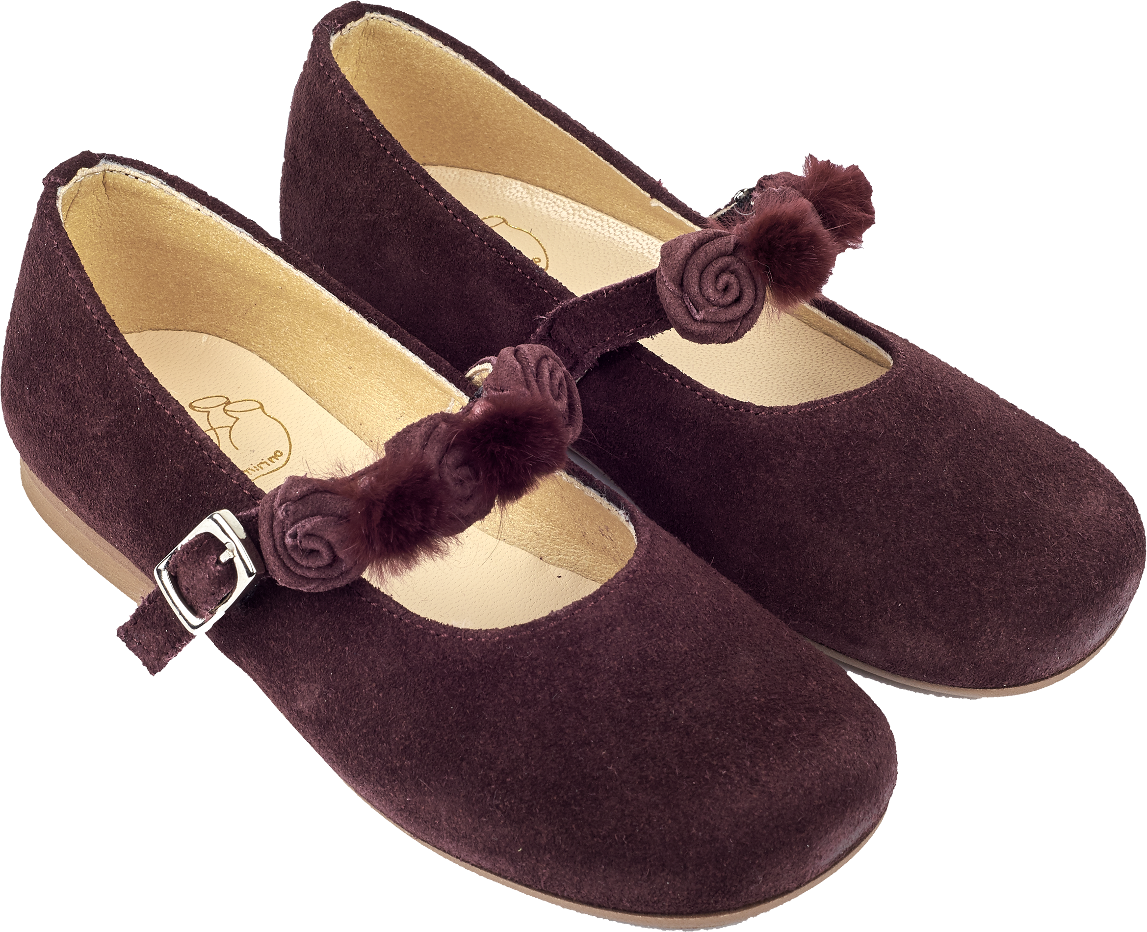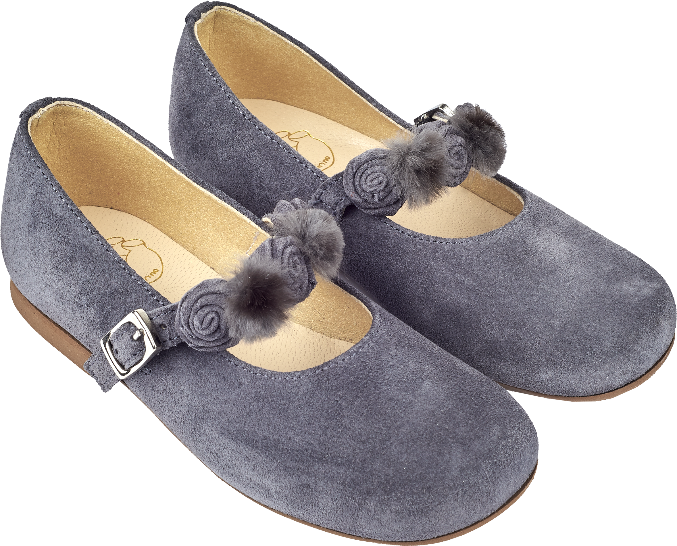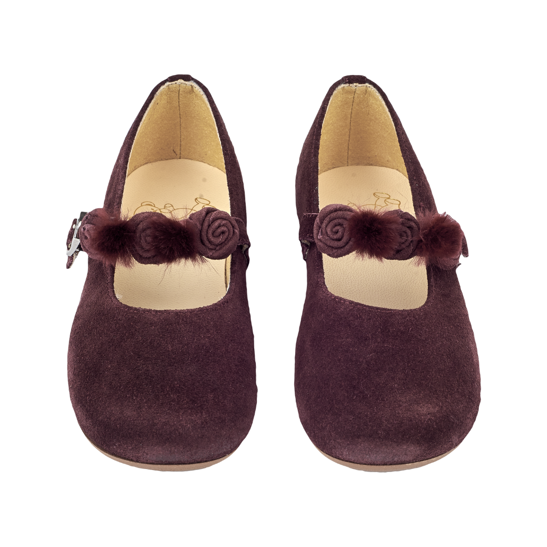 Add a touch of charm to any special occasion with these adorable suede ballerina shoes. Designed with soft suede uppers, playful floral and pom-pom buckled straps, and cushioned leather insoles for lasting comfort. Finished with durable rubber soles—perfect for twirling like a princess all day long.
