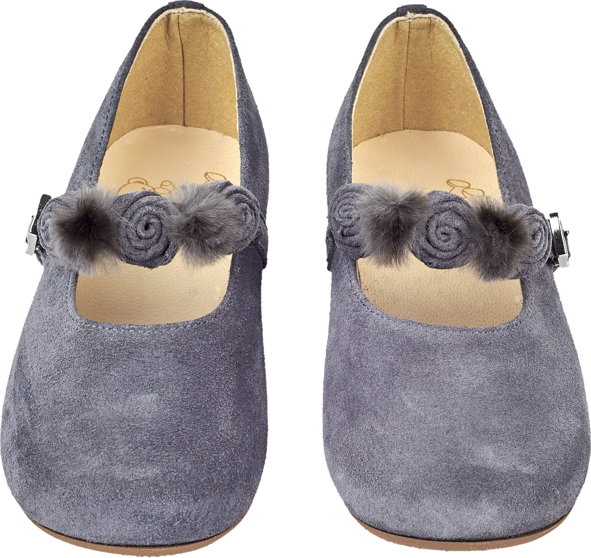 Lana Girl – Suede Ballerinas with Floral Pom-Pom Straps