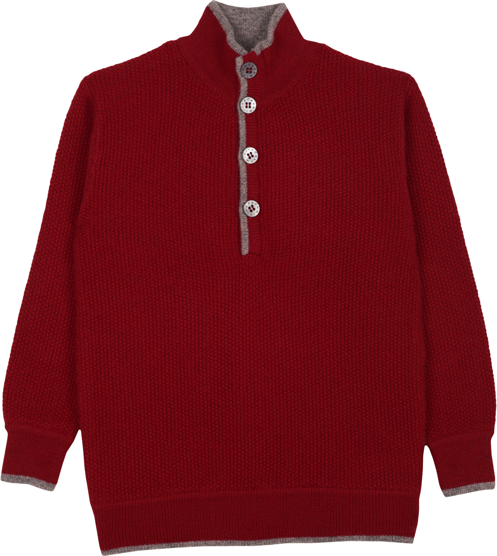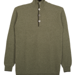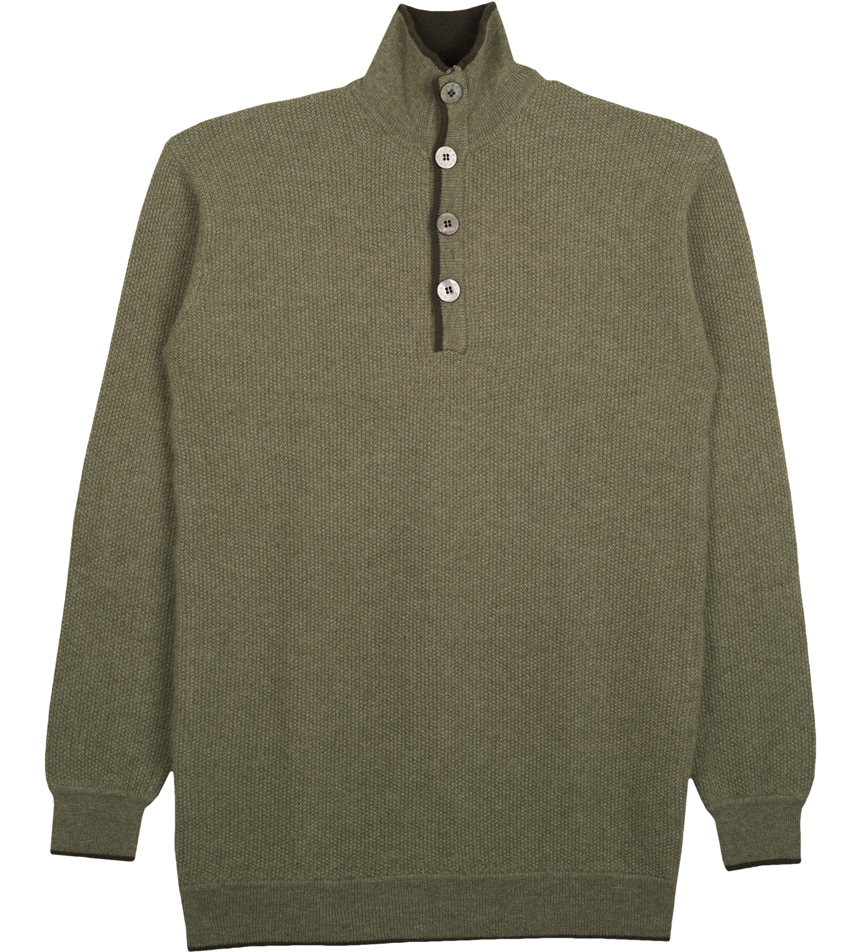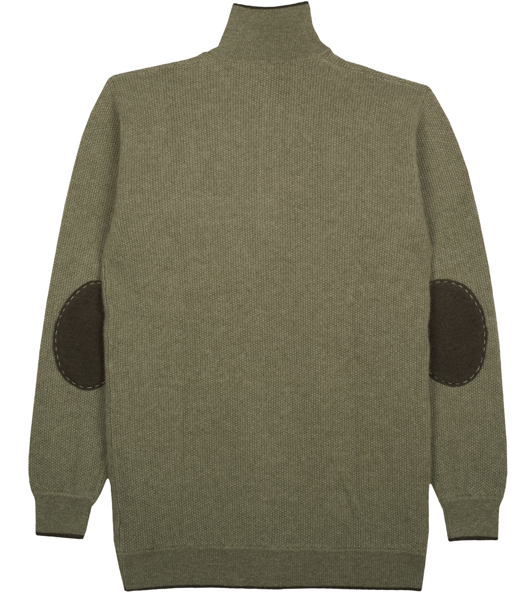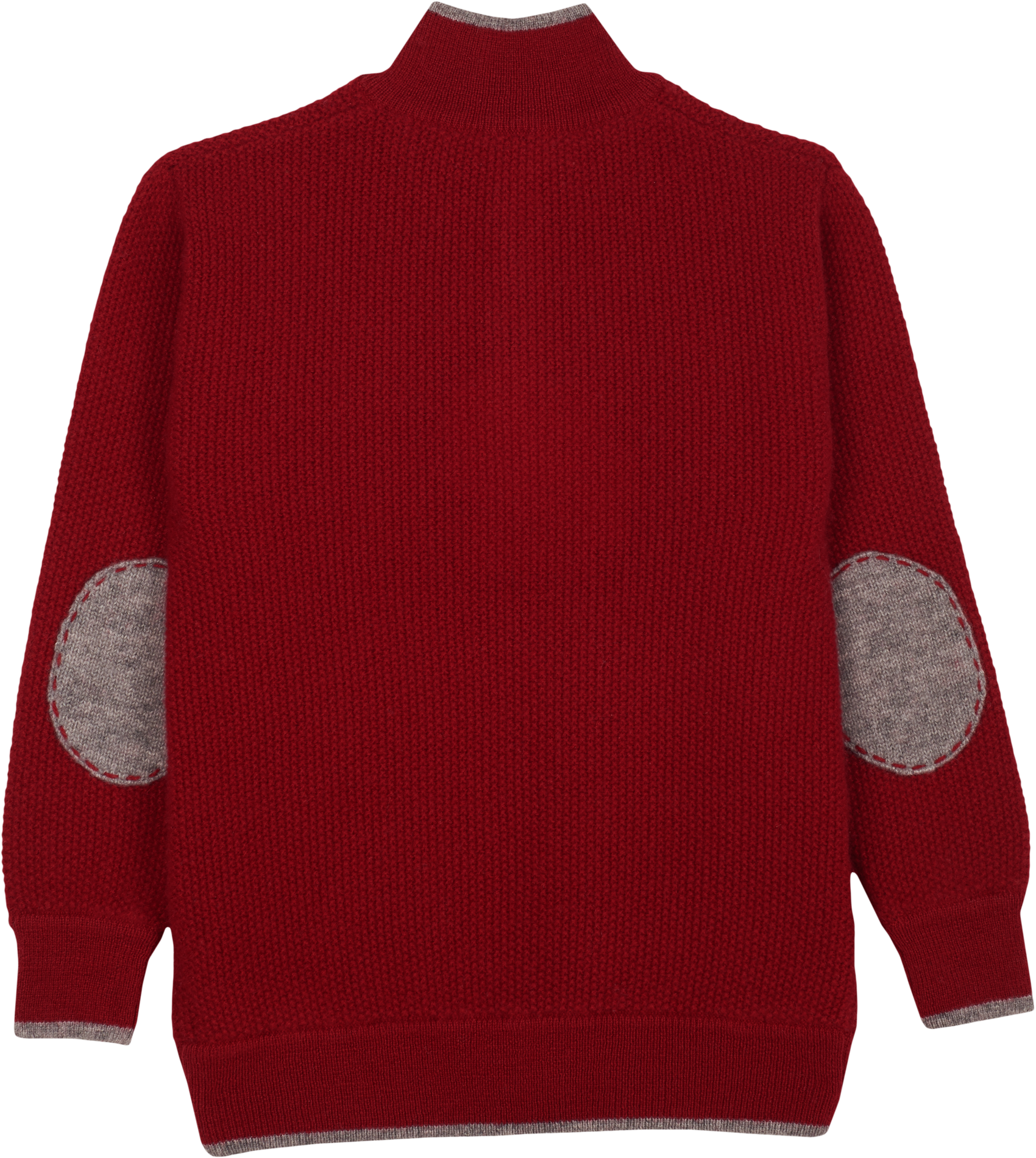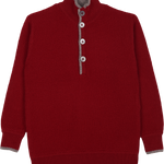Designed with a gently structured high neck, it features subtle contrast border detailing, long sleeves with signature elbow patches, and a half button-down front. Effortlessly elegant, it offers a timeless silhouette suited to both relaxed and more polished moments.