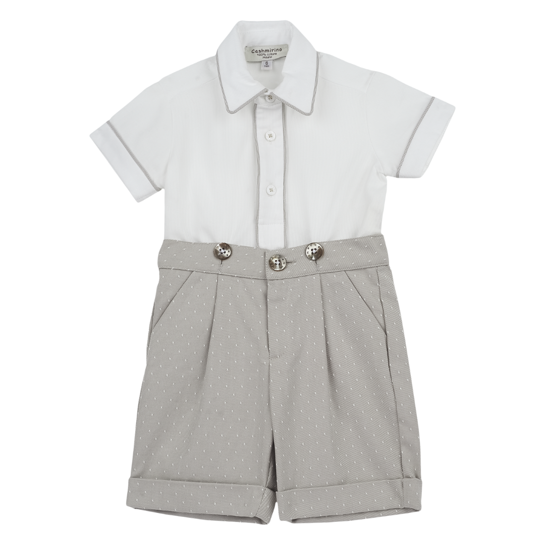 Crafted with care for comfort and timeless style, this elegant baby boy outfit features a breathable cotton short-sleeve shirt with a classic collar, paired with smart cotton Bermuda shorts. Designed to let little ones move freely while looking impeccably dressed, this set is ideal for warm-weather occasions, family gatherings, or everyday elegance.