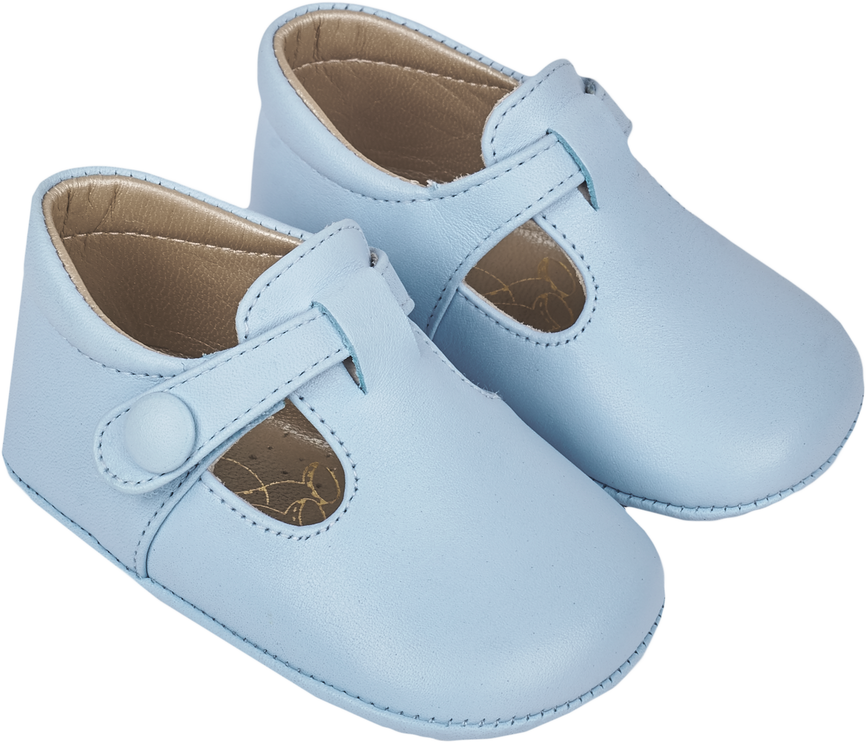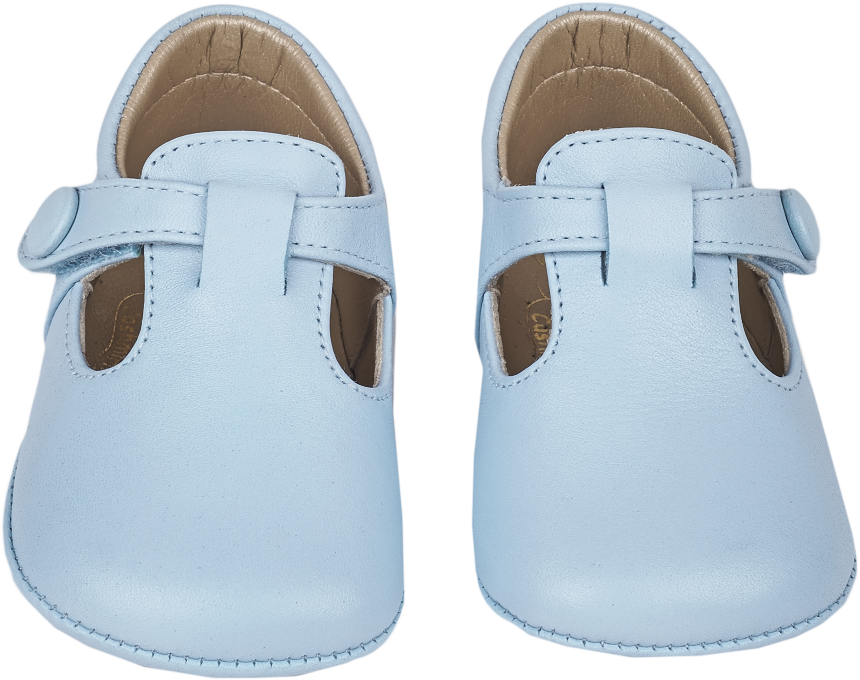 A pair of baby boy crawling shoes made from 100% leather featuring cut out inserts, button detail and a velcro strap.