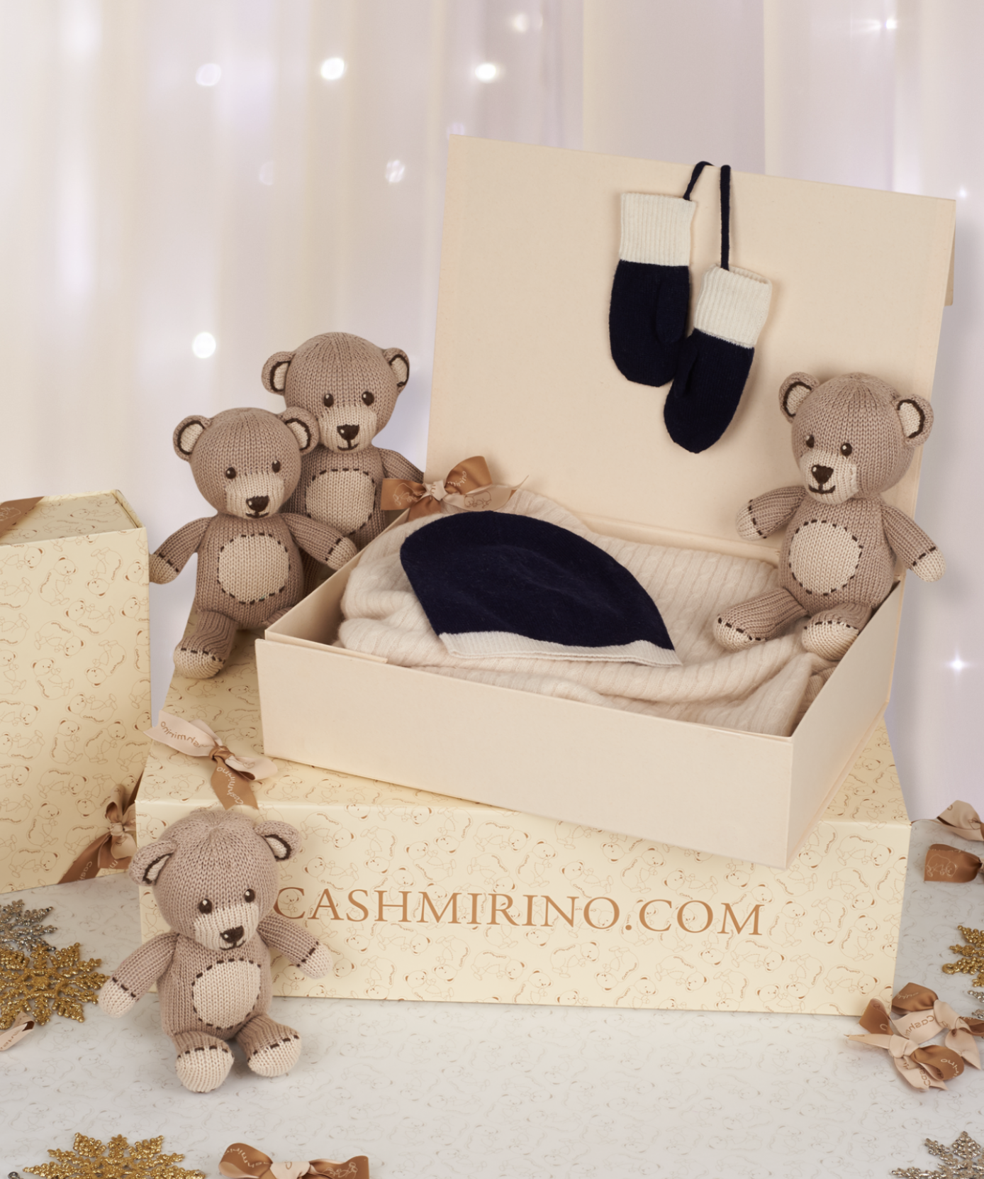 Wrap your little one in pure luxury this festive season. Our Baby Cashmere Gift Set includes a beautifully soft hat and mittens—expertly knitted from the finest pure cashmere to keep newborns and babies warm from head to tiny toes.
