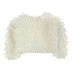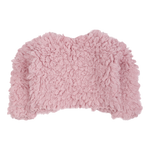 Elevate your little one’s outfit with this stylish baby girl shrug, exquisitely crafted from 100% cashmere. Featuring long sleeves and an open-front design, this piece combines luxury with modern flair. The distinctive bouclé texture on the front and back offers a soft, shaggy, fur-like finish—adding both warmth and a fashion-forward edge.