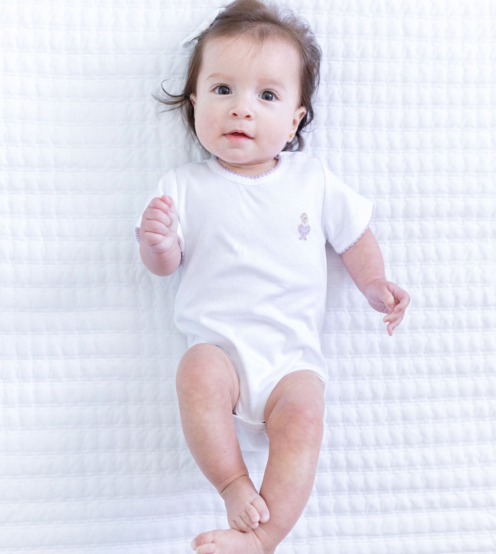 Baby Girl - Chota Pima Cotton Bodysuit with Hand-Embroidered Bear and – Cashmirino