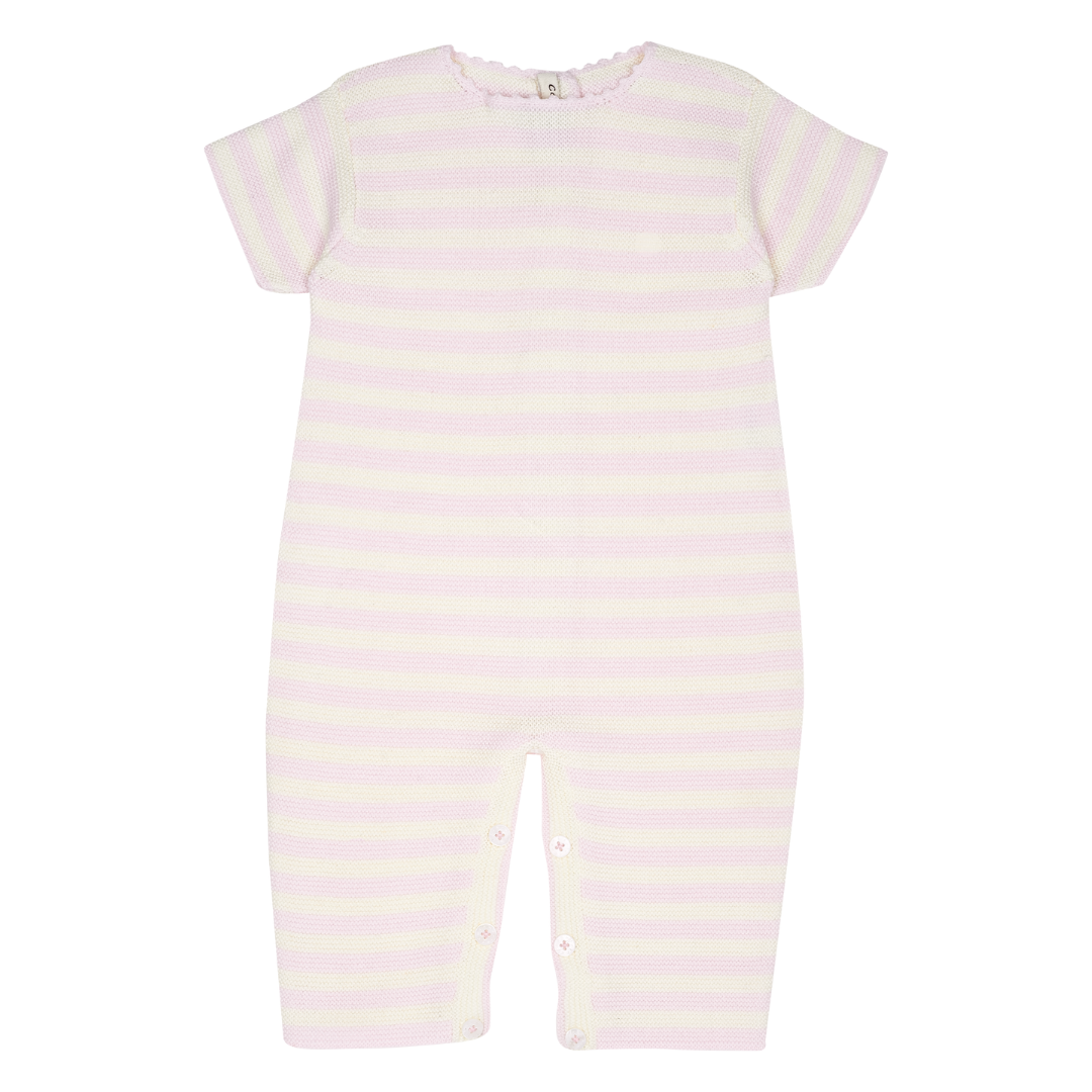 Featuring short sleeves, classic candy stripes, and practical button fastenings, this romper is as charming as it is practical.