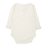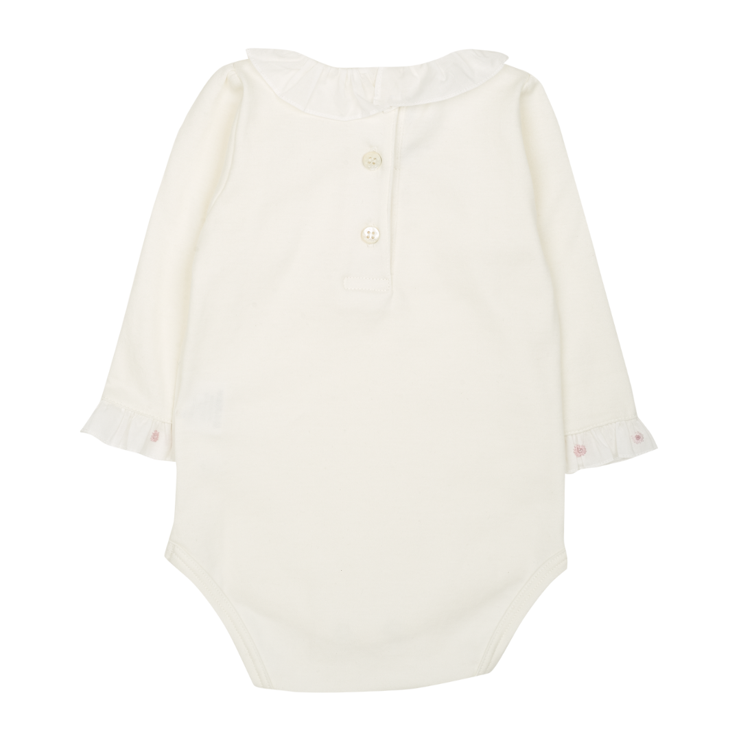 Baby Girl - Margherita Long-Sleeved Cotton Bodysuit with Ruffle Trim and Hand Embroidery