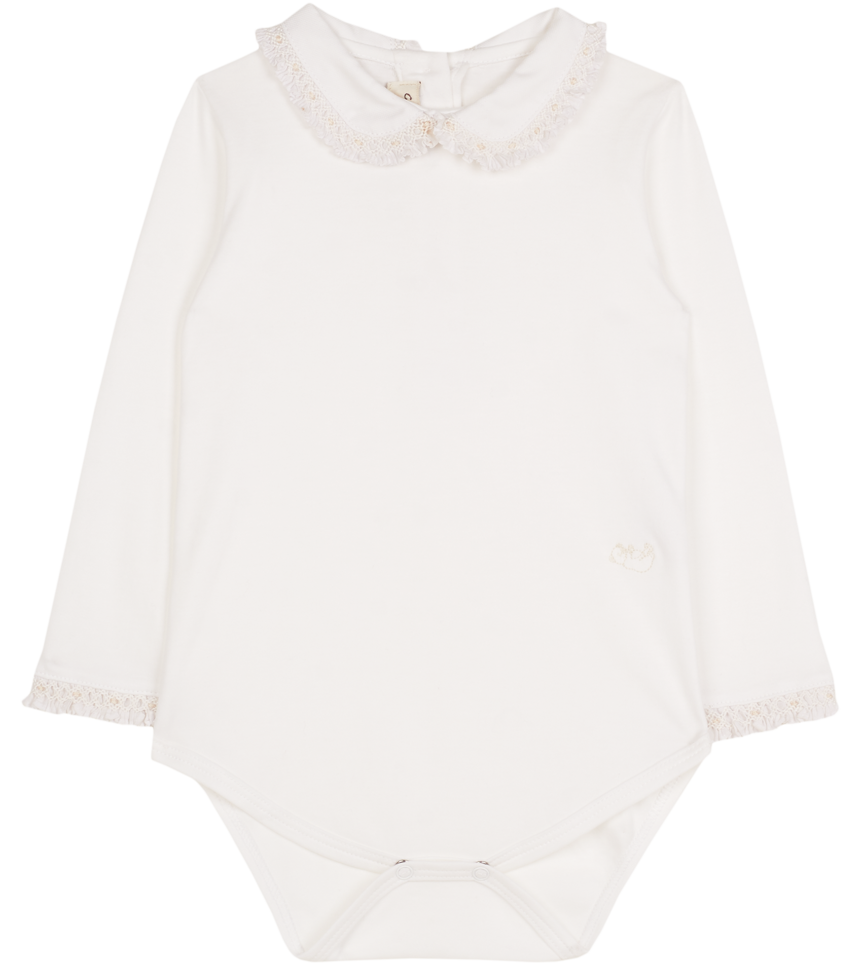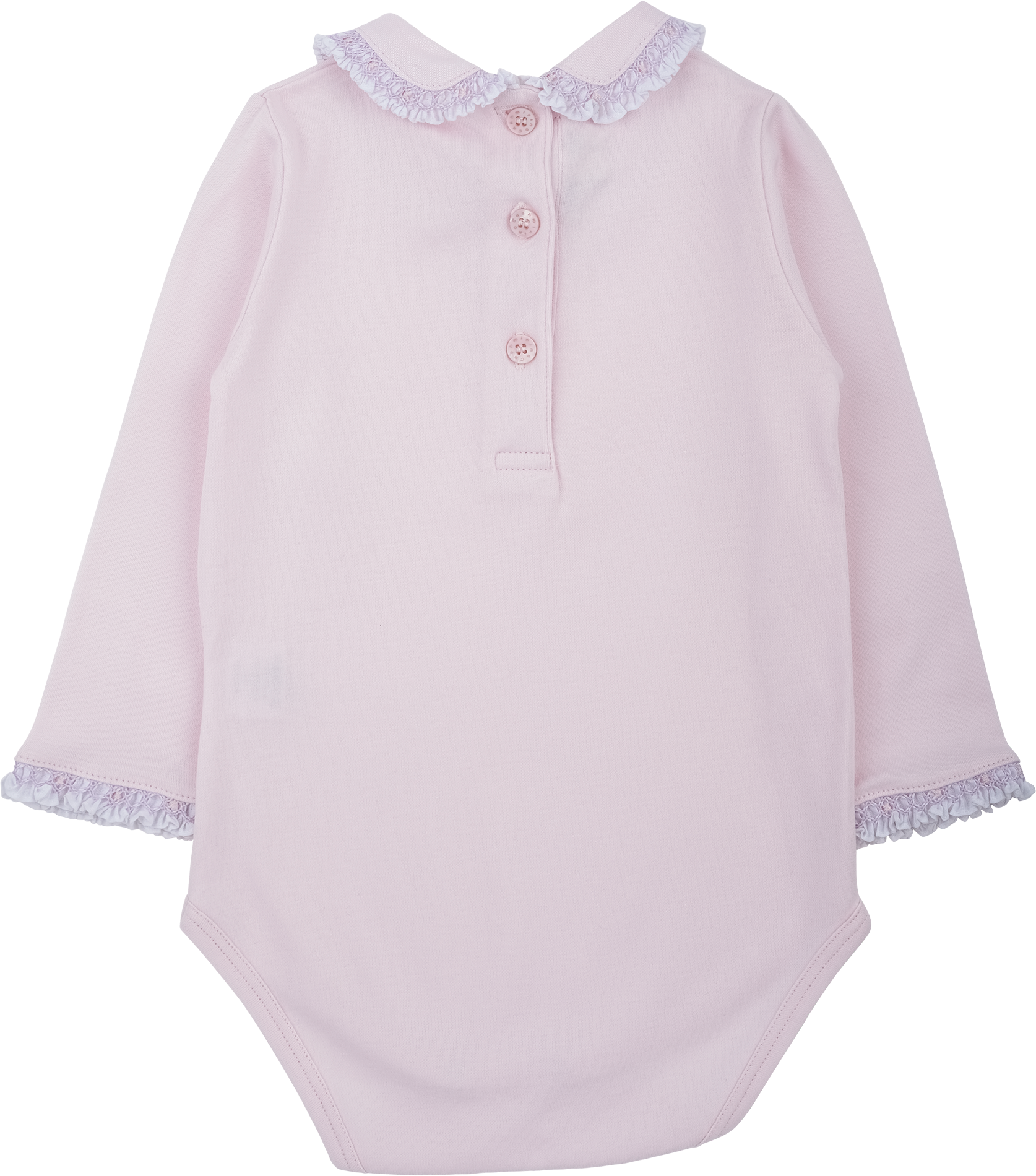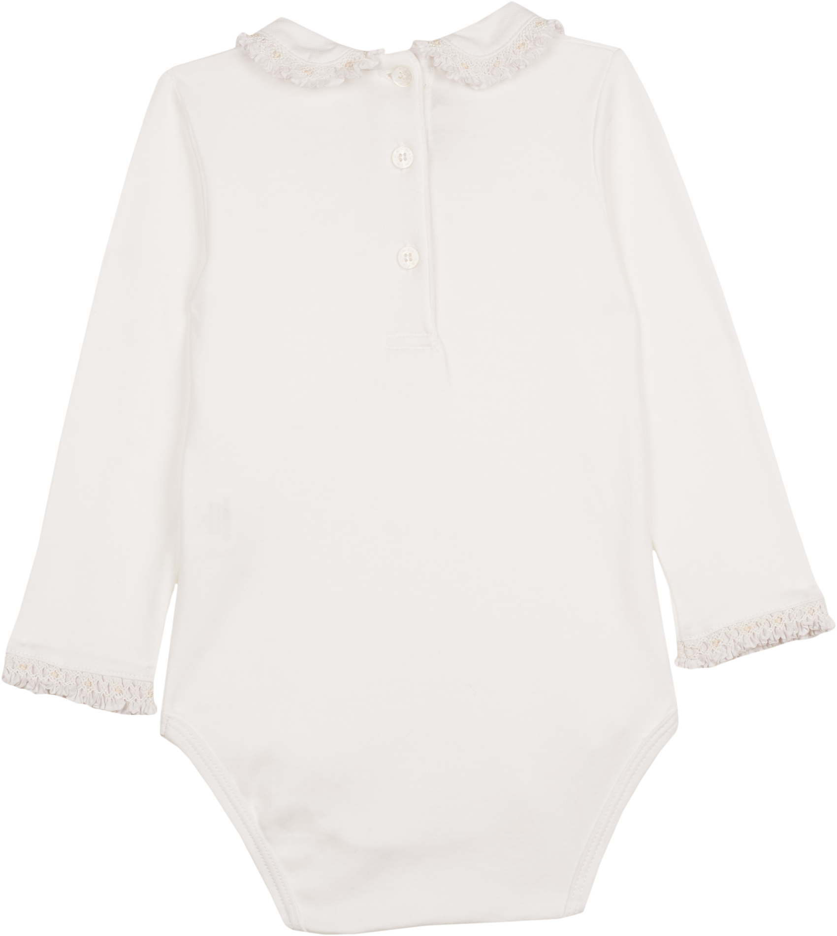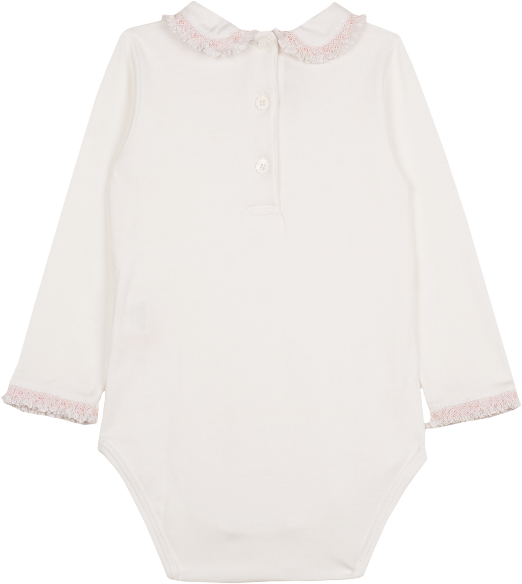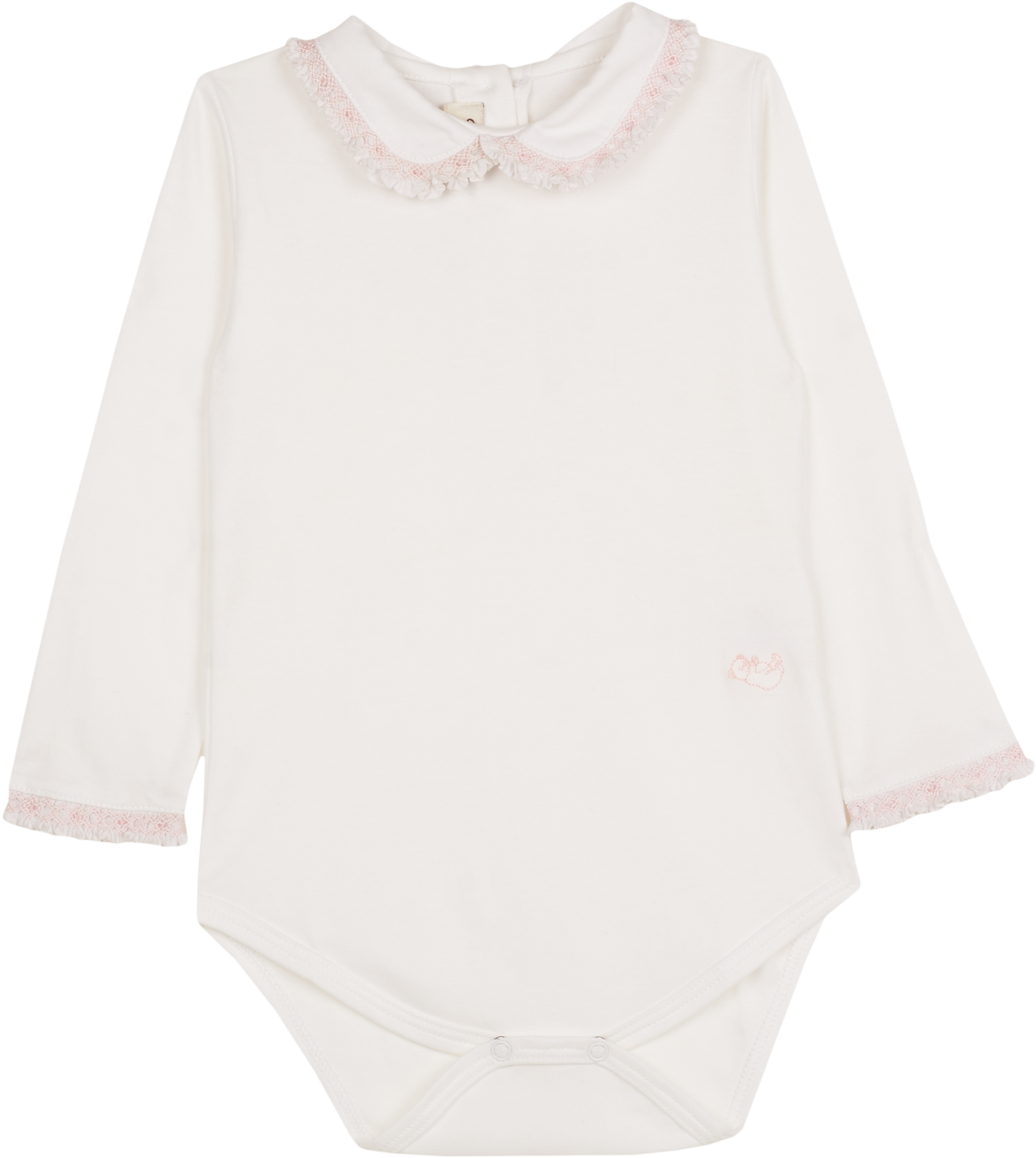 Designed with a classic Peter Pan collar and delicate smocked detailing on the collar and sleeves, it adds a refined, charming touch to everyday wear. The popper fastening ensures easy dressing, making it as practical as it is beautiful. Perfect for layering or wearing alone, this bodysuit is a versatile addition to any baby girl’s wardrobe.