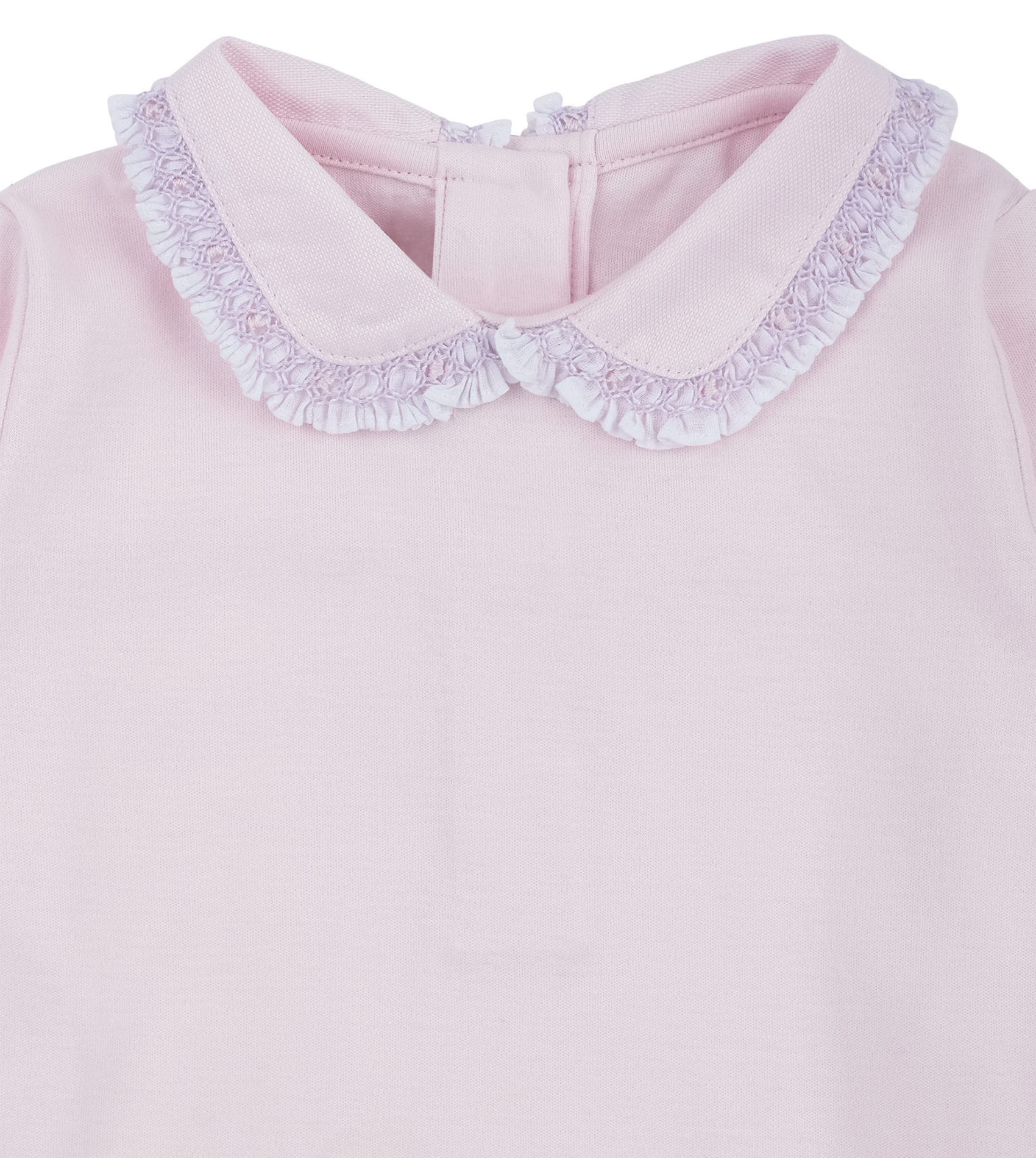 - Peter Pan collar with smocked trim