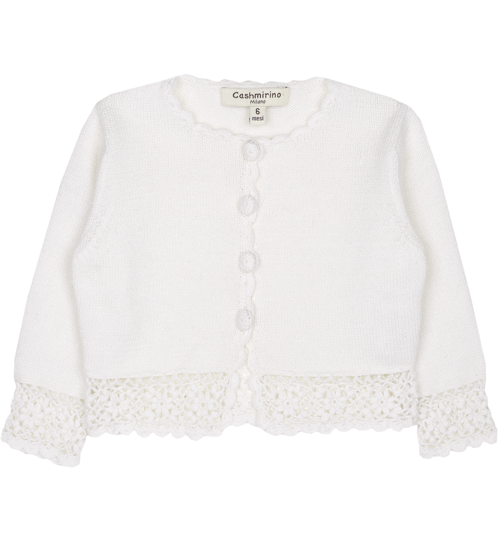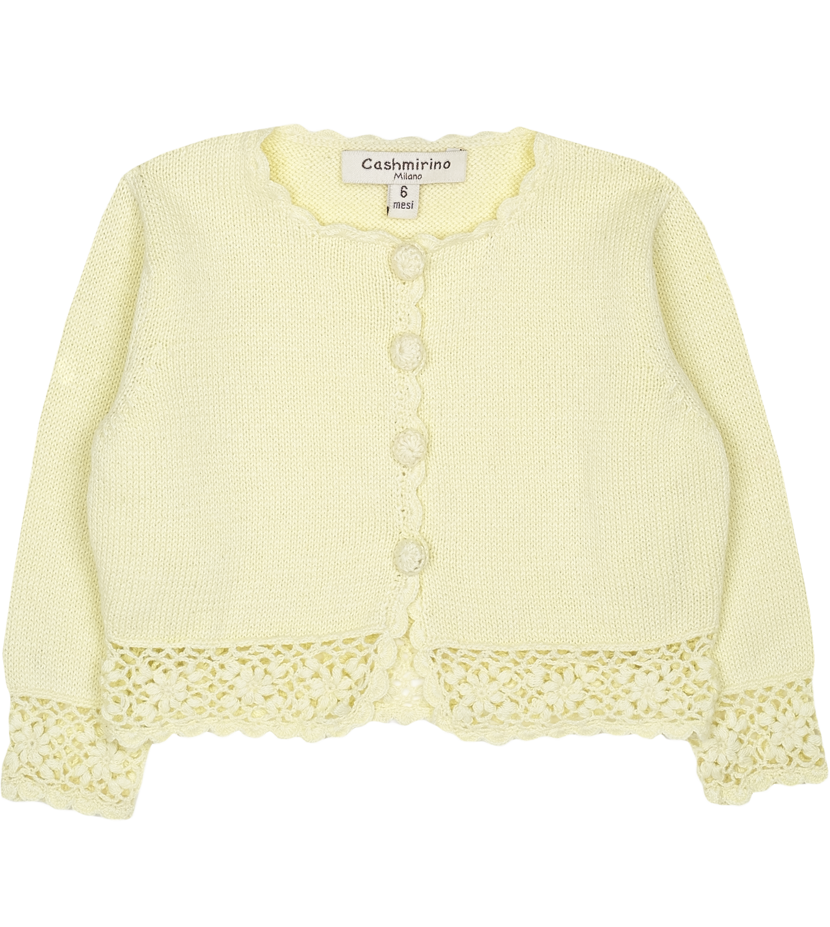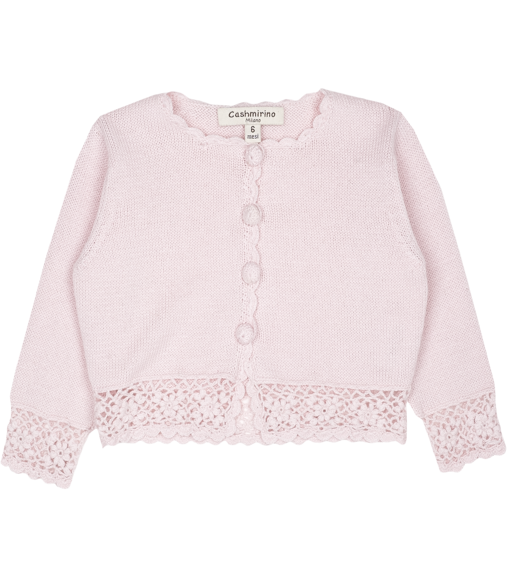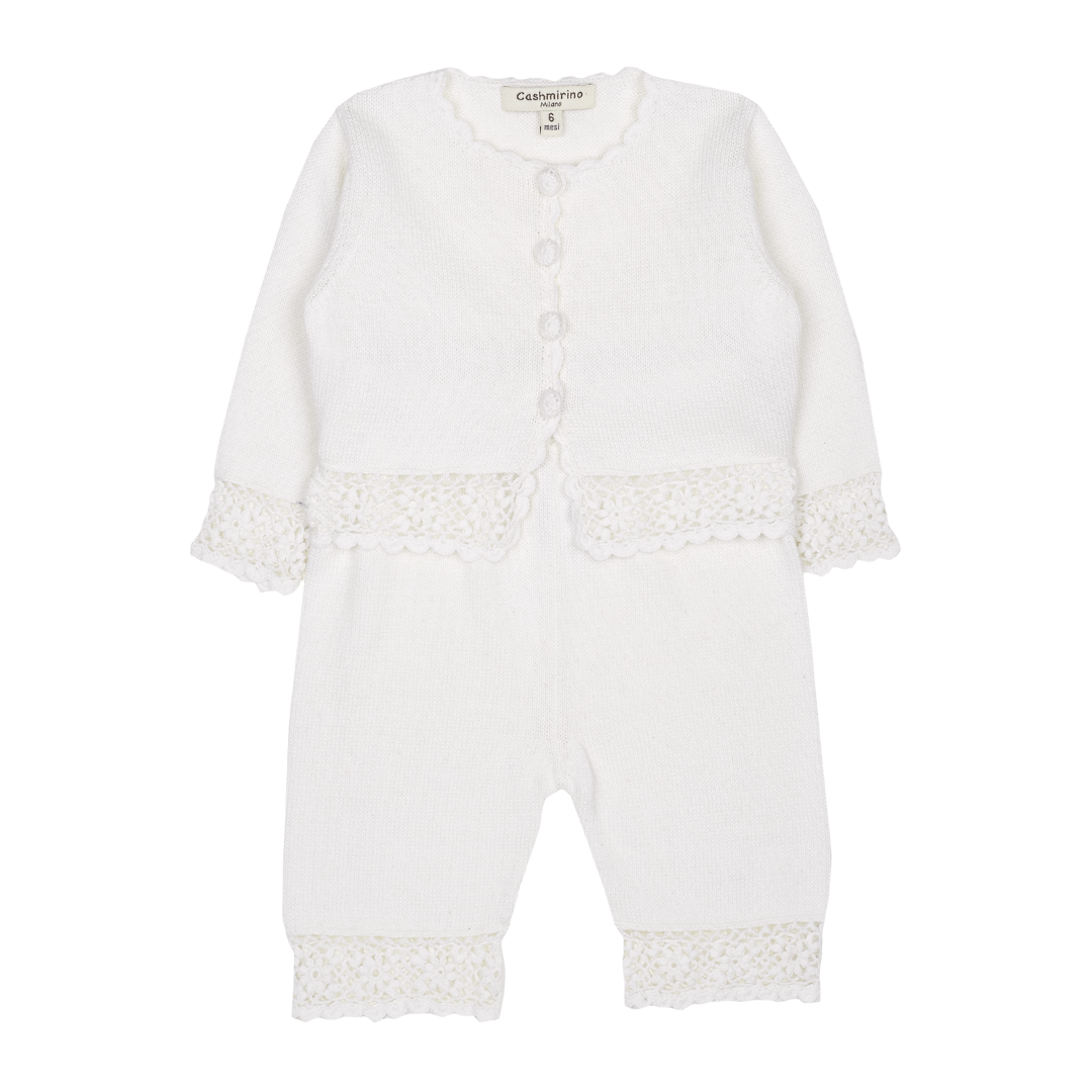 Baby Girl - Sandra 100% Cotton Round Neck Cardigan and Pull On Pants with Crochet Details Set