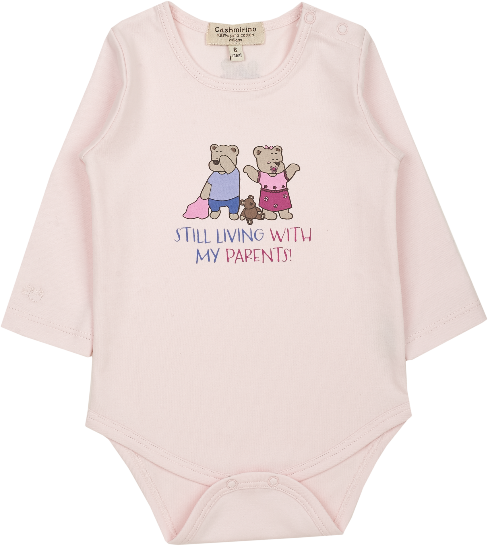 Enjoy quality and comfort with this 100% Pima cotton long-sleeve Baby Girl bodysuit, renowned for its exceptional softness and breathability. Featuring delightful graphic illustrations and our signature embroidered Cashmirino bear, it’s designed to keep your little one cosy and stylish.