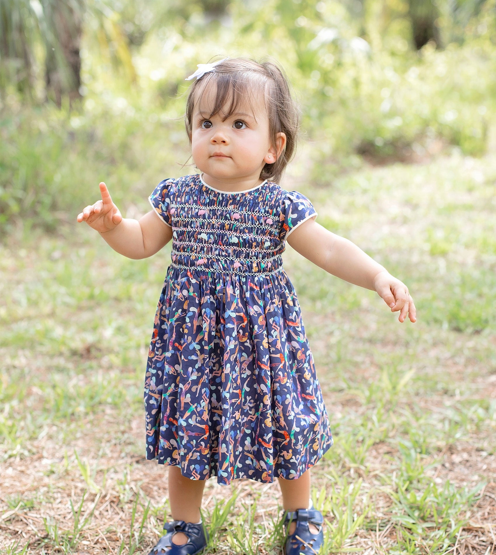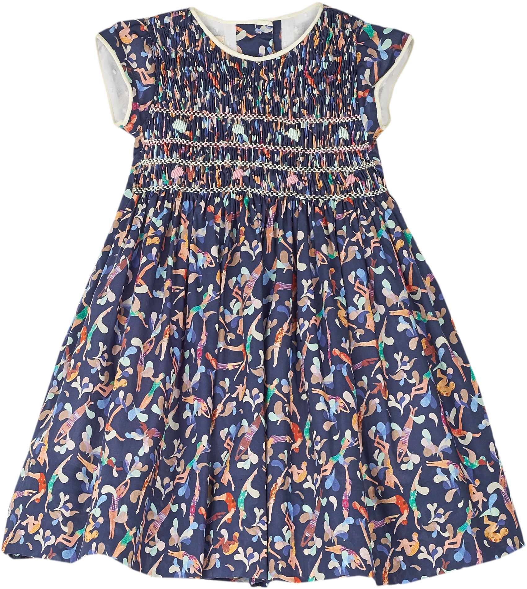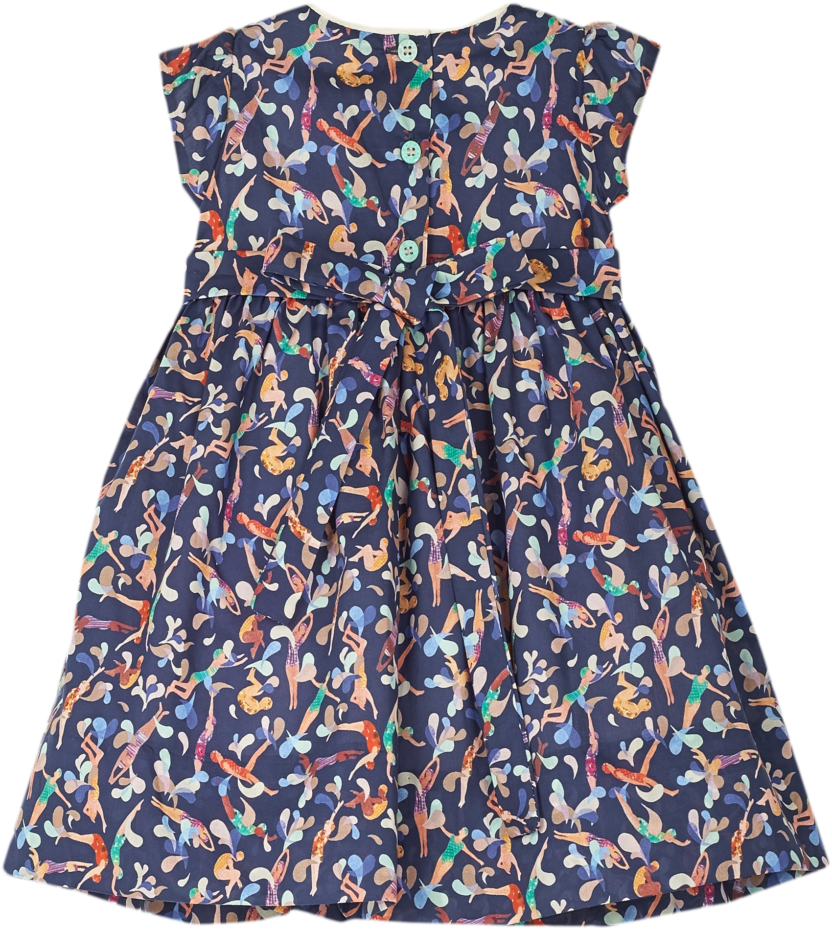 Baby Girl - Rachel Dress – Hand Embroidered Smocked 100% Cotton in Swimmer Print