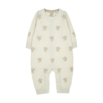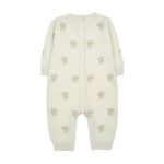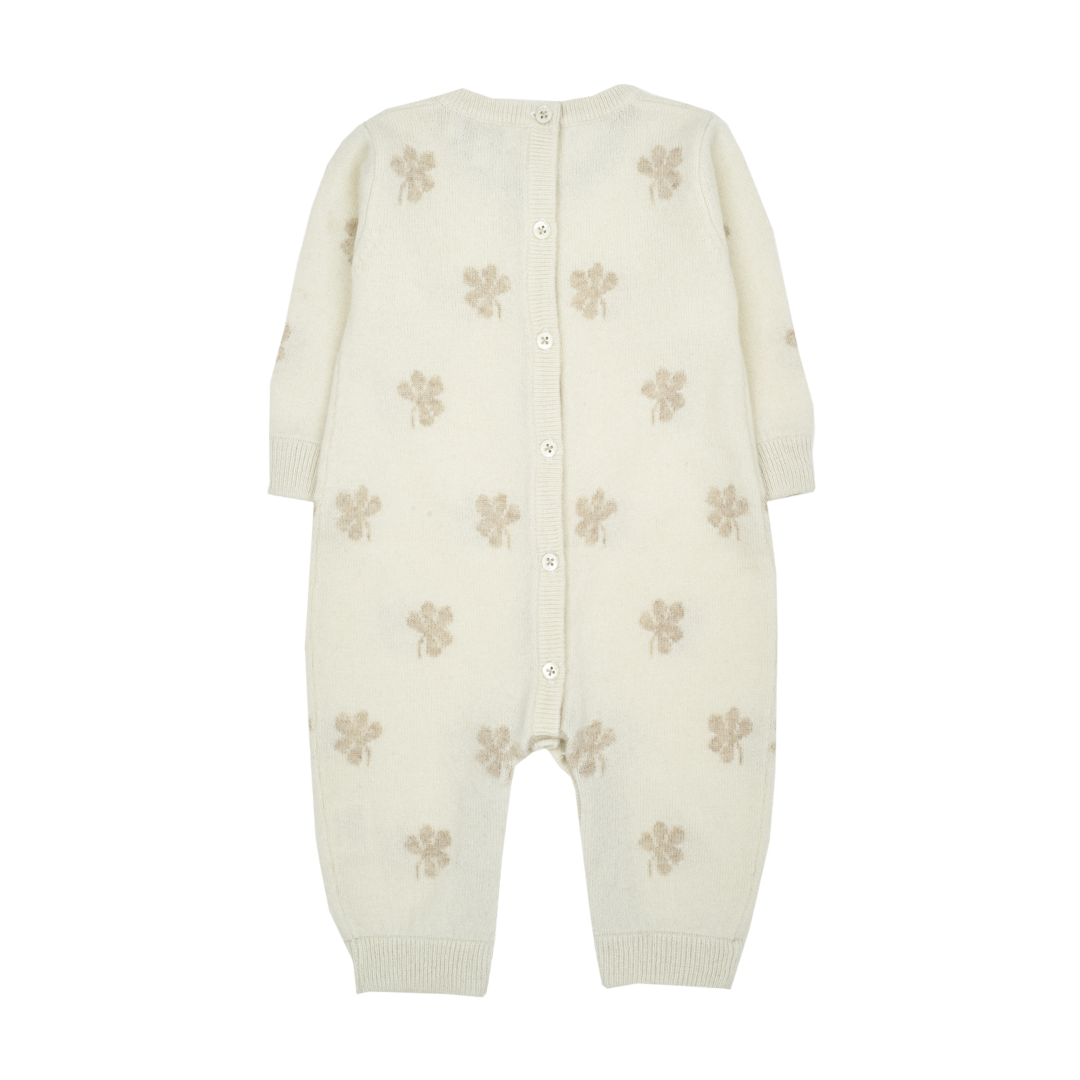 A cashmere romper that is ideal for keeping your newborn warm and comfortable. Featuring long sleeves, a round neck, internal contrasting and Intarsia leaves design. Made from 100% cashmere.