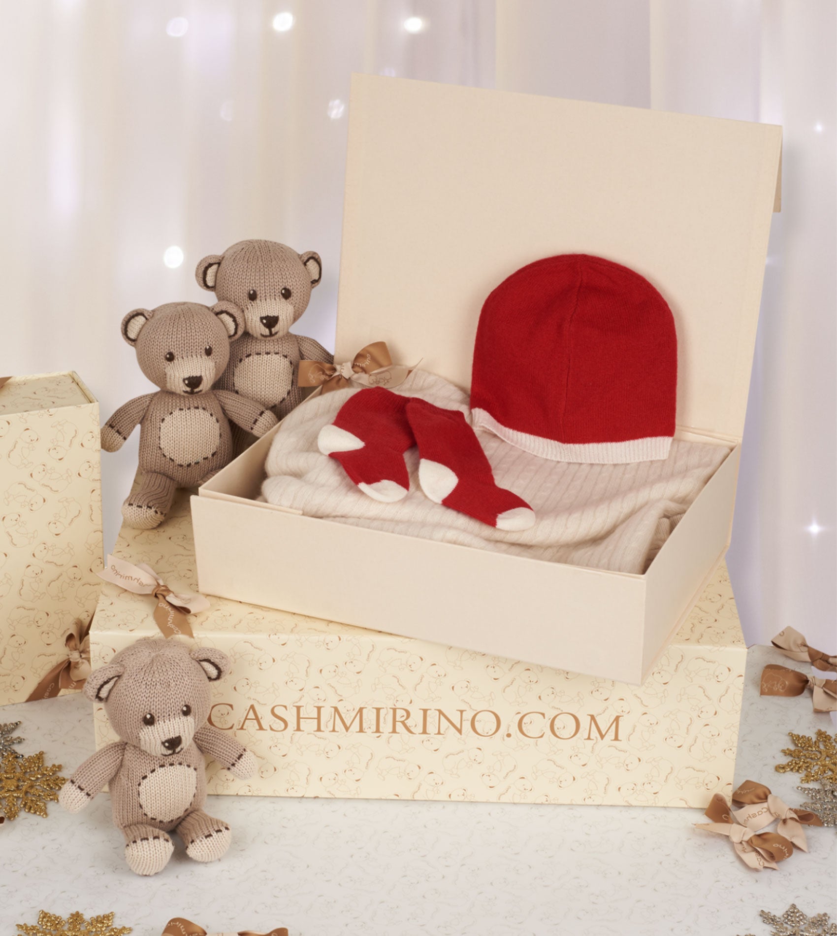 Wrap your little one in pure luxury this festive season. Our Baby Cashmere Gift Set includes a beautifully soft hat and socks—expertly knitted from the finest pure cashmere to keep newborns and babies warm from head to tiny toes.